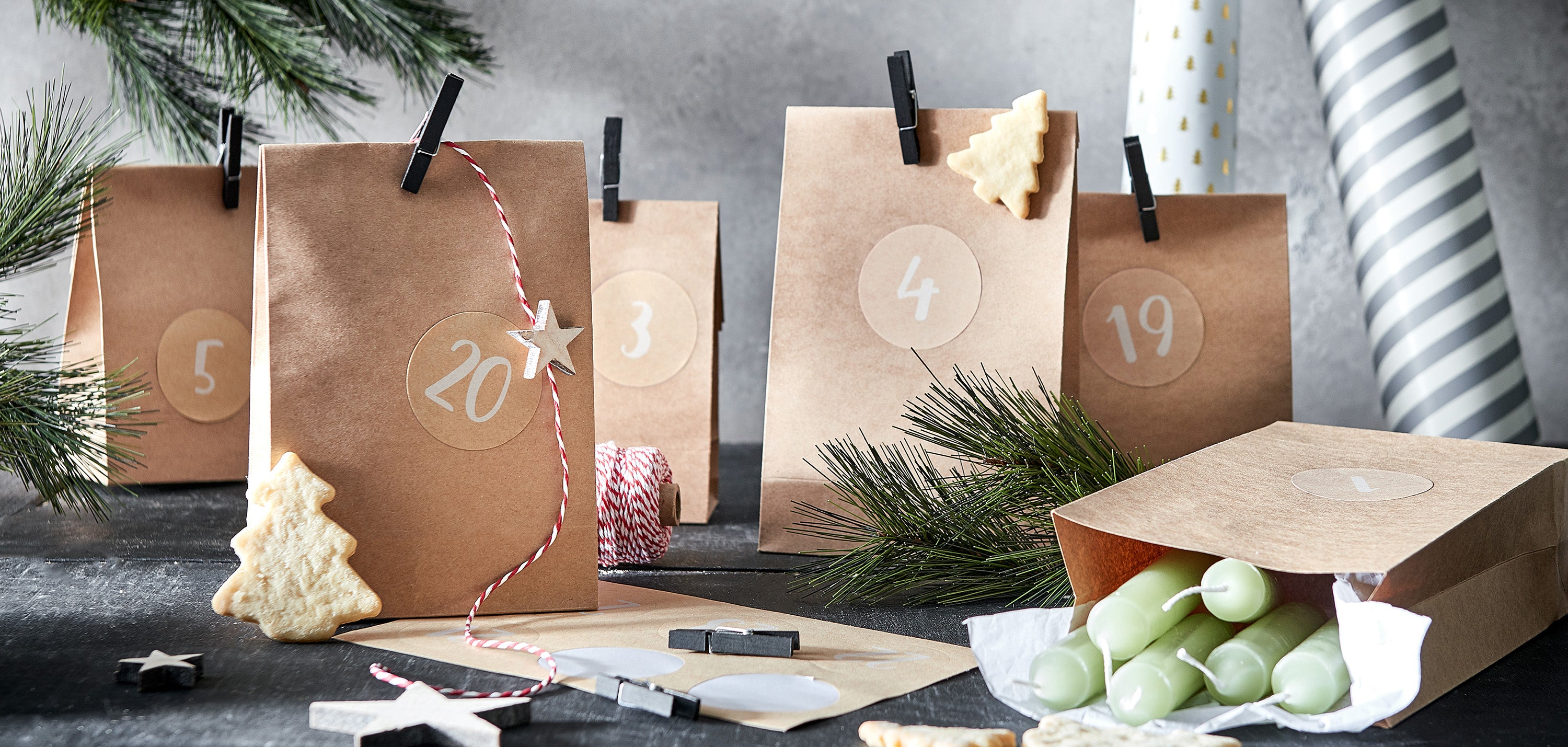 Unsere Auswahl reicht von Adventskalender-Beuteln, Zahlen-Aufklebern und Schachteln bis hin zu Bändern, Clips und kleinen Deko-Elementen, mit denen du deinen Kalender ganz einfach selbst basteln kannst. Viele Produkte bestehen aus nachhaltigen Materialien wie Baumwolle oder Papier und lassen sich jedes Jahr wiederverwenden – für einen Advent voller Achtsamkeit.