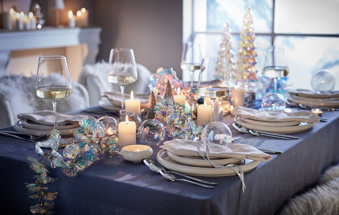 Der Winter wird glänzend. Mit GLACIER GLOW verwandelt sich die Tafel in ein wahres Frostmärchen. Funkelndes Silber trifft auf Nuancen von Weiss und Eisblau.
