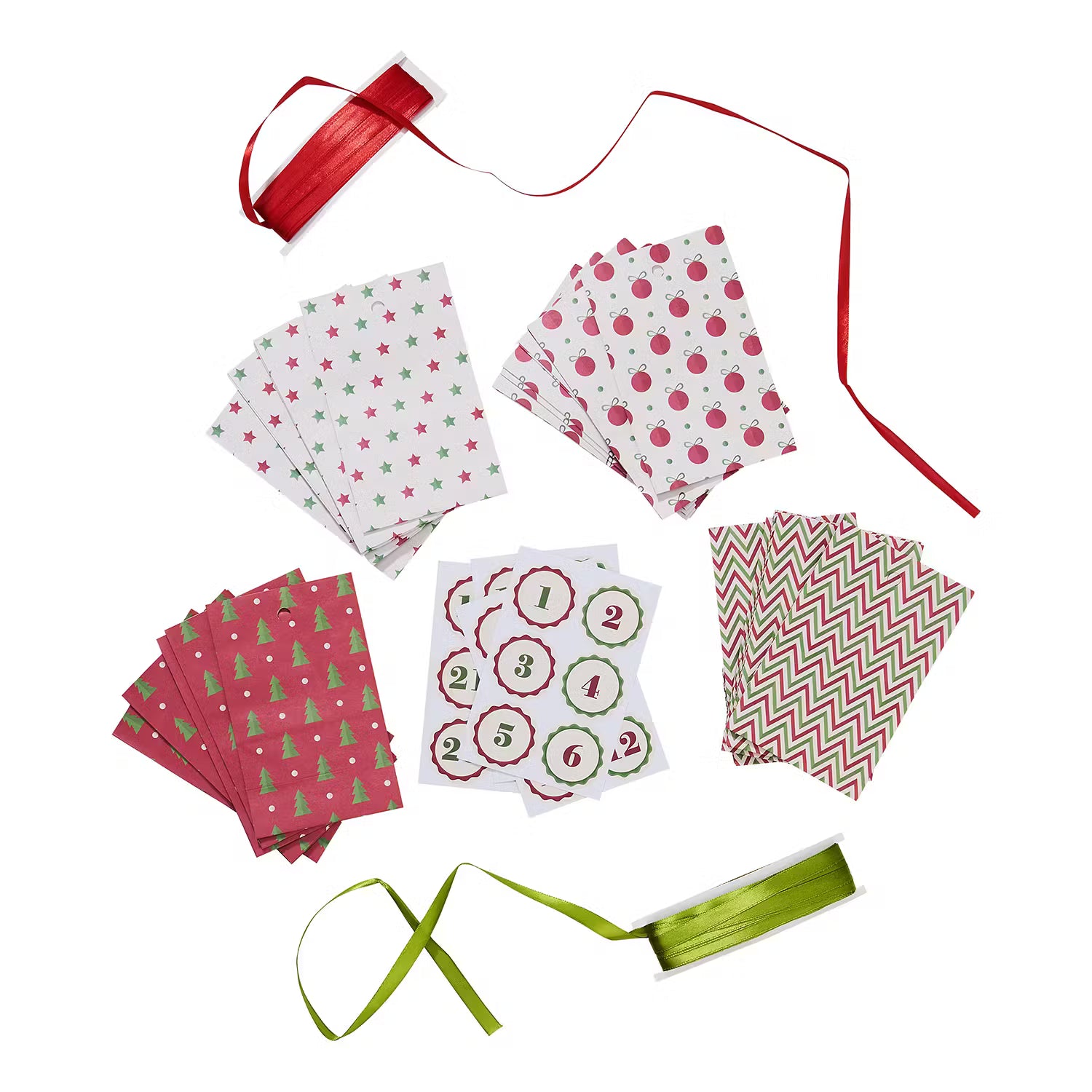24 Mal verstecken Sie bei diesem Surprise Adventskalender Set DIY in Rot-Grün eine kleine Überraschung in der Papiertüte und kleben einen Sticker drauf. Und weil sich das Ergebnis nicht verstecken muss, hängen Sie Ihren selbstgemachten Adventskalender auch noch als Deko auf. Weitere Varianten erhältlich.