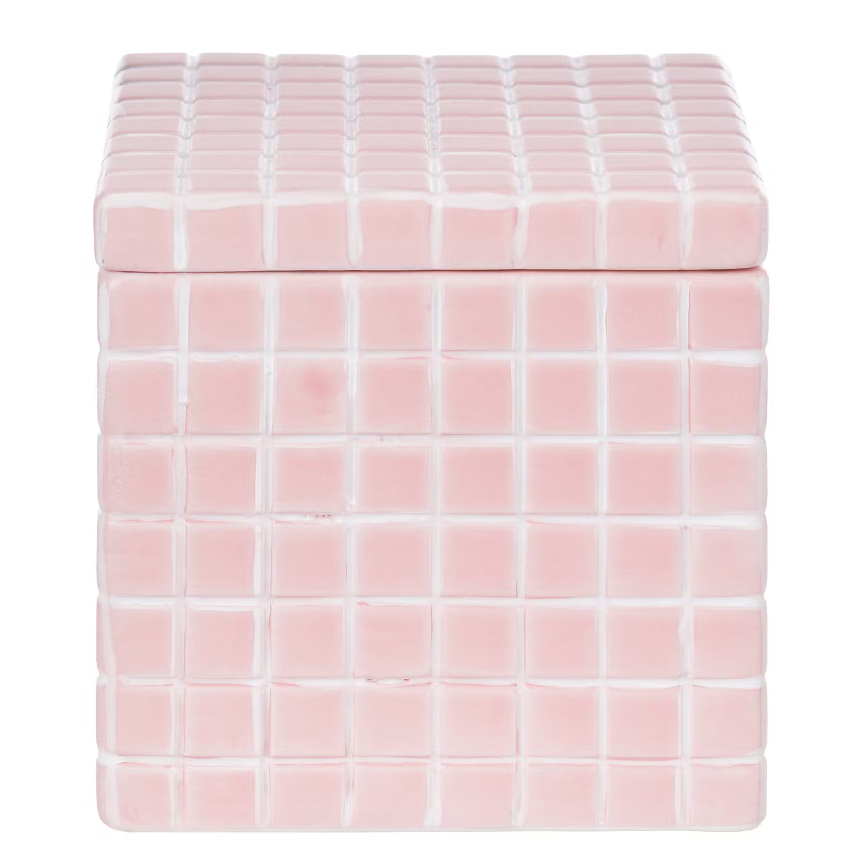Ein kleines Schmuckstück, z.B. für Schmuckstücke, Haarbänder, USB-Sticks oder andere Kleinigkeiten, ist die Tiles Aufbewahrungsdose in zartem Rosa. Die dekorative Keramik-Dose scheint mit kleinen Mosaik-Steinchen bedeckt zu sein, was die Optik einfach besonders macht.