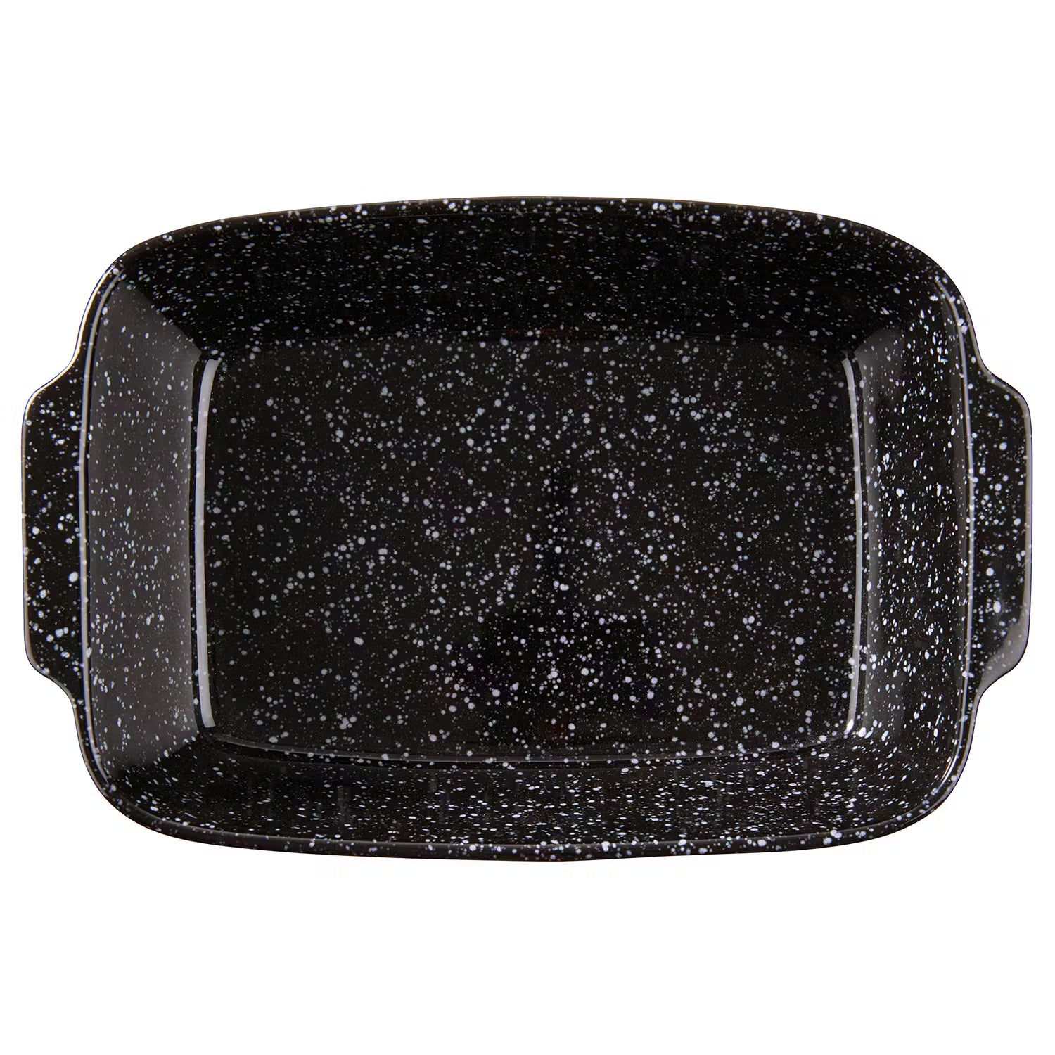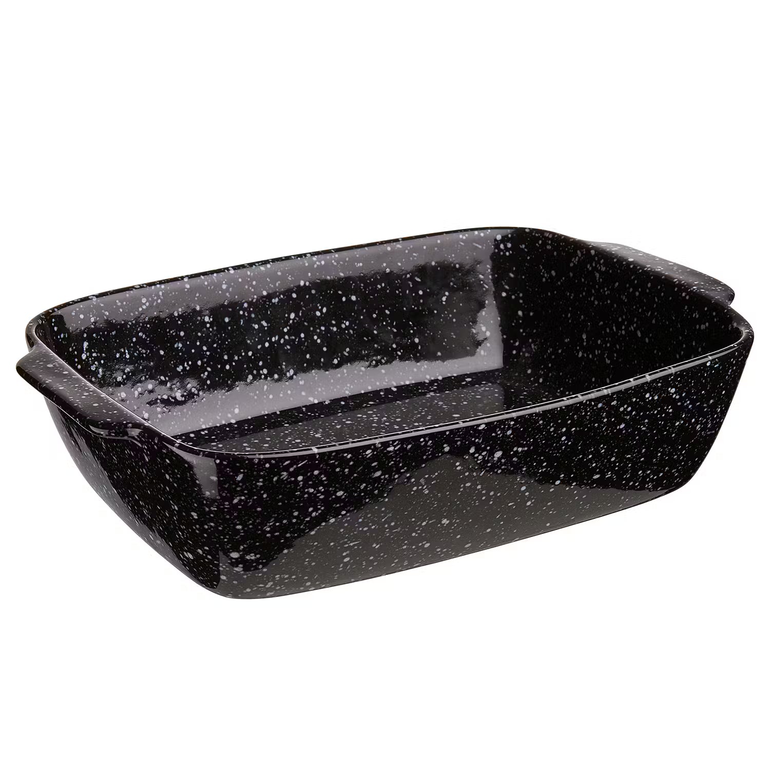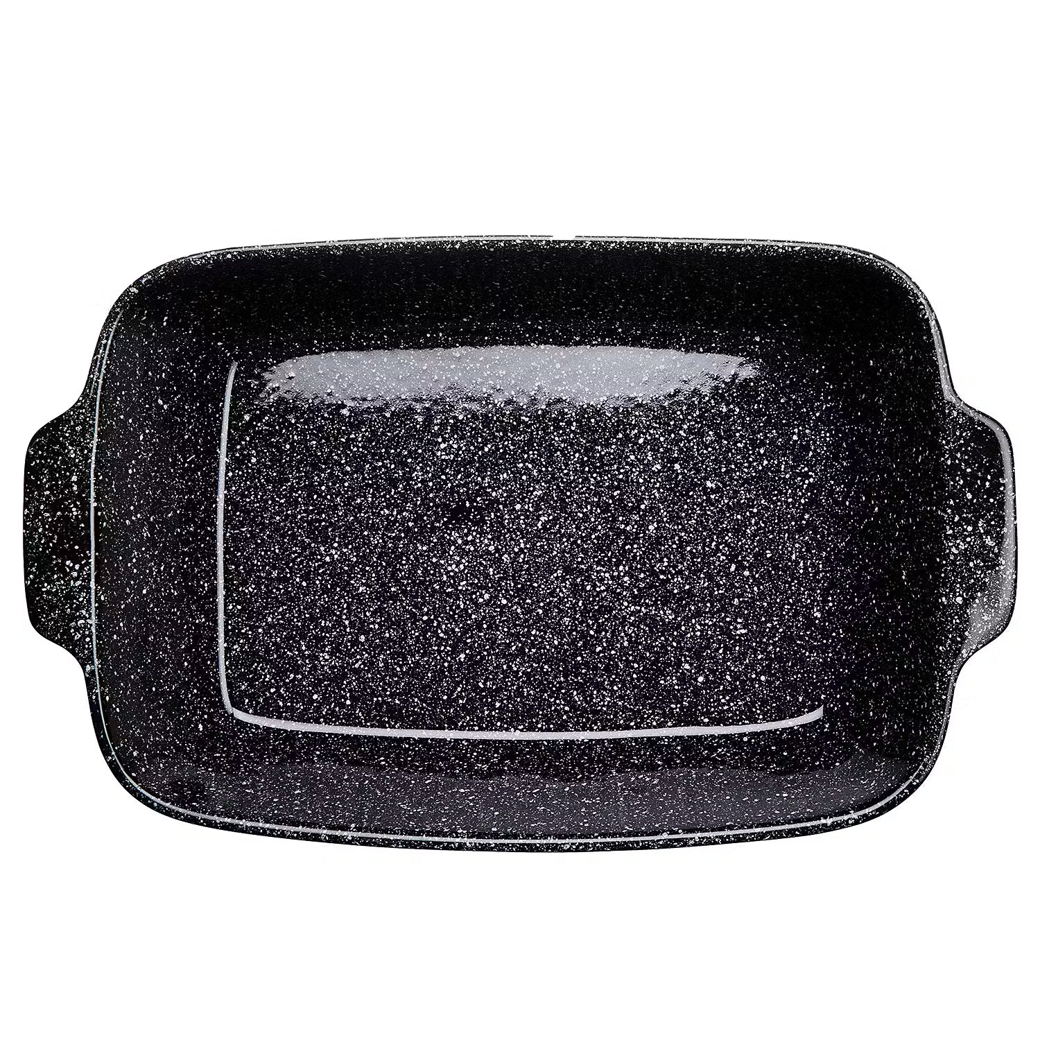 Ob Kartoffelgratin, überbackene Pasta oder Applecrumble - mit der Au Gratin Auflaufform aus schwarzem Steinzeug bringen Sie immer wieder leckere Gerichte auf den Tisch. Das mikrowellengeeignete Kochgeschirr können Sie zudem zum Auftauen oder Aufwärmen von Speisen verwenden. Ob so oder so - dank trendig gesprenkeltem Look genießt das Auge in jedem Fall mit. Einfach zu reinigen, da geschirrspülgeeignet.
