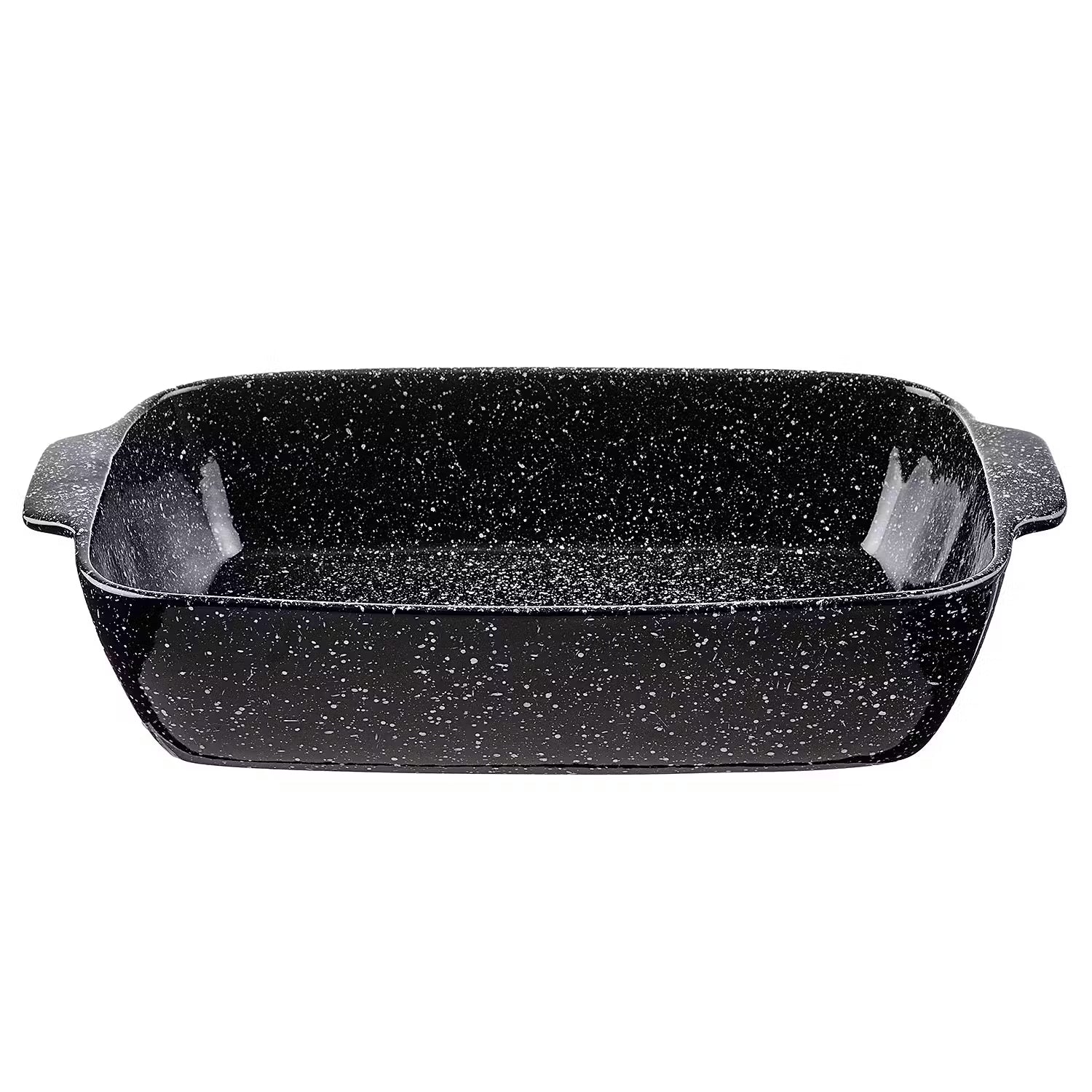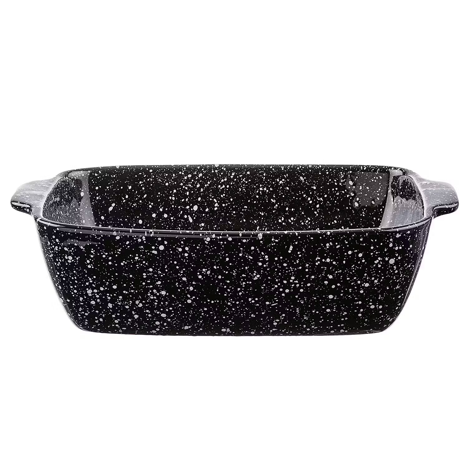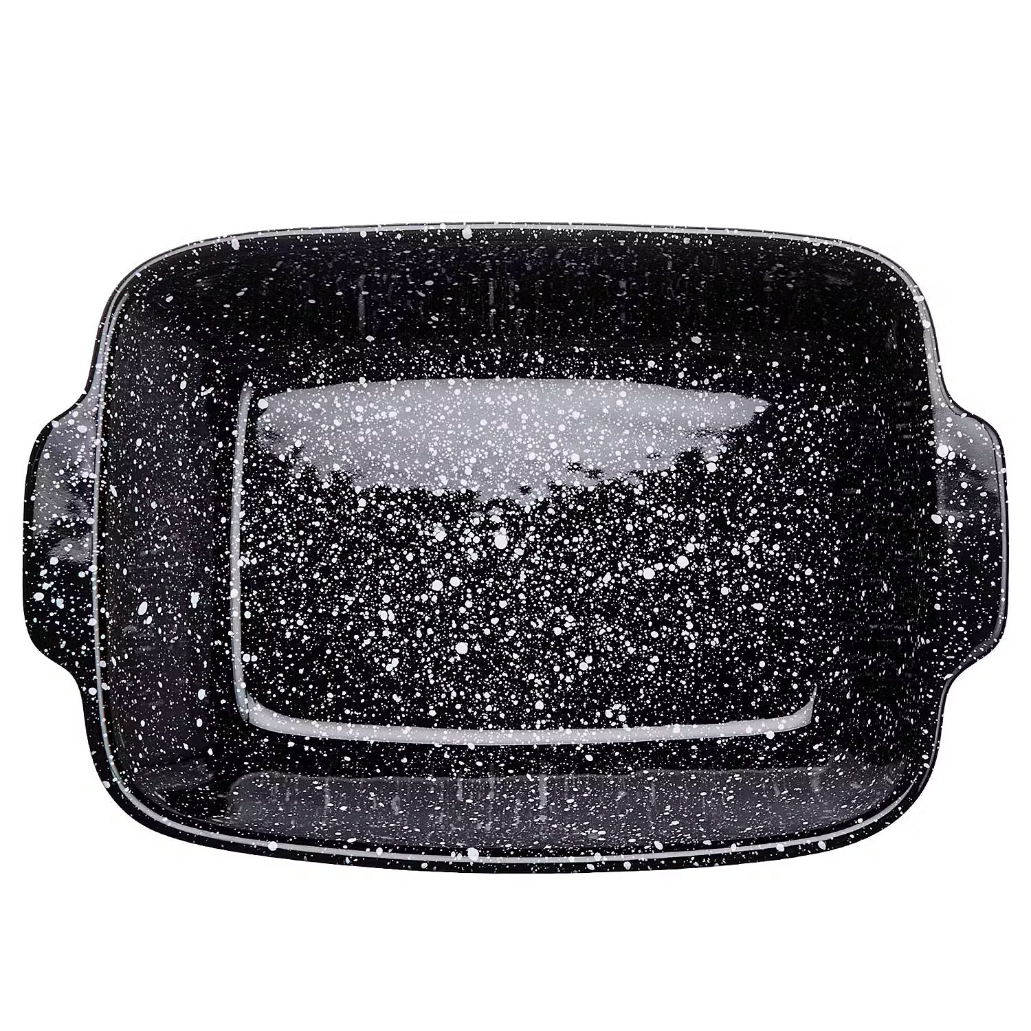 Ob Kartoffelgratin, überbackene Pasta oder Applecrumble - mit der Au Gratin Auflaufform aus schwarzem Steinzeug bringen Sie immer wieder leckere Gerichte auf den Tisch. Das mikrowellengeeignete Kochgeschirr können Sie zudem zum Auftauen oder Aufwärmen von Speisen verwenden. Ob so oder so - dank trendig gesprenkeltem Look genießt das Auge in jedem Fall mit. Einfach zu reinigen, da geschirrspülgeeignet.