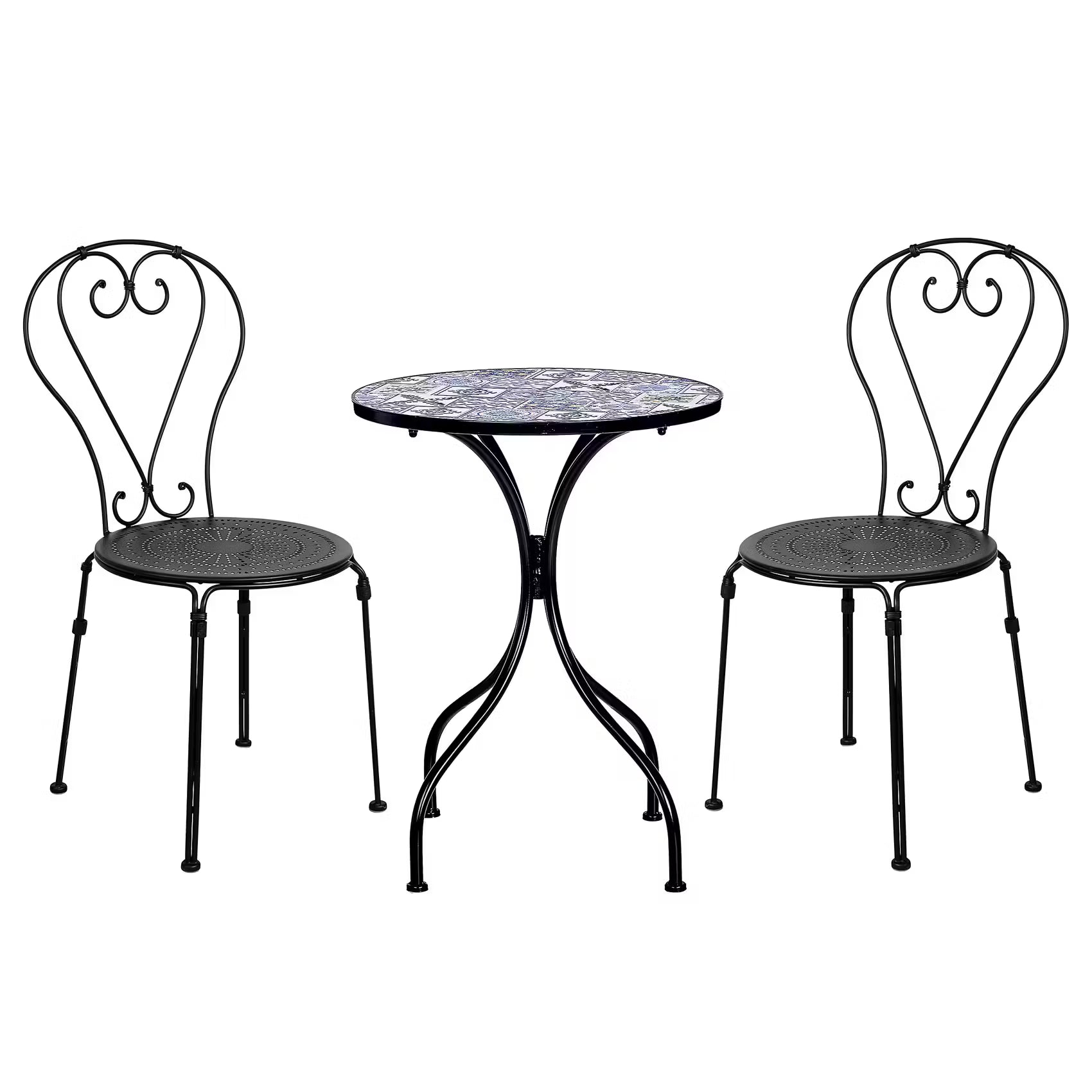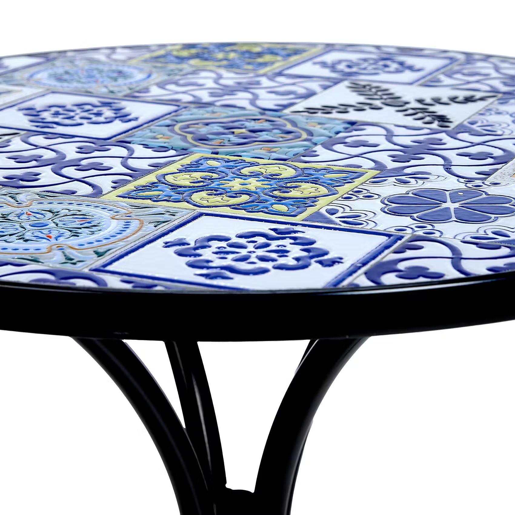 Das Palazzo 3-teilige Balkon-Set bringt mediterranen Flair auf deinen Balkon oder in den Garten. Das Set besteht aus 1 Palazzo Bistrotisch und 2 Palazzo Gartenstühlen. Der Palazzo Bistrotisch ist im kunstvollen Azulejos-Stil gehalten, der mit bunten Keramik-Kacheln und maurischen Mustern begeistert. Das stabile Eisen-Gestell sorgt für eine gute Standfestigkeit, und der Tisch lässt sich perfekt mit Holzstühlen, Flechtsesseln oder anderen modernen Möbeln kombinieren, um einen individuellen Wohlfühlort zu schaffen. Die Palazzo Gartenstühle aus Eisen bieten dir gemütlichen Sitzkomfort für entspannte Stunden. Sie laden ein, den Tag zu genießen – so ruhig und entspannt wie in vergangenen Zeiten, fernab von Handystress und Alltagshektik. Die Stühle sind auch in verschiedenen modernen Farben erhältlich, um deinem Stil gerecht zu werden.