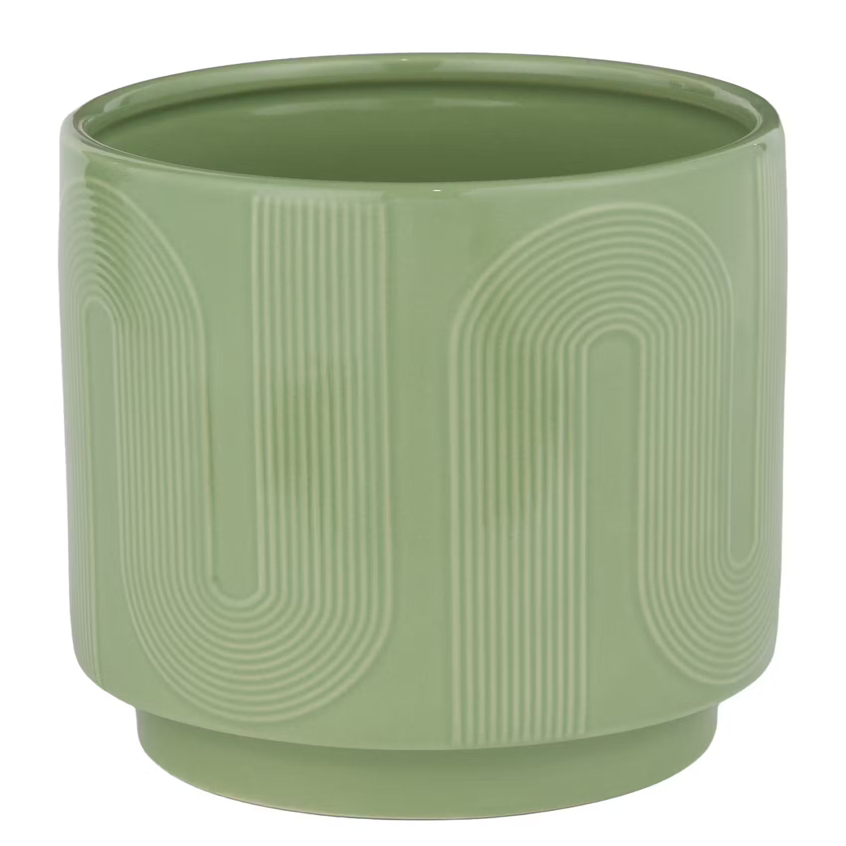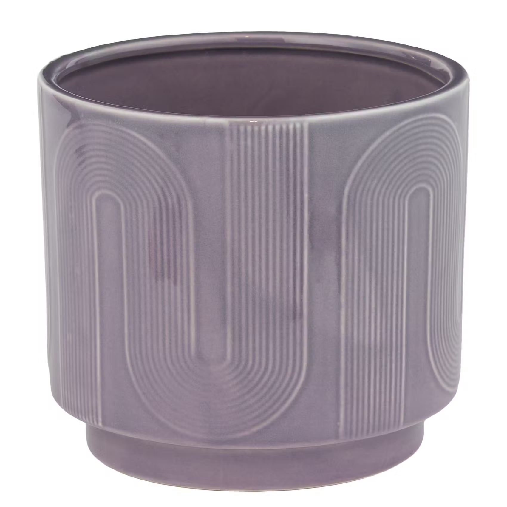 Grafische Wellen schmücken den Curves Blumentopf aus Steinzeug. Dieser moderne Blumentopf in dezentem Lila oder Salbei lässt sich für die verschiedensten Topfpflanzen verwenden und in deinem Zuhause vielseitig kombinieren.
