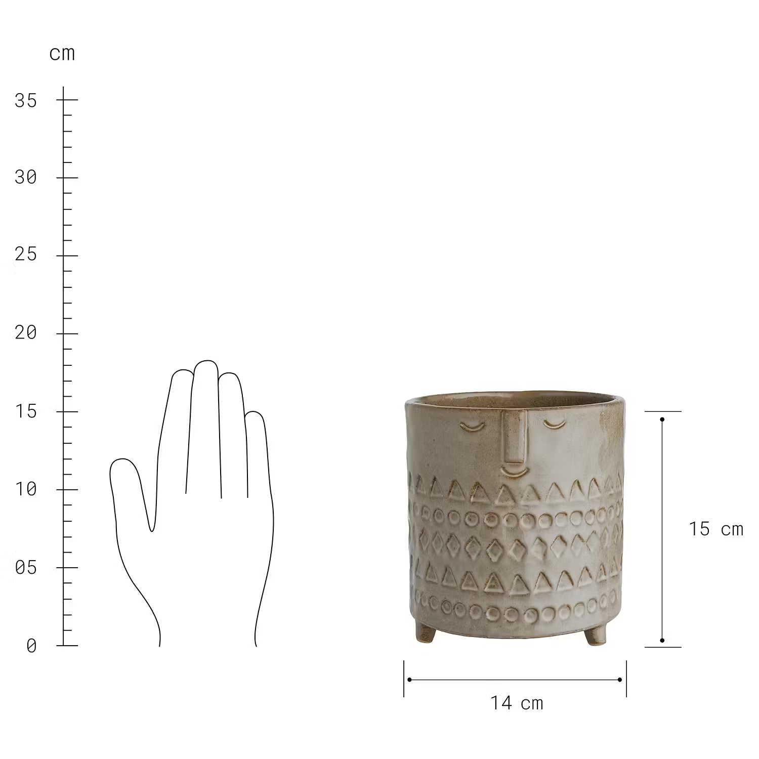 Ihr Fernweh leben Sie in trendigen Ethno-Accessoires für Ihr Zuhause aus - mit dem Ethno Blumentopf mit Gesicht aus hellbraunem Porzellan. Der Blumentopf lässt sich mit frischen Kräutern oder Sukkulenten beispielsweise auf Fensterbänken platzieren oder auf dem gedeckten Tisch gruppieren. Oder Sie lassen die Pflanze weg, und dekorieren den Blumentopf als Blickfang im Regal.