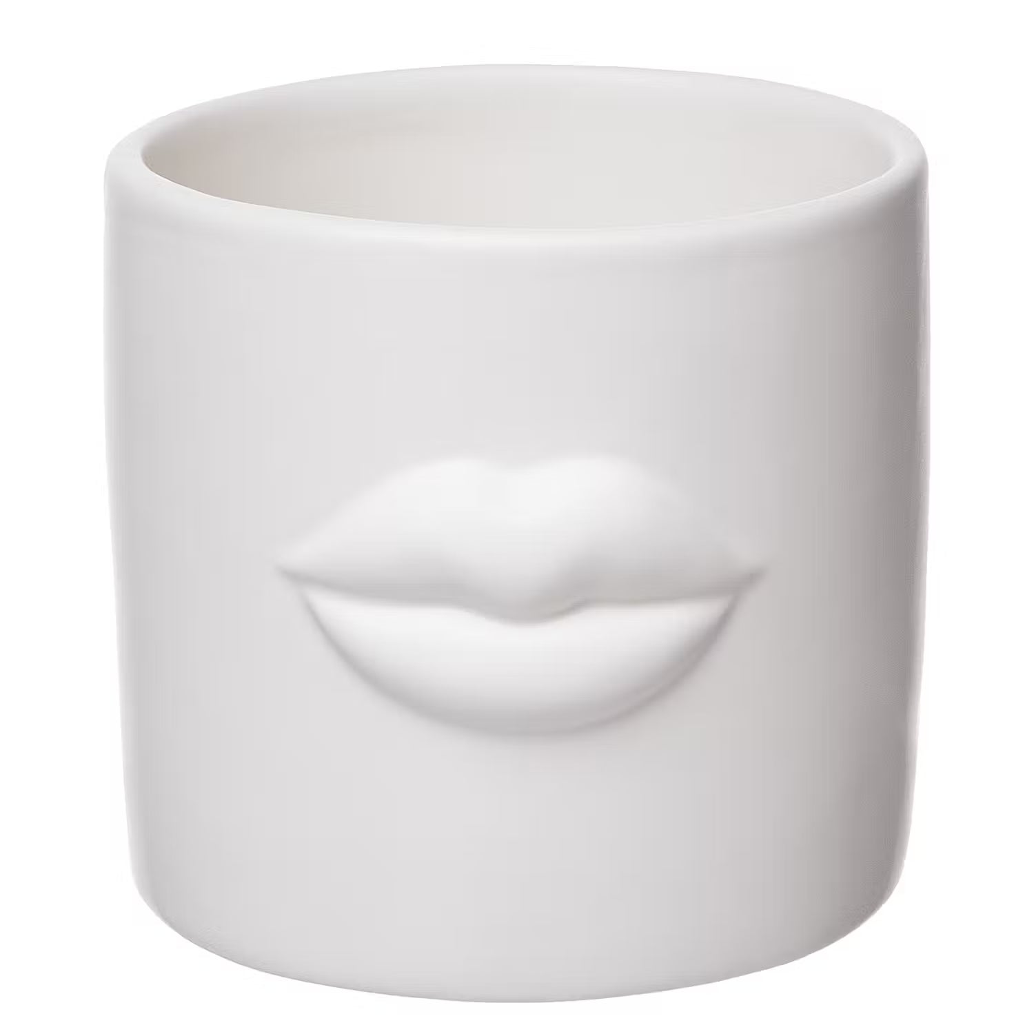 Ein schönes Lippenbekenntnis gibt der Kiss Blumenübertopf aus weißem Dolomit ab. Der Kussmund schmückt als 3-D-Motiv den kleinen Blumenübertopf und überbringt somit beim Verschenken ein Küsschen. Oder er verteilt mit seinen Bussis jede Menge Liebe in deinem Zuhause.