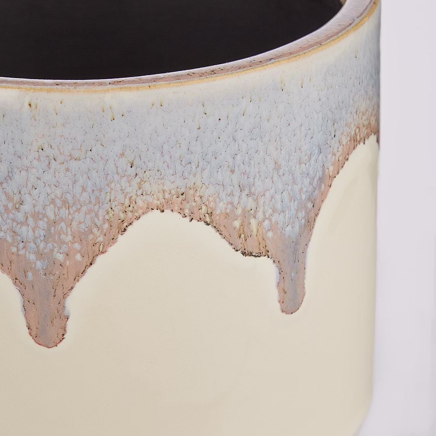 Wunderschön glasiert mit schimmernden Farbverläufen und organischer Optik ist der Painted Blumenübertopf aus Steinzeug. Und weil dieser Look gerade so angesagt ist, gibt es den Painted Blumentopf auch gleich in zwei Varianten mit unterschiedlicher Größe und Farbgebung, ideal zum Kombinieren. So entsteht ein schönes Doppel in deinem Zuhause, etwa auf der Fensterbank oder einer Kommode.
