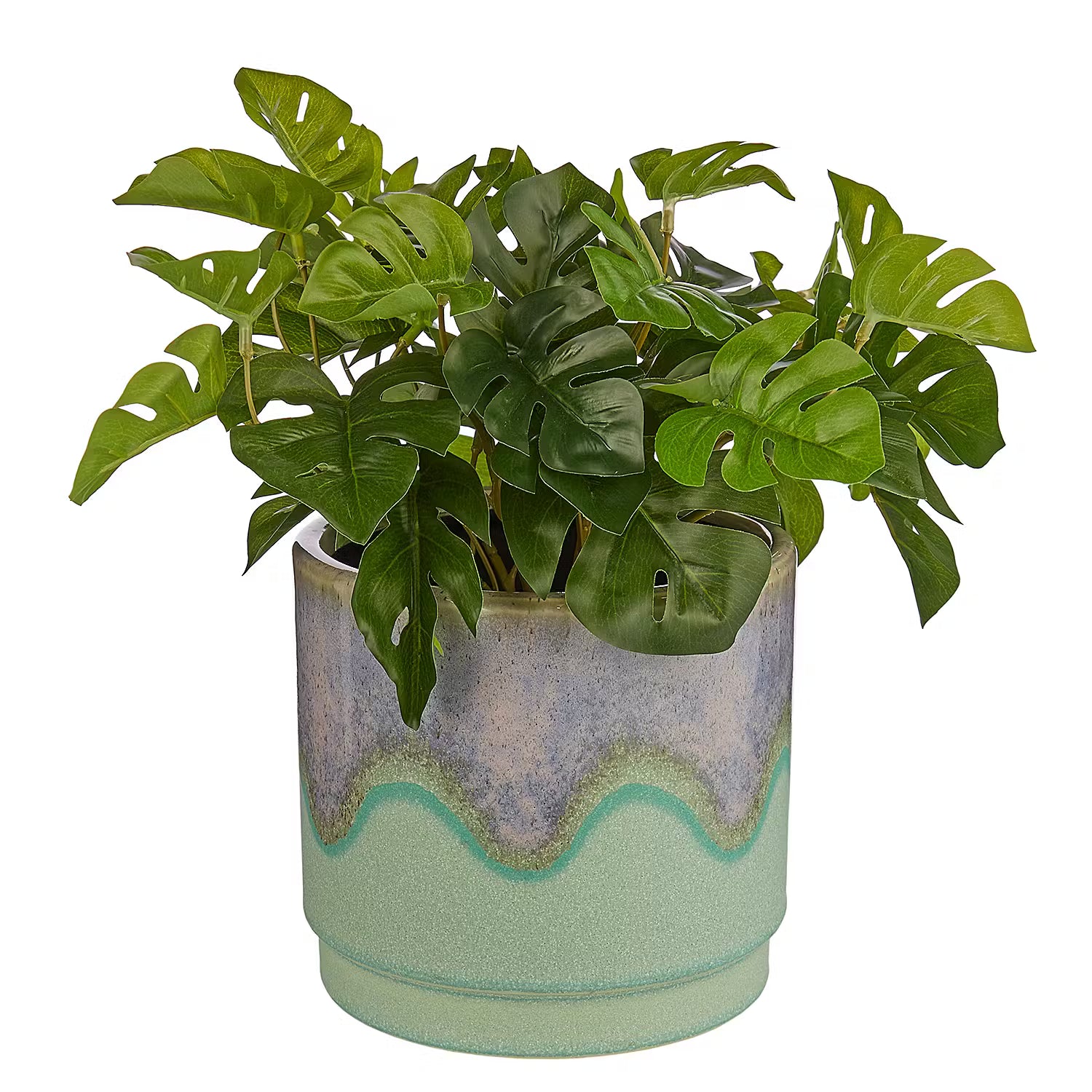 Wunderschön glasiert mit schimmernden Farbverläufen und organischer Optik ist der Painted Blumenübertopf aus Steinzeug. Und weil dieser Look gerade so angesagt ist, gibt es den Painted Blumentopf auch gleich in zwei Varianten mit unterschiedlicher Größe und Farbgebung, ideal zum Kombinieren. So entsteht ein schönes Doppel in deinem Zuhause, etwa auf der Fensterbank oder einer Kommode.