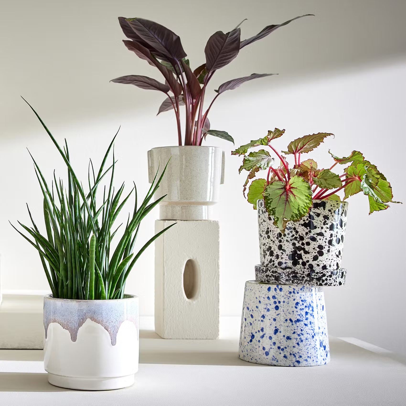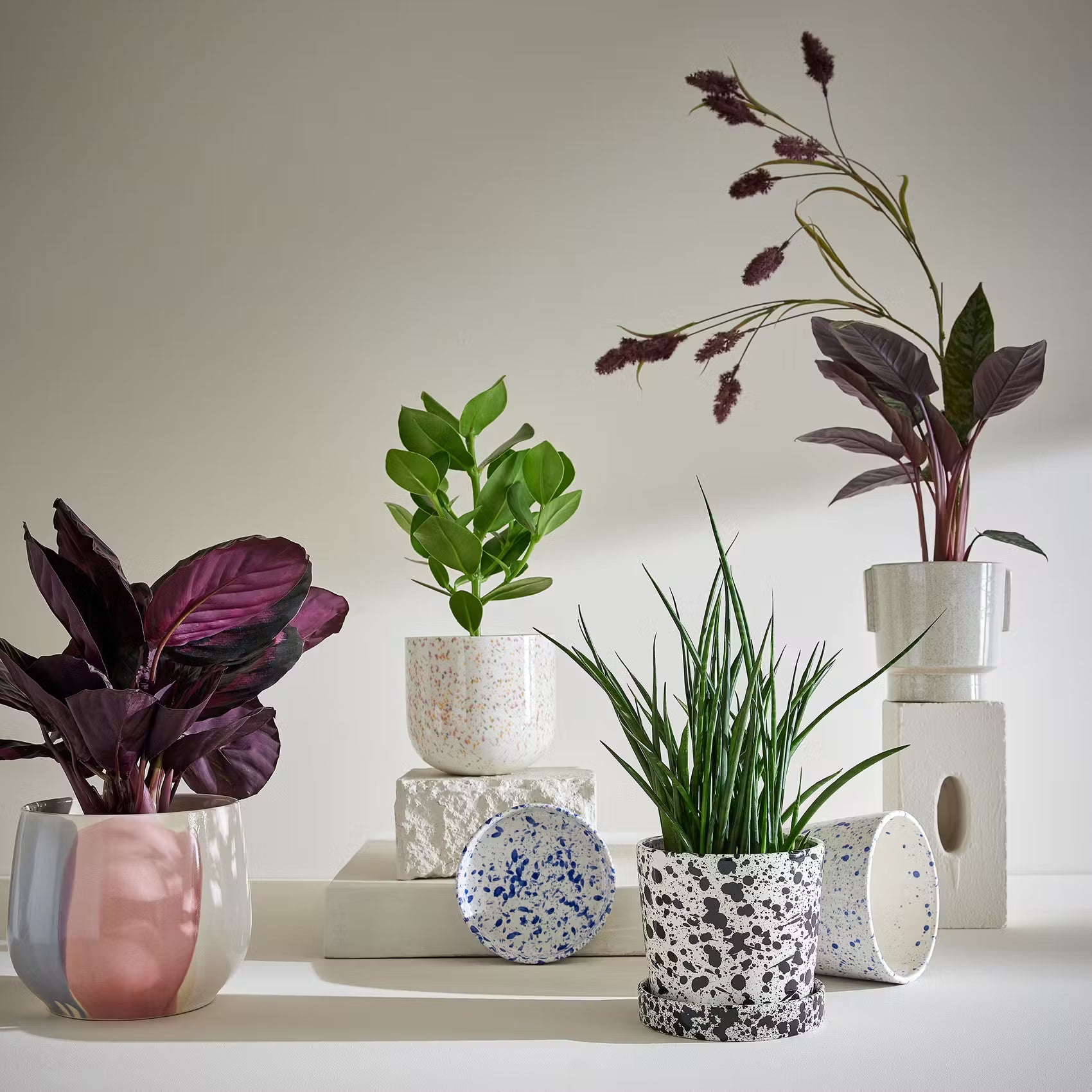 Action Painting oder wild-verspieltes Dekor? Ganz egal, denn der Splash Blumenübertopf mit Teller aus Dolomit strotzt nur so vor Kreativität und Energie. Sein Gute-Laune-Look bringt frischen Wind in dein Zuhause und mischt Dekorationen auf, die sonst eher ruhig und dezent gehalten sind. Der Blumenübertopf mit Teller ist erhältlich in den Farbvarianten Blau und Schwarz.