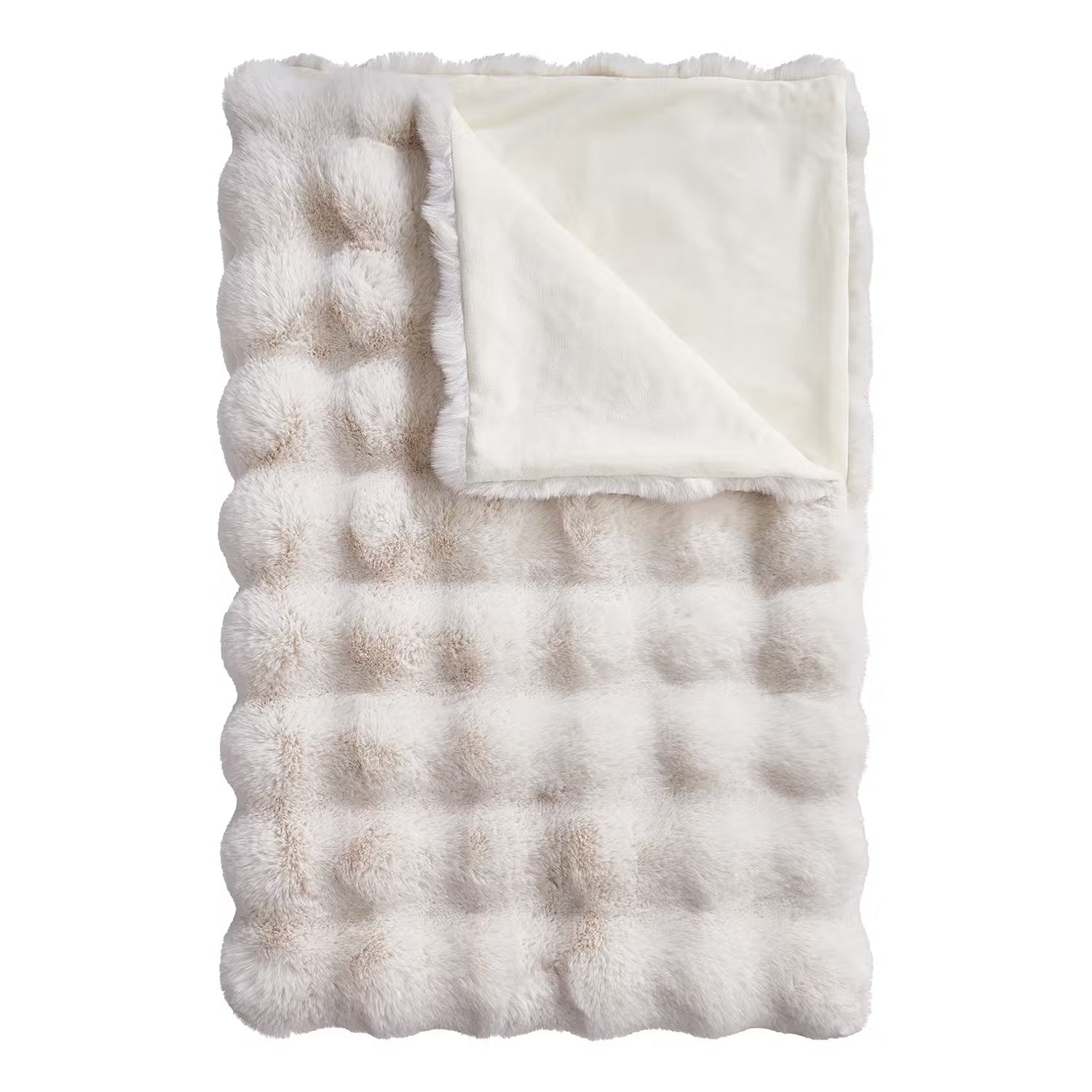 Sinnlich opulent und dabei edel: Bei der Belle Époque Decke magst du gar nicht aufhören, über die flauschig-weiche Oberfläche zu streicheln. Die 3-D-Struktur und der helle Beigeton machen diese Decke gleichzeitig zu einem eleganten Wohnaccessoires, das z.B. auf dem Sofa oder deinem Bett eine besondere Wohlfühl-Atmosphäre schafft. Rückseite neutral. Passendes Wohnkissen erhältlich, ideal zum Kombinieren.