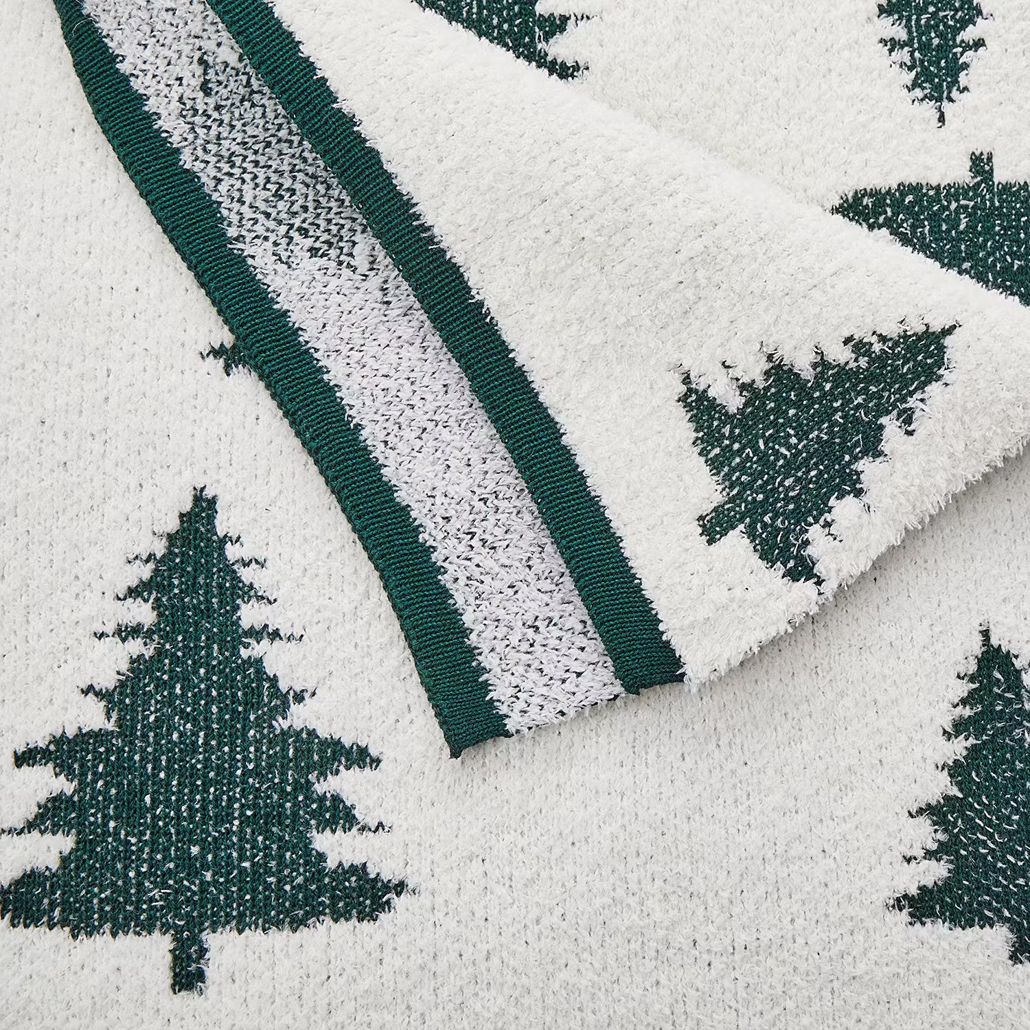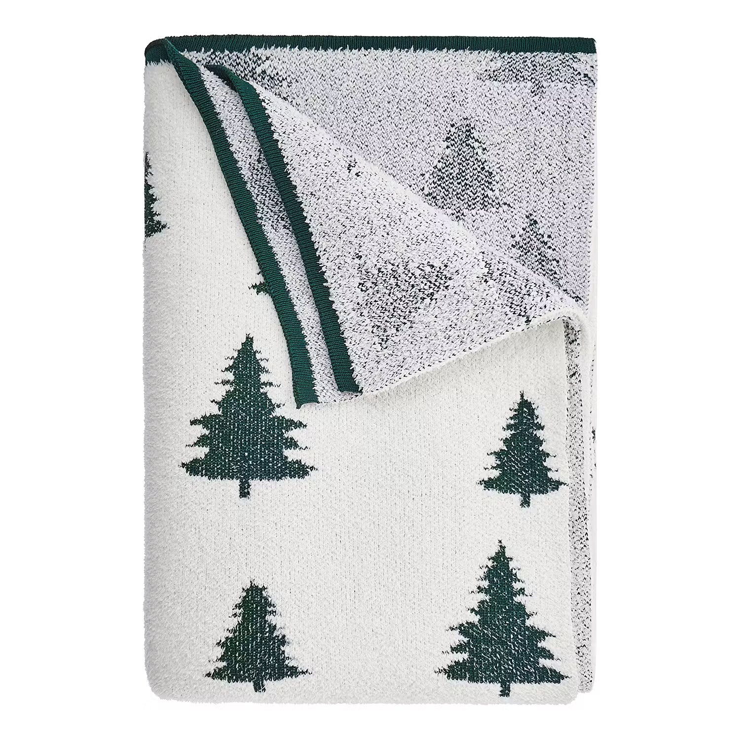 Winterzeit ist Gemütlichzeit - mit der Trees Decke Tanne. Die gemütliche Decke aus strukturiertem Baumwoll-Polyestermix schmückt sich mit einem zurückhaltenden Tannen-Dessin in Dunkelgrün und lässt sich so mit vielen winterlichen Deko-Elementen (z.B. aus Holz) und weihnachtlichen Farben (z.B. Rot) kombinieren.