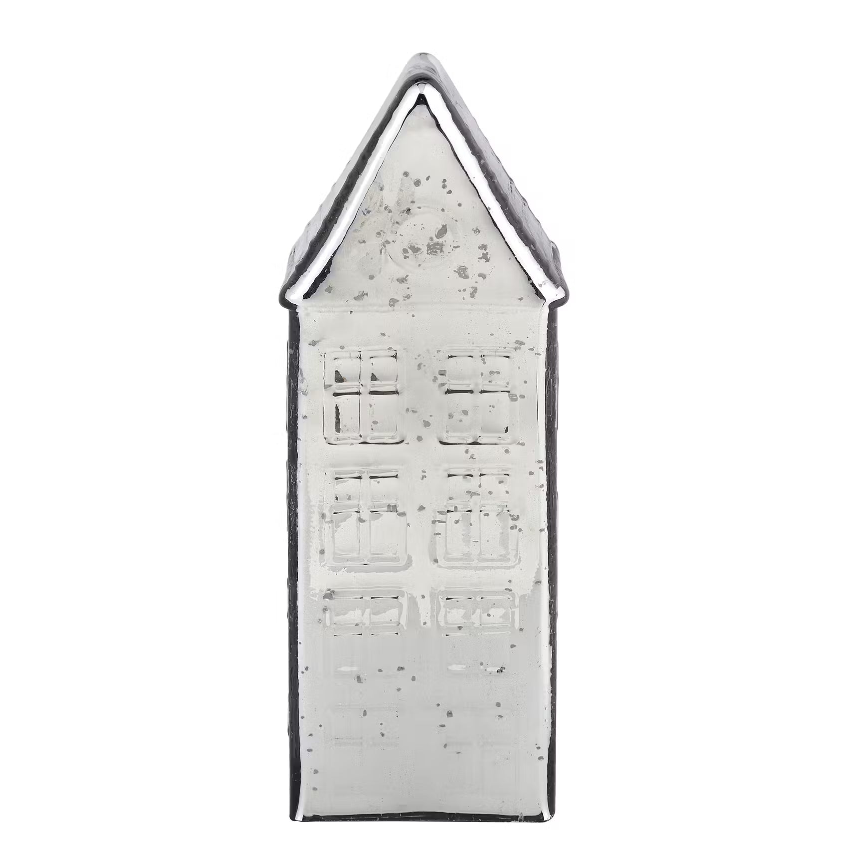 Je dunkler der Winter, desto funkelnder dein Zuhause: Das hübsche Jolly & Bright Deko Haus aus Glas in Silber setzt einen glänzenden Akzent, etwa auf einer Kommode oder der Fensterbank. In zwei Größen erhältlich, ideal auch zum Kombinieren.