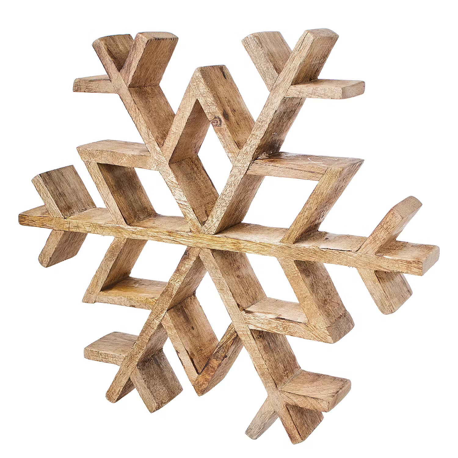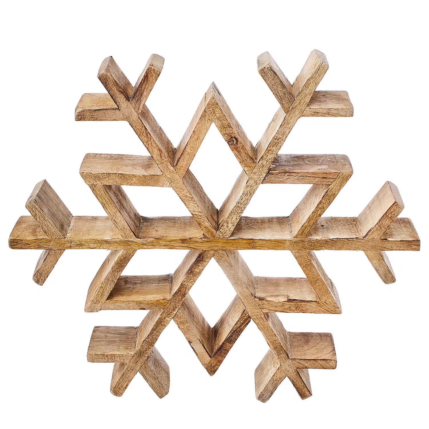 Du liebst Naturmaterialien und schmückst dein Zuhause zum Winter deshalb mit der Snowflake Deko aus warm schimmernden Mangoholz. Dieser hübsche Holzaufsteller in Schneeflocken-Form lässt sich auch in deine Tischdekoration integrieren oder mit z.B. Windlichtern oder Laternen auf einem Dekotablett in Szene setzen. In einer weiteren Größe erhältlich, ideal auch zum Kombinieren.
