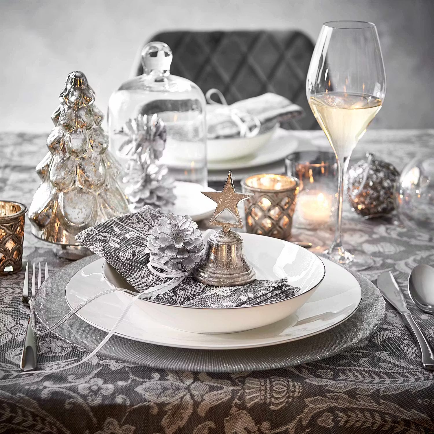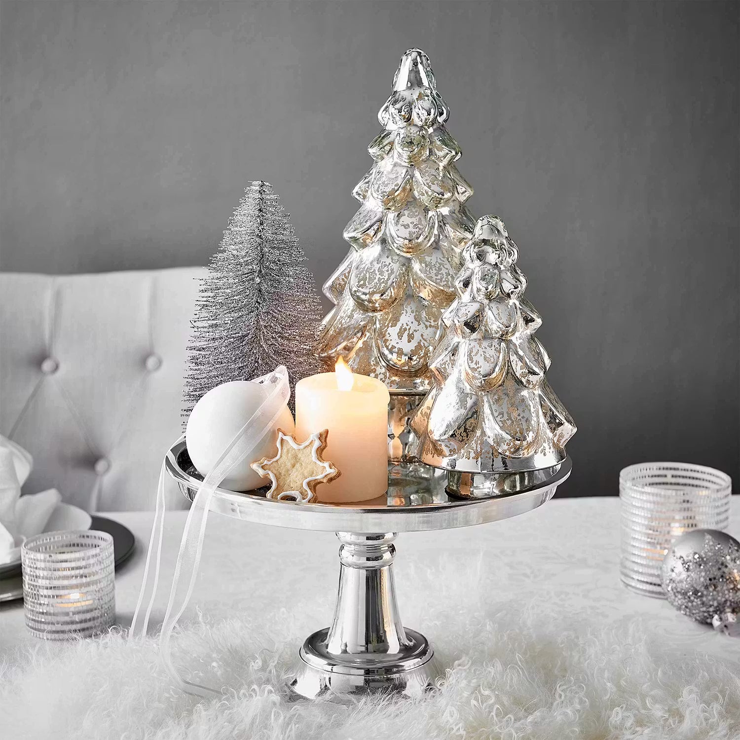 Zu Weihnachten dekorieren Sie Ihr Zuhause mit festlicher Deko in Silber oder Gold und stelle die ein oder andere winterliche Dekofigur auf den Esstisch oder die Fensterbank. Wie schön, dass die Silver Forest Deko Tanne Winter und Feststimmung in Einem vereint. Durch den Silberglanz der opulenten Glas Tanne wird Ihre Weihnachtsbeleuchtung kunstvoll reflektiert, wodurch ein entzückendes Lichtspiel die Festtage einläutet. In weiteren Größen zum Kombinieren und Dekorieren erhältlich.