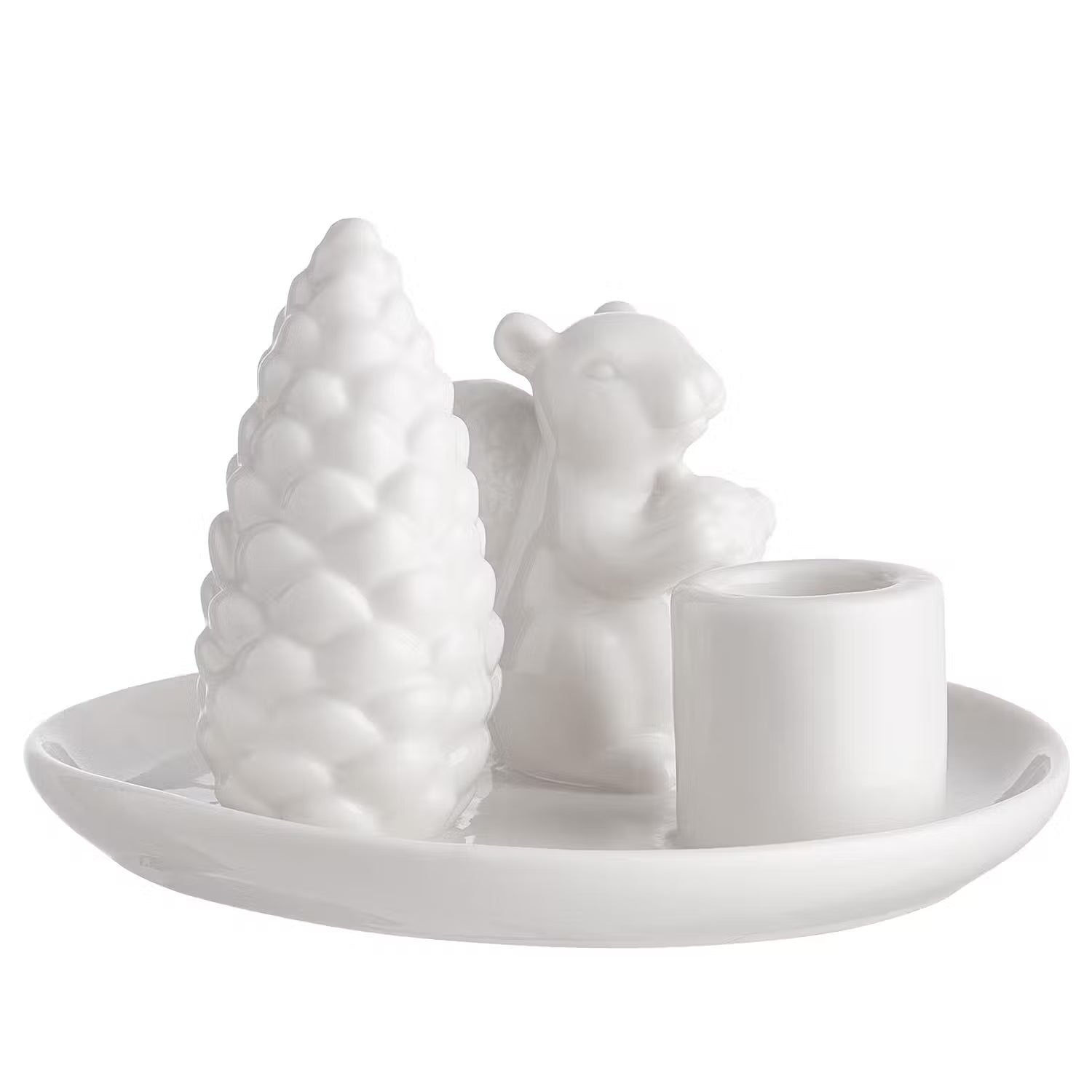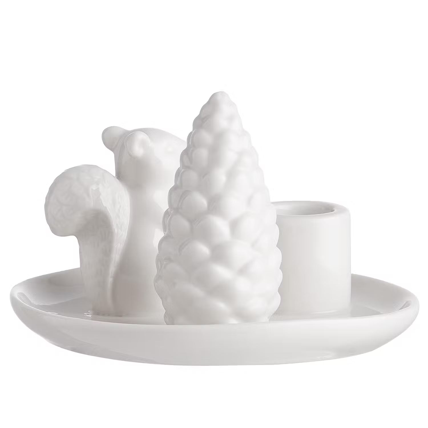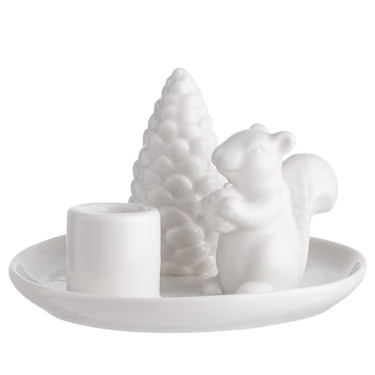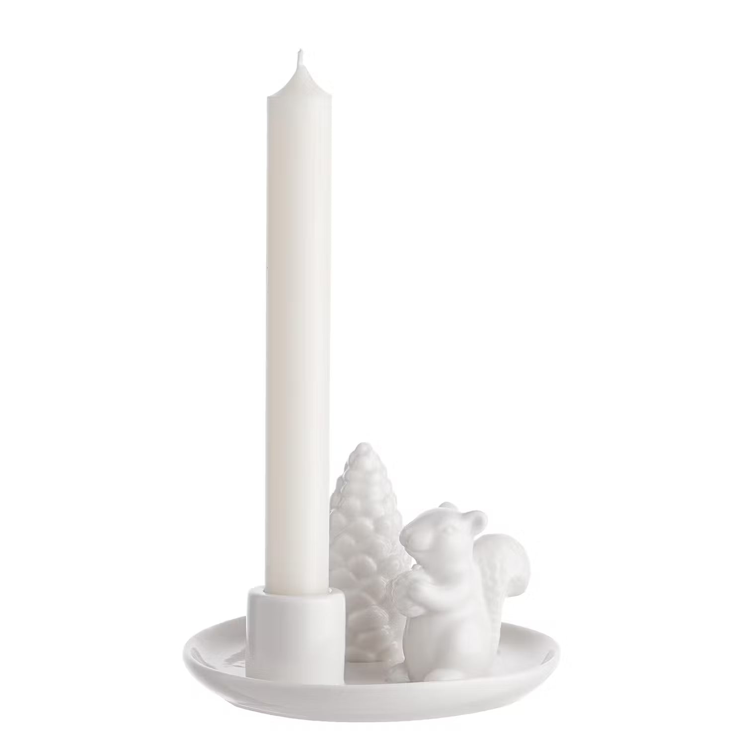 Der originelle Sylvan Spirit Kerzenhalter aus weißem Porzellan hat noch jemanden mitgebracht: ein dekoratives Eichhörnchen, das neben einem Tannenzapfen posiert. So entsteht ein kleine Figurengruppe - und das auf angenehm moderne Art. In einer weiteren Variante erhältlich.