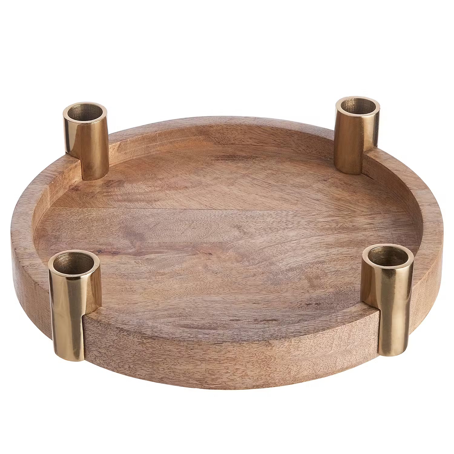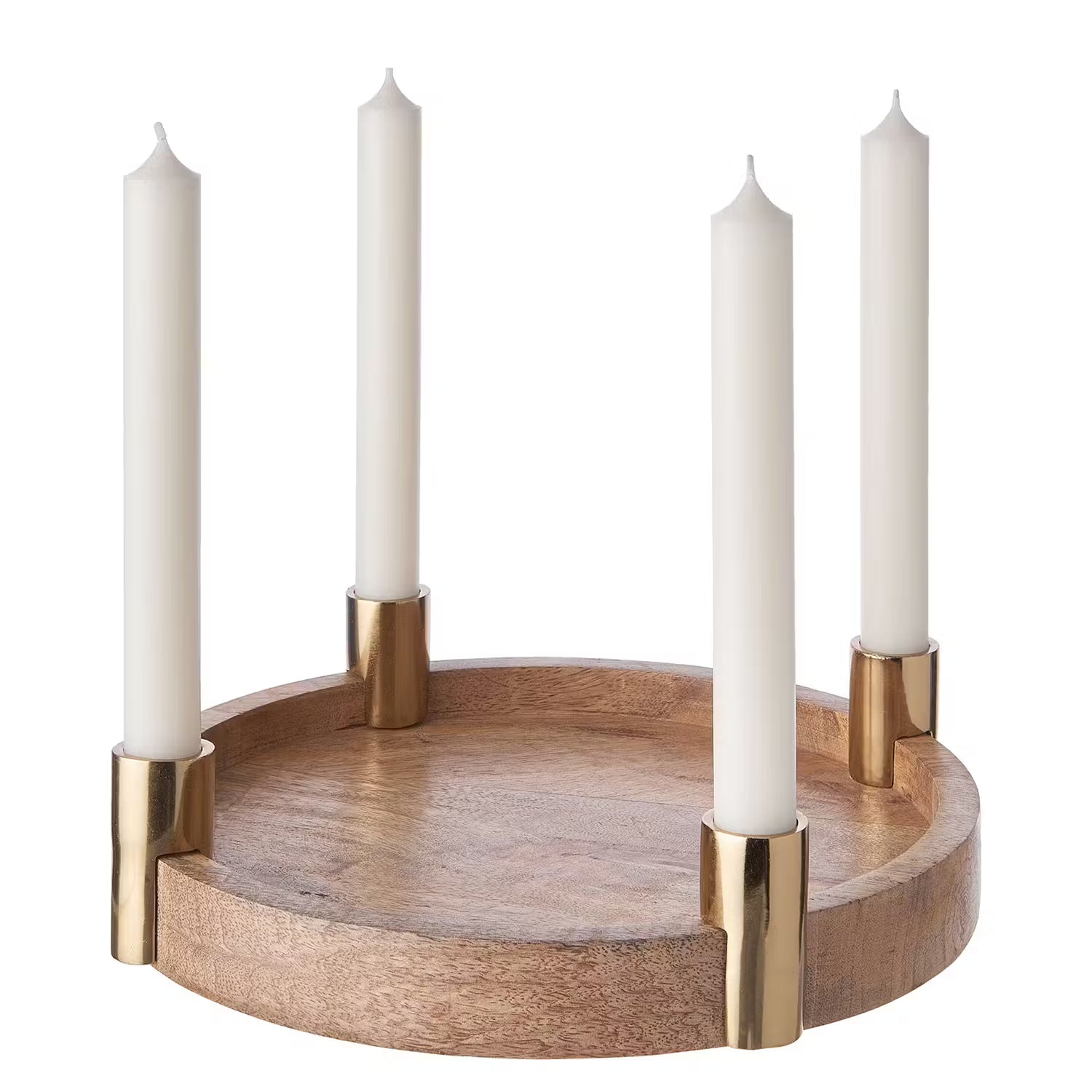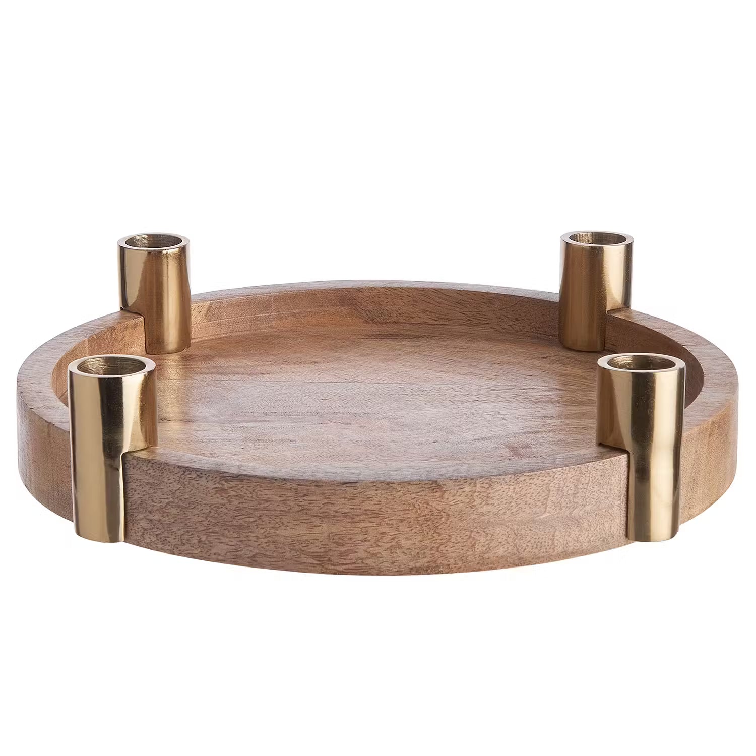Der Acacia Holzteller mit 4 Kerzenhaltern lässt sich das ganze Jahr über in Ihrem Zuhause dekorieren. Individuelle Akzente setzen Sie dabei mit farbigen Kerzen in den Aluminiumhaltern oder z.B. mit Ihren ganz persönlichen Deko-Highlights, passend zur Jahreszeit, in der Mitte des Akazienholztellers. Der Holzteller macht es Ihnen leicht mit dem Tischschmuck einen Blickfang auf Ihren Esstisch oder Kommode zu kreieren.