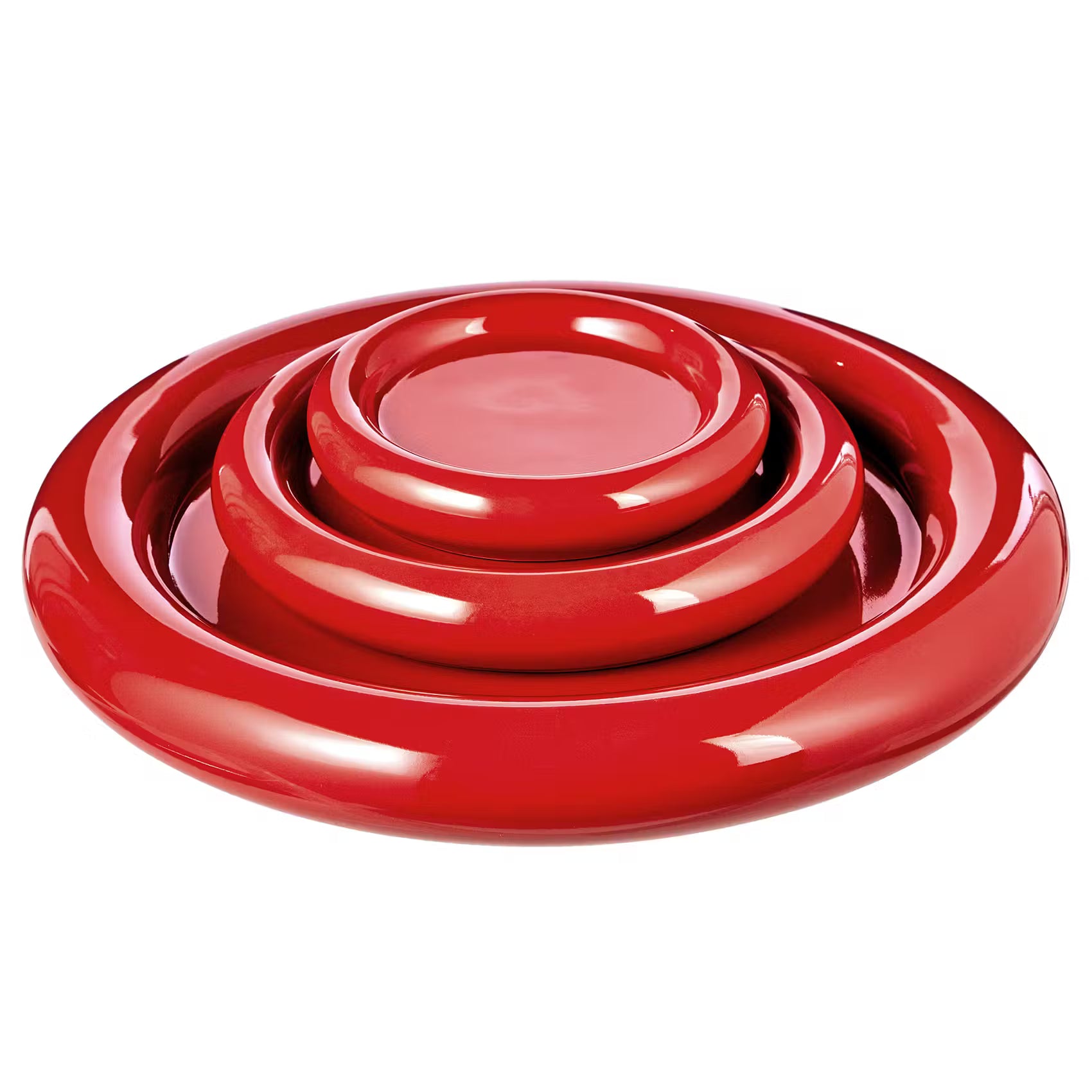 Auf dem gedeckten Tisch läuft alles rund mit dem Groove Dinnerteller mit 27 cm Durchmesser. Der hübsche Teller ist aus Steinzeug gefertigt und glänzend glasiert, er eignet sich für die Spülmaschine und die Mikrowelle. Charakteristisch ist der runde, ausgeprägte Rand, der diesem Geschirr seine charmante, plakative Optik verleiht. Aus der Groove Serie sind Teller in verschiedenen Größen, sowohl in Rot als auch in Rosa - zum Kombinieren nach Lust und Laune.