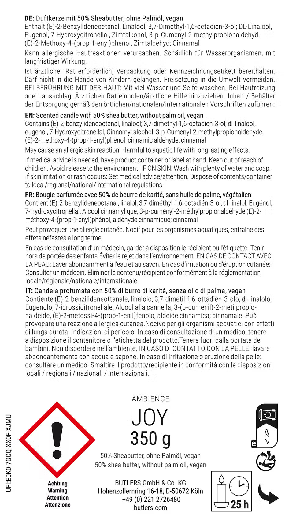 Name: BUTLERS GmbH & Co. KG Adresse: Hohenzollernring 16-18 D-50672 Köln, Germany Elektronische Adresse: https://www.butlers.com/ |