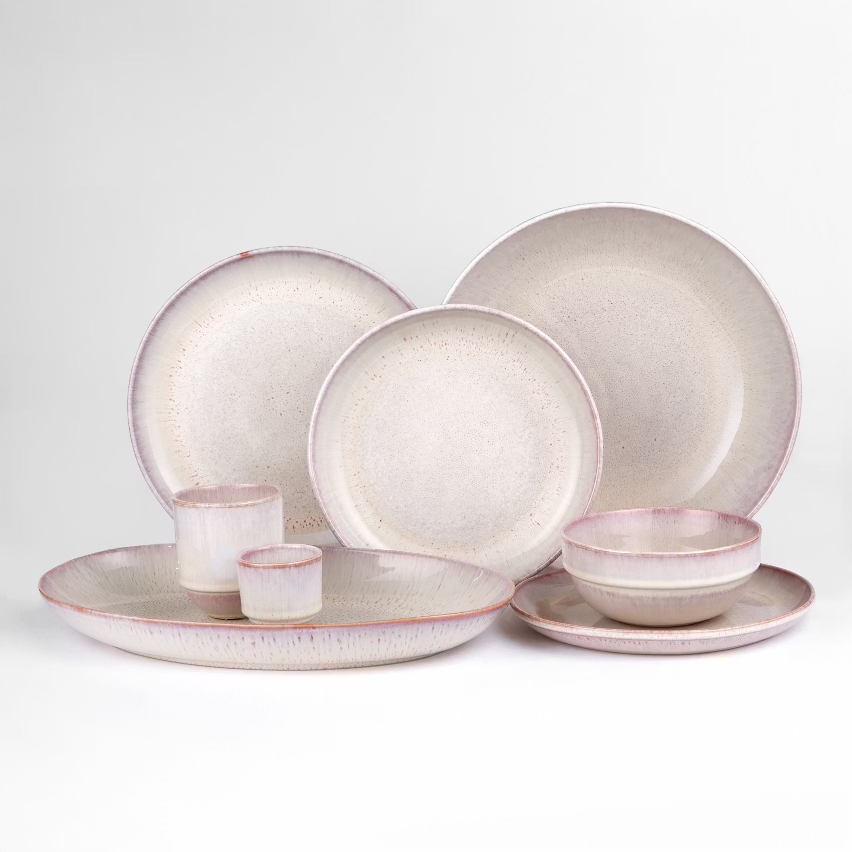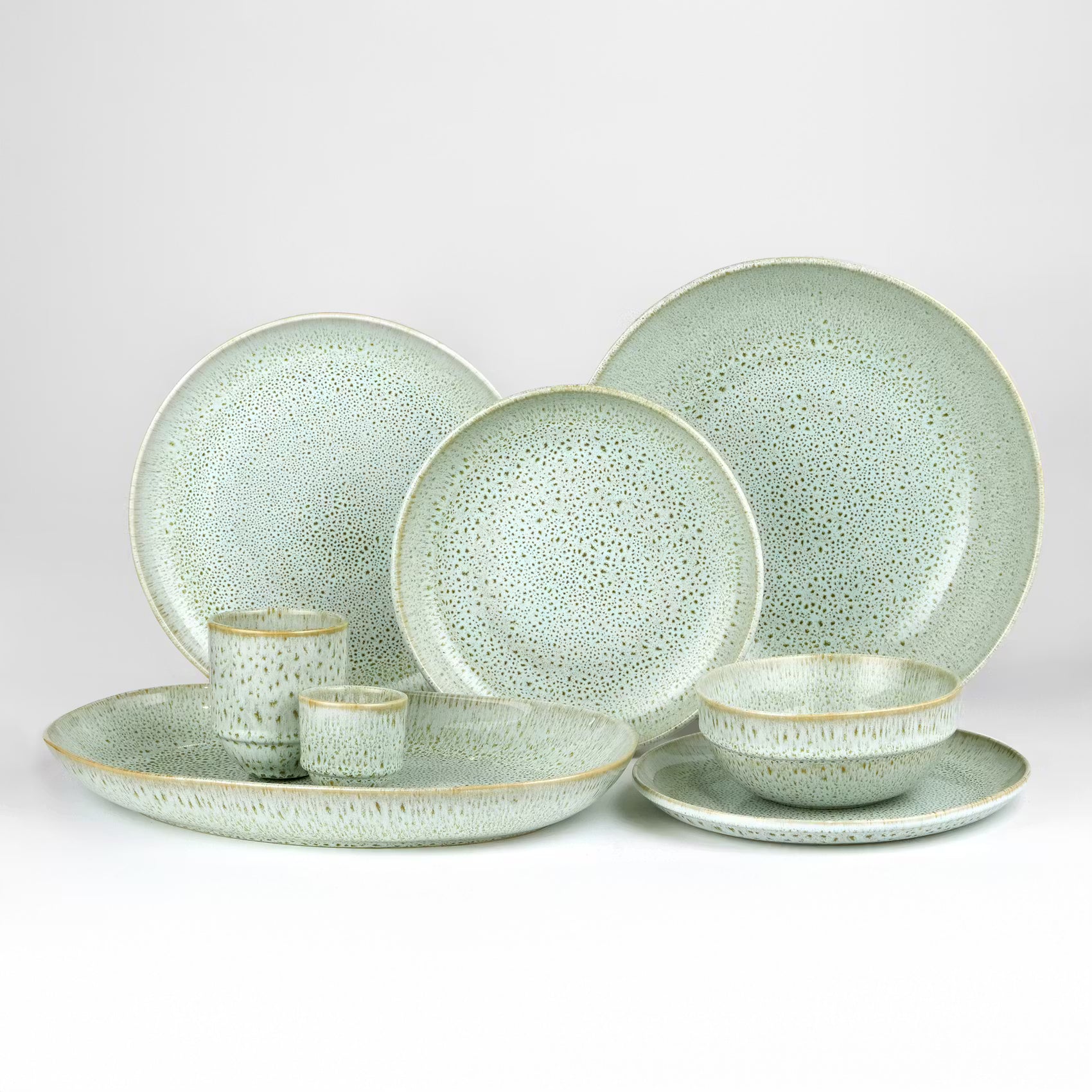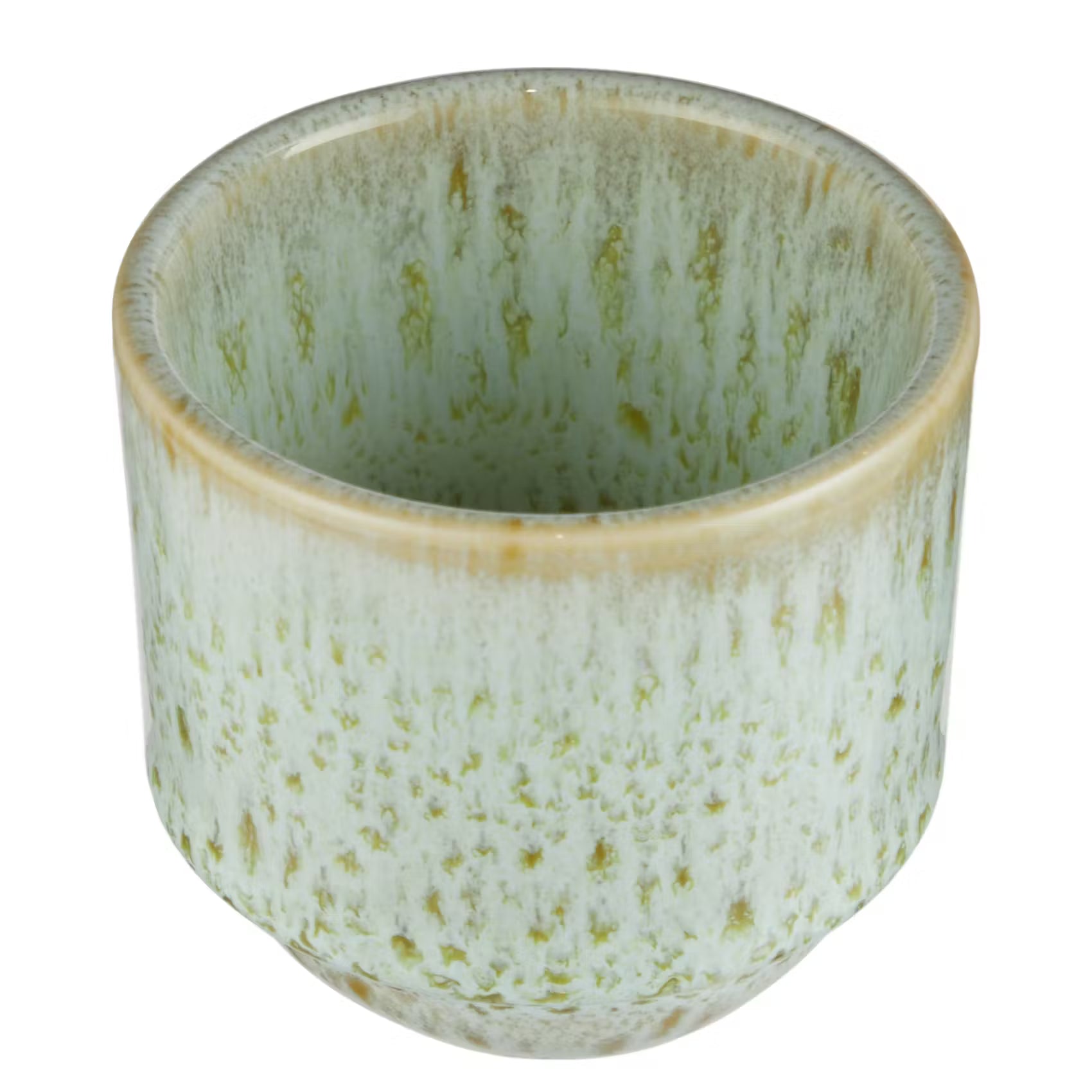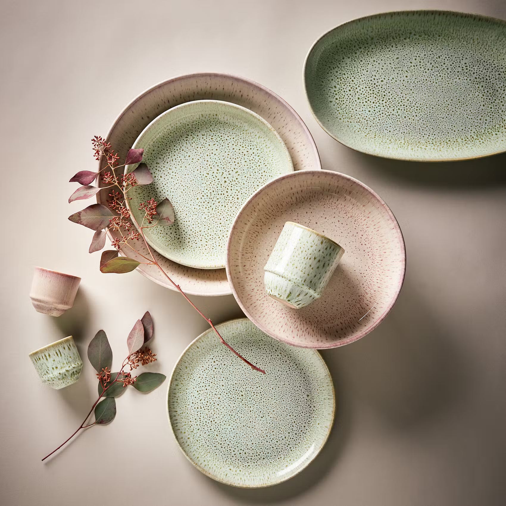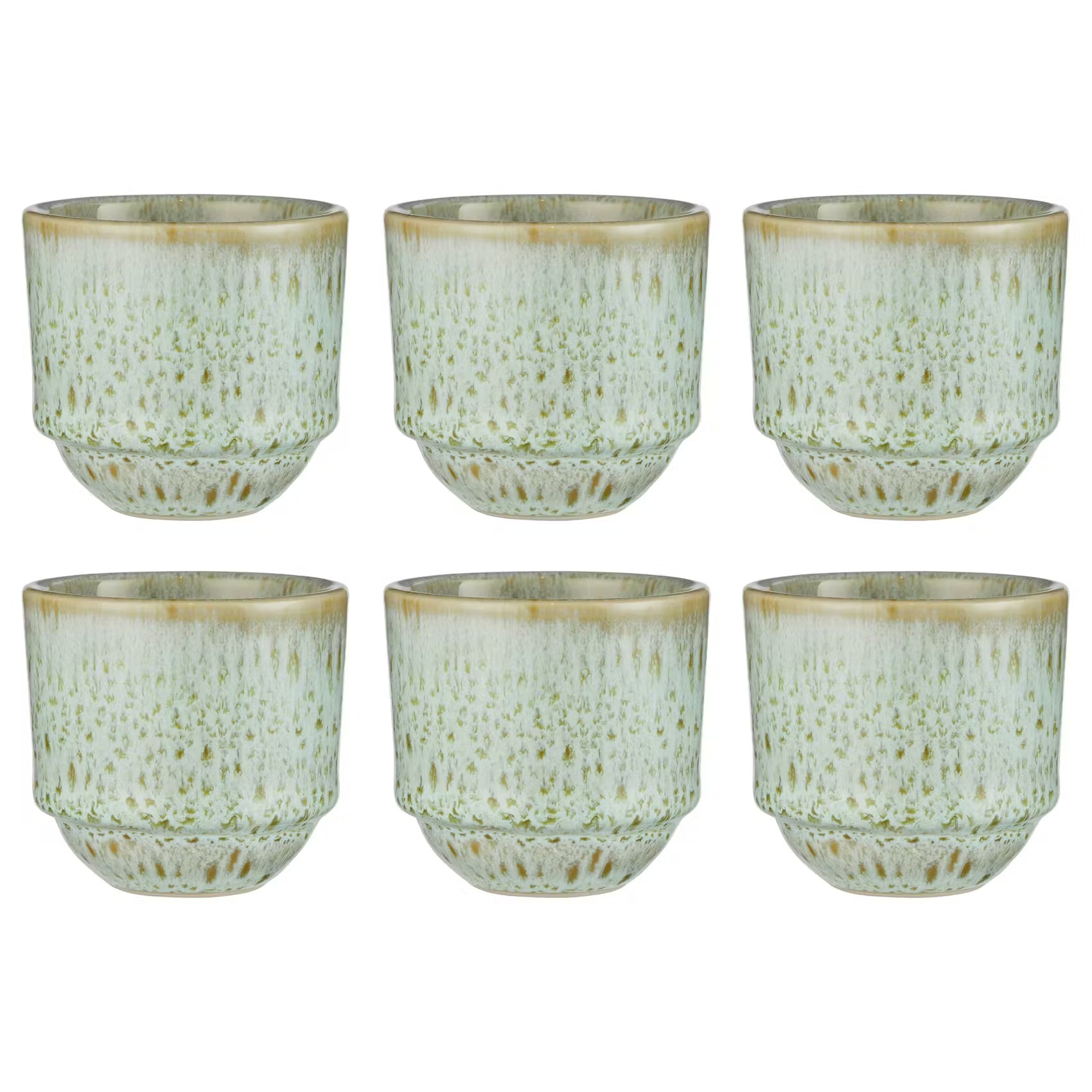 Das Markenzeichen des wunderschönen Tavira Espressobechers im 6er-Set ist seine reaktive Glasur. Bei diesem aufwändigen Brennverfahren entstehen einzigartige Sprenkel und Flecken, die jedes Teil zu einem Unikat machen. So deckst du deinen Tisch immer mit echter Handwerkskunst. Doch die Tavira-Geschirrserie (bestehend aus verschiedenen Tellern, Schalen, Bechern und Platten, allesamt stapelbar) hat noch mehr zu bieten. Aus hochwertigem Steinzeug gefertigt, ist jedes Teil robust und für die Mikrowelle und den Geschirrspüler geeignet. Erhältlich in den Farbvarianten Grün und Rosa.