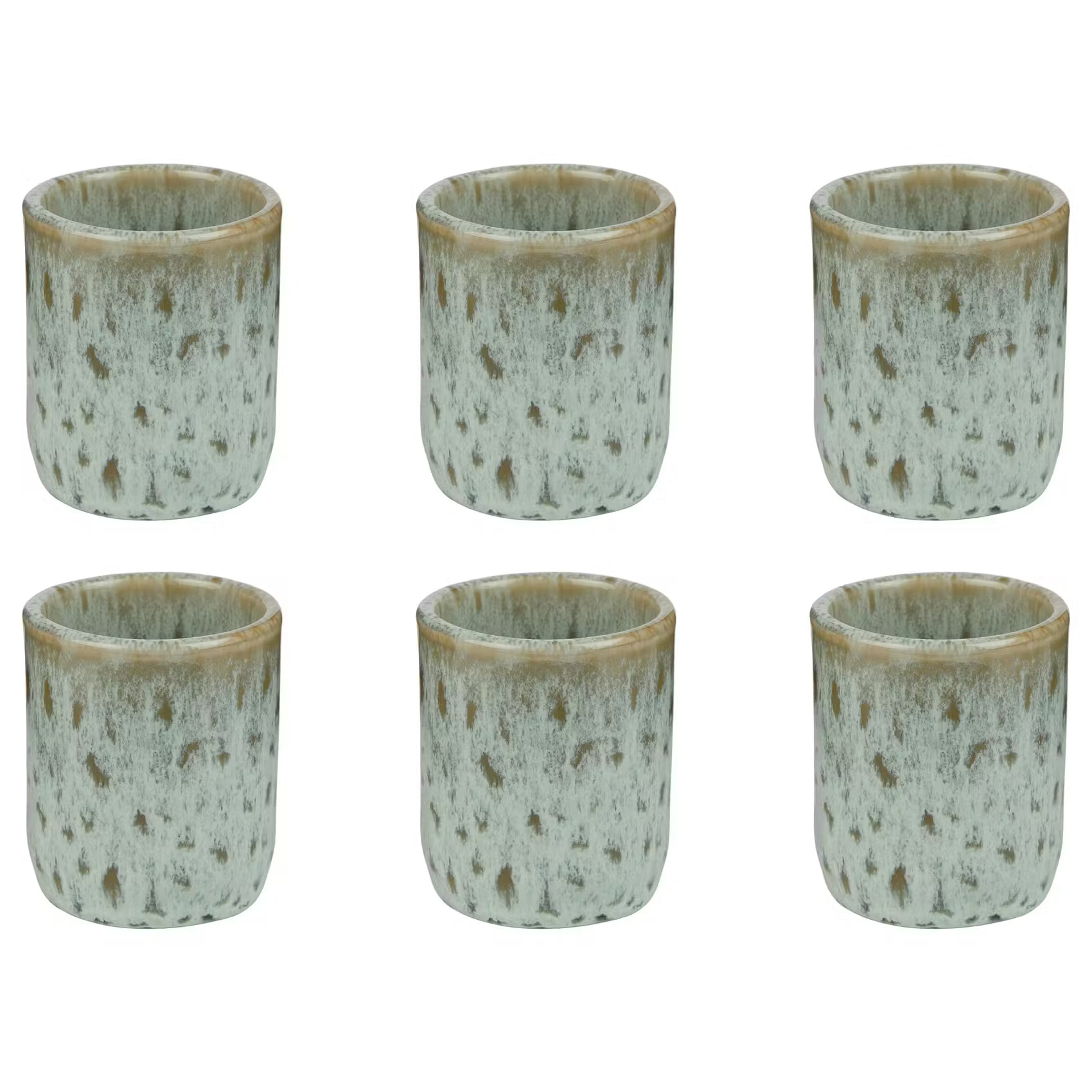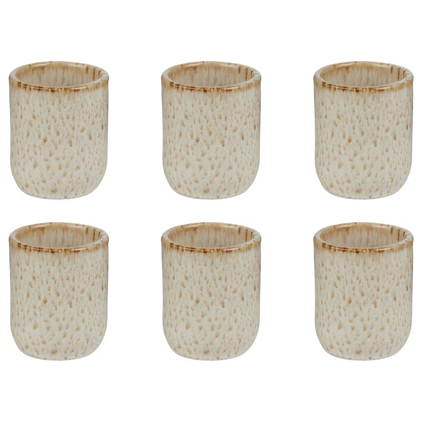 Bei der Bom Dia Espressotasse aus Steinzeug verbinden sich die reduzierte Form ohne Henkel und die gesprenkelte, organisch wirkende Glasur zu einem modernen, selbstbewussten Look. Damit passt die kleine Tasse auf den im natürlich Stil gedeckten Tisch, gerne auch in Kombination mit Naturmaterialien wie Holz, Korb und Rattan. In verschiedenen Farbvarianten erhältlich, zudem gibt es passende Tassen.