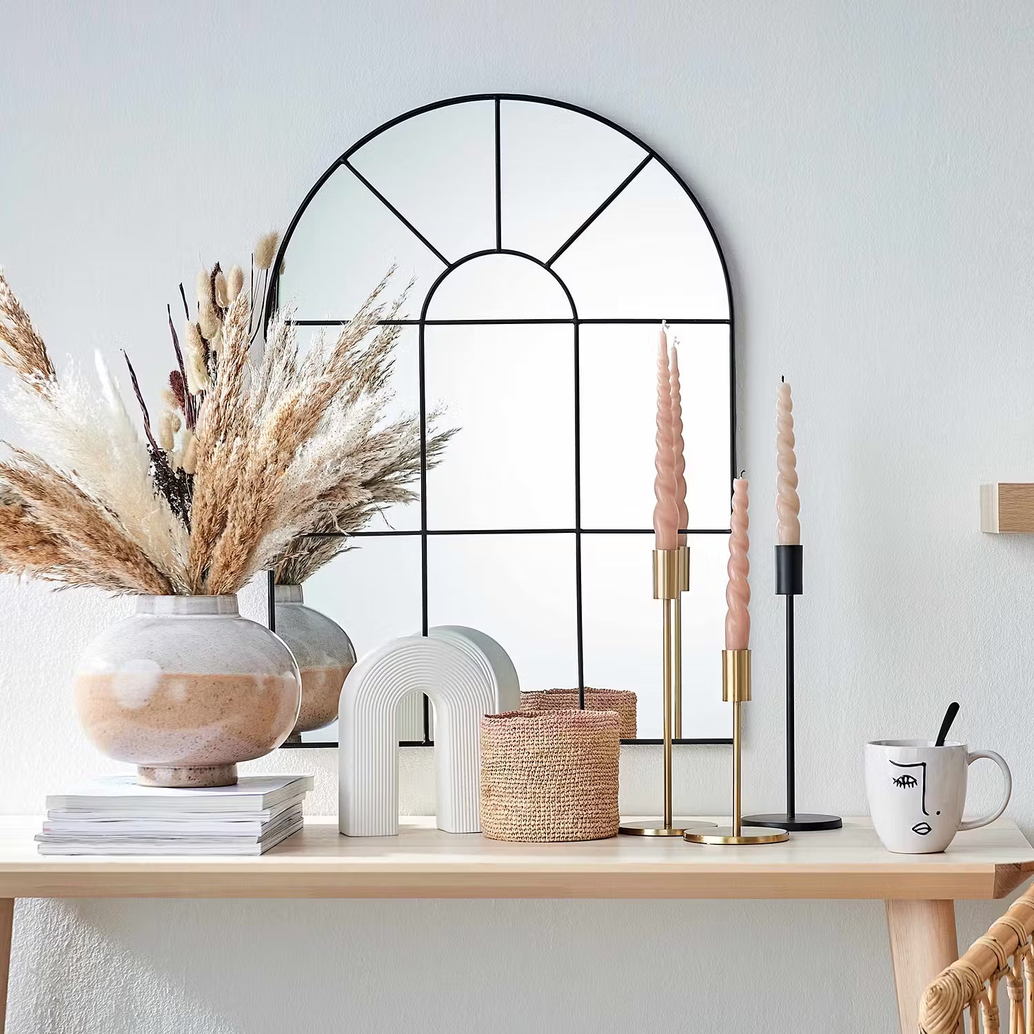 Ja, seine kompakten Maße von 30 x 40 cm machen ihn ideal für kleine Räume. Er vergrößert optisch den Raum und fügt sich harmonisch ein, ohne zu dominieren – perfekt für ein luftiges, offenes Ambiente.