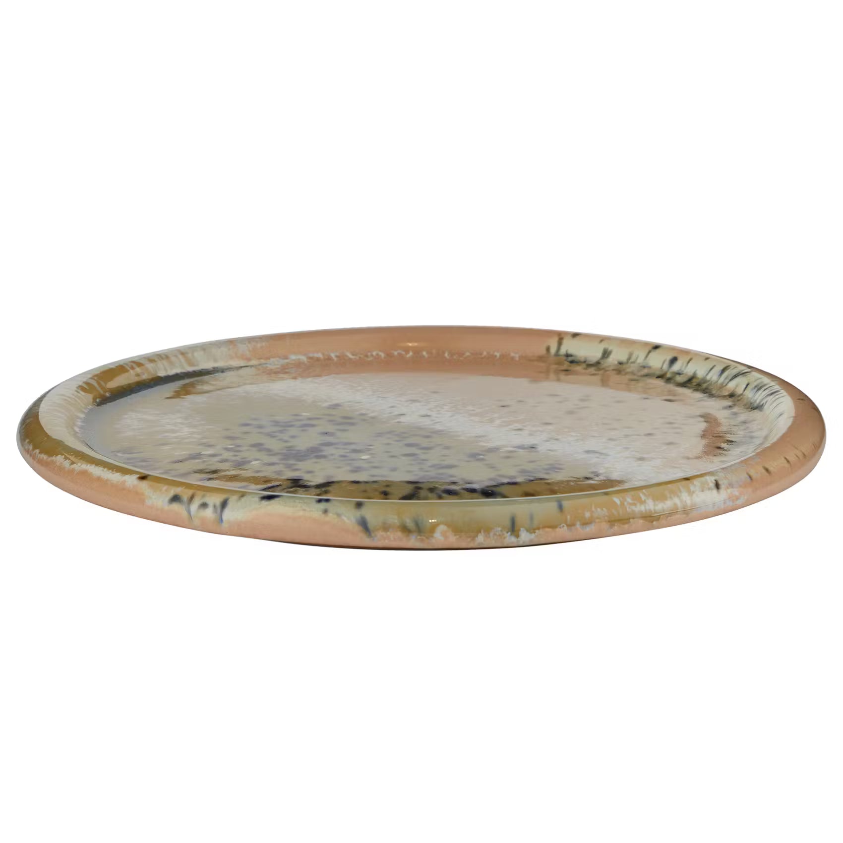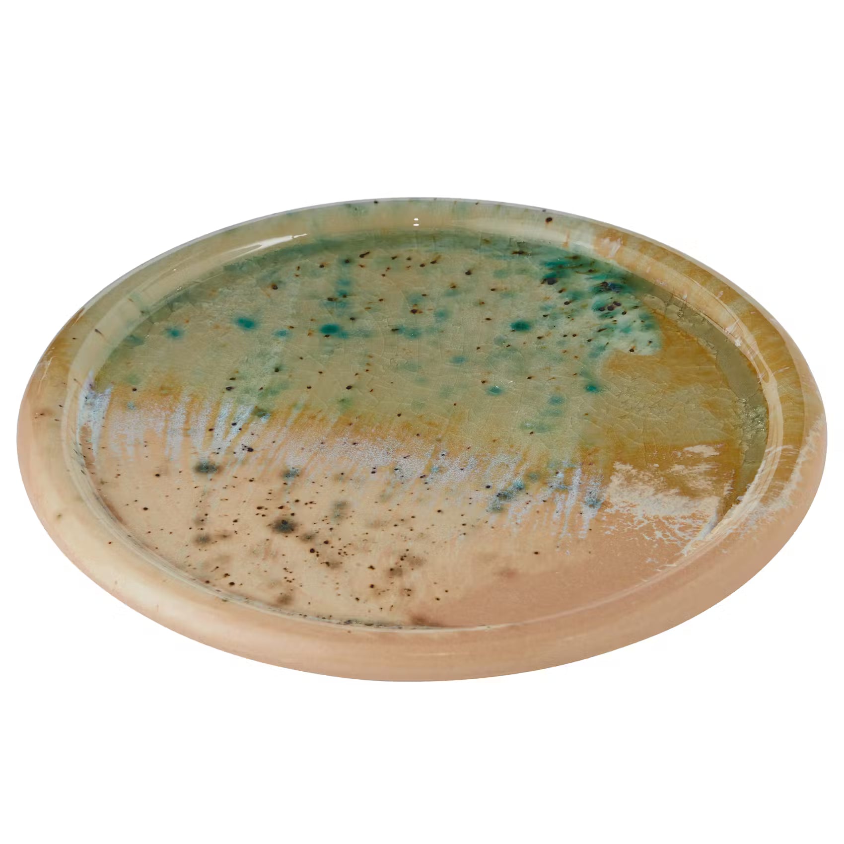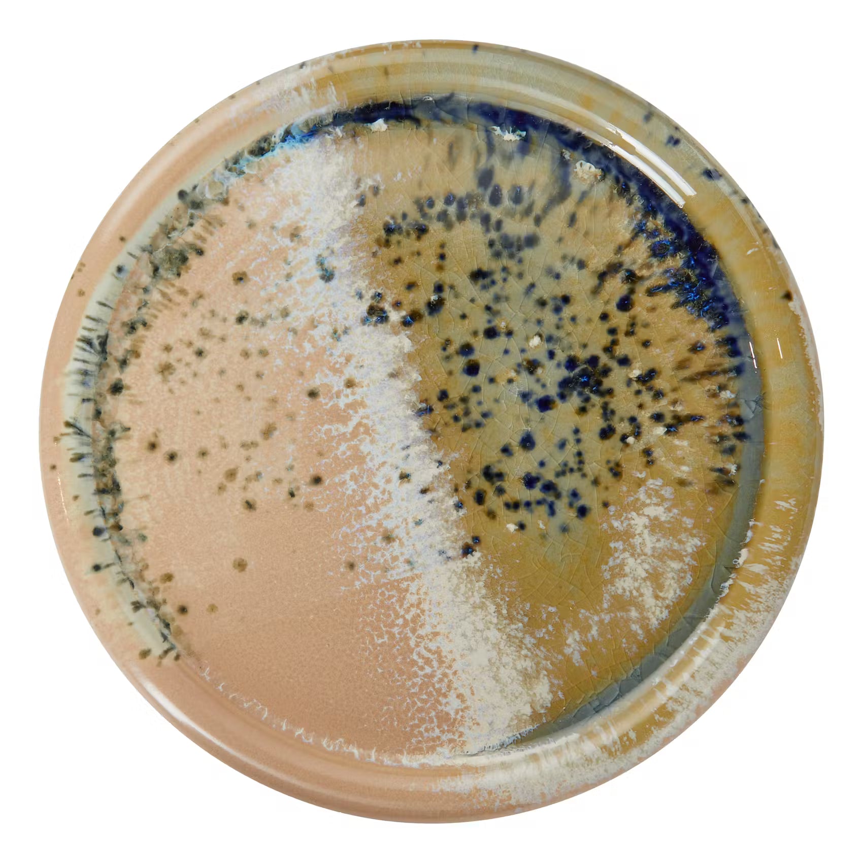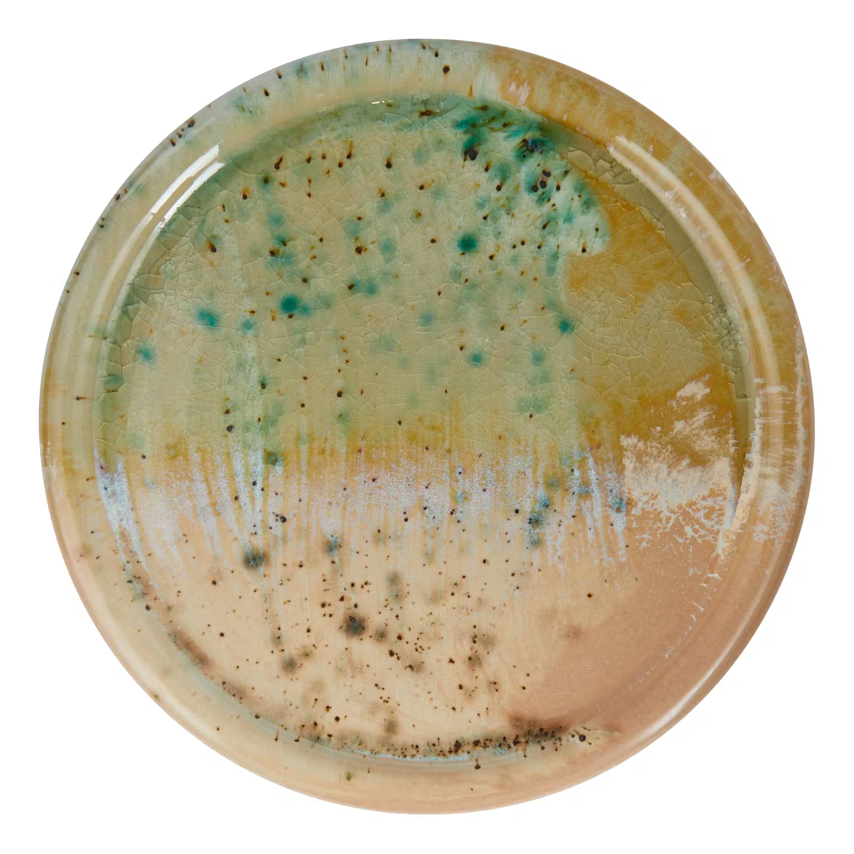 Ein einzigartiges Statement-Piece für deinen gedeckten Tisch: Der Sintra Frühstücksteller 21,5 cm Durchmesser zieht mit seinen dynamischen Farbverläufen und abstrakten Mustern alle Blicke auf sich. Hinter dieser beeindruckenden Optik verbergen sich natürlich Glasuren mit individuellem Charakter, veredelt durch eine transparente Krakelé Glasur. Erdverbunden und authentisch entsteht so eine besondere Form von Luxus. Der Steinzeug-Teller ist übrigens spülmaschinengeeignet und mikrowellengeeignet, und für den perfekt gedeckten Tisch gibt es aus der Sintra Geschirrserie weitere Teller, Salatschalen und Servierschalen in verschiedenen Farbvarianten.