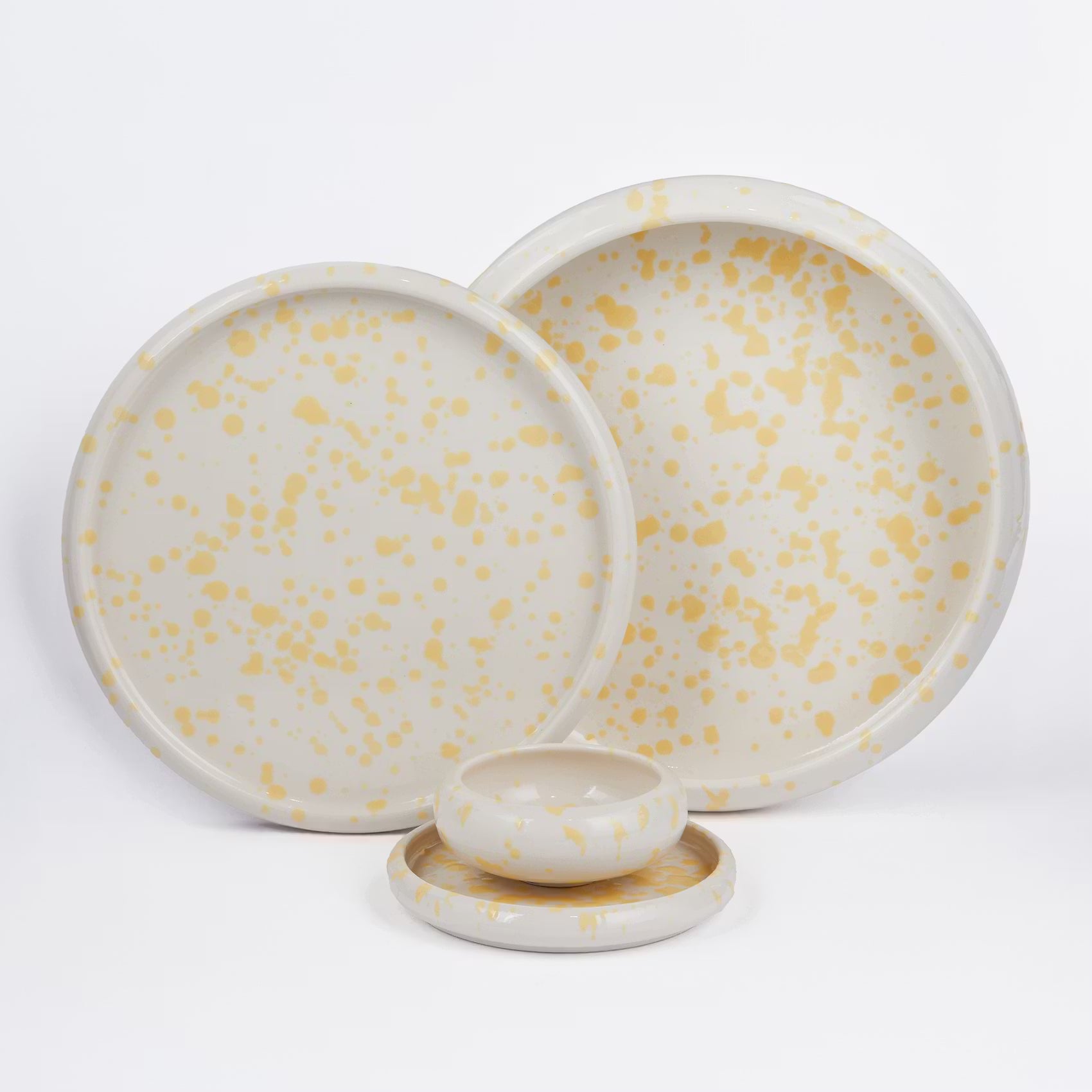 Lebendige Tupfer tanzen auf dem Boogy Splash Frühstücksteller. Das minimalistische Geschirr aus hochwertigem Steinzeug ist organisch geformt und greift, ganz modern, die abgerundete Form eines Frisbees auf. Dieser besondere Look und die neutrale Farbwelt machen die Teller und Schalen der Boogy Splash Geschirrserie zu einem Statement Pieces auf dem gedeckten Tisch. Verschiedene Farben erhältlich, perfekt für dein individuelles Mix & Match.