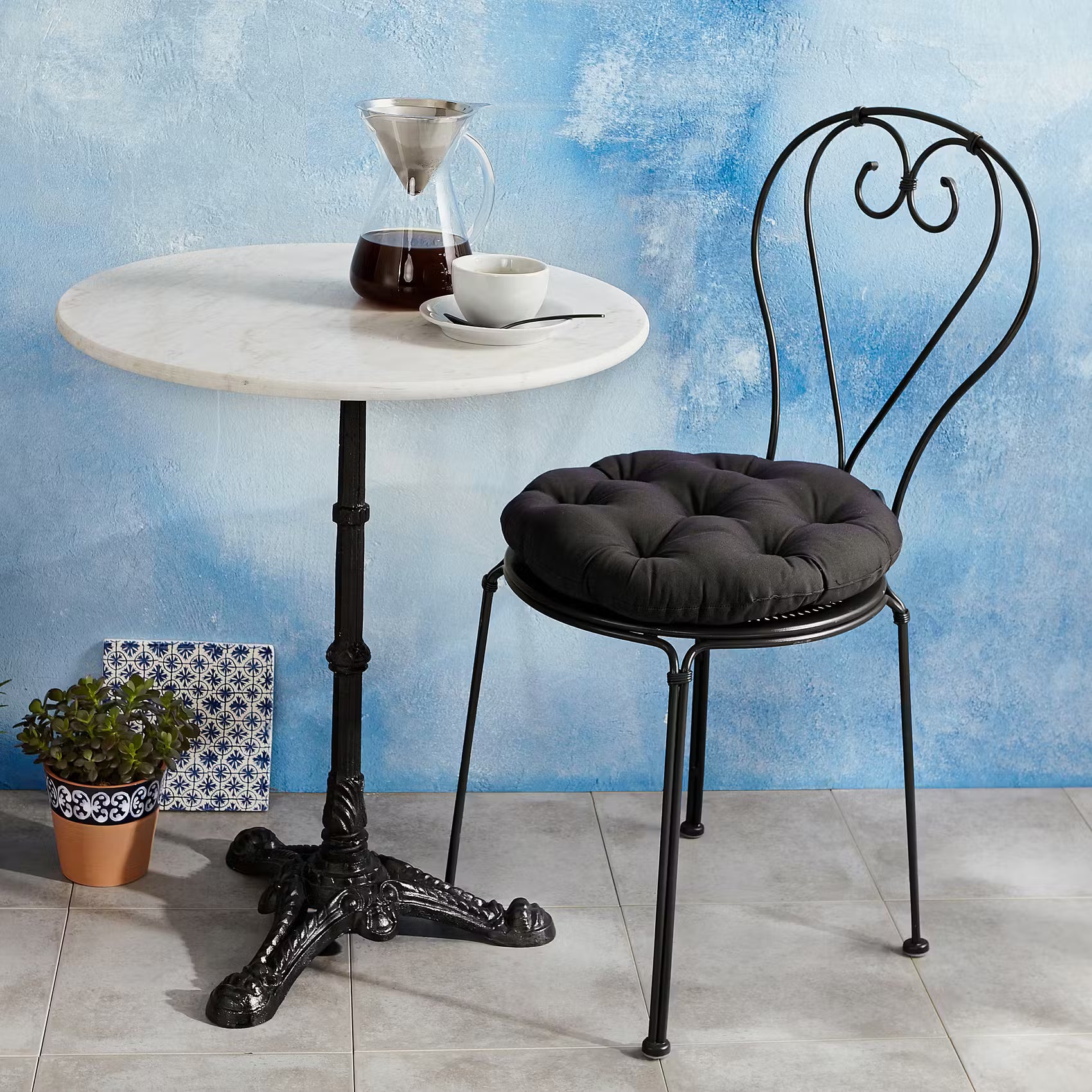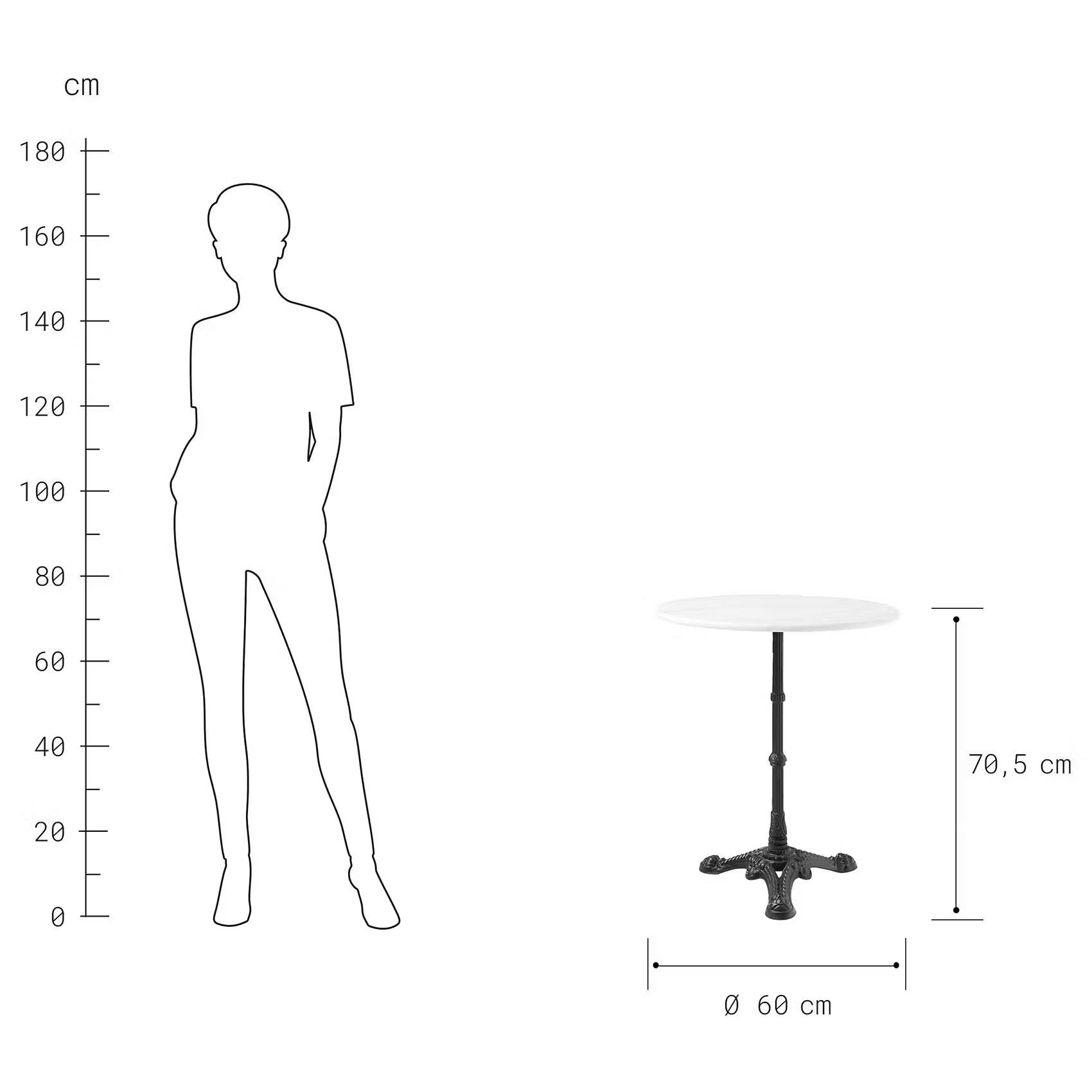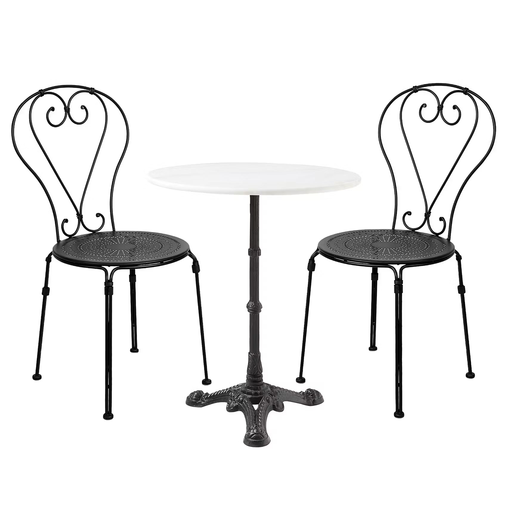 Französischer Bistro-Charme für Ihr Zuhause: Das Set bestehend aus zwei Palazzo-Stühlen und dem runden Castello-Bistrotisch mit Metallfuß und Marmorplatte beherrscht das Savoir-Vivre. Vielseitig einzusetzen auf Balkon, Terrasse oder im Garten.