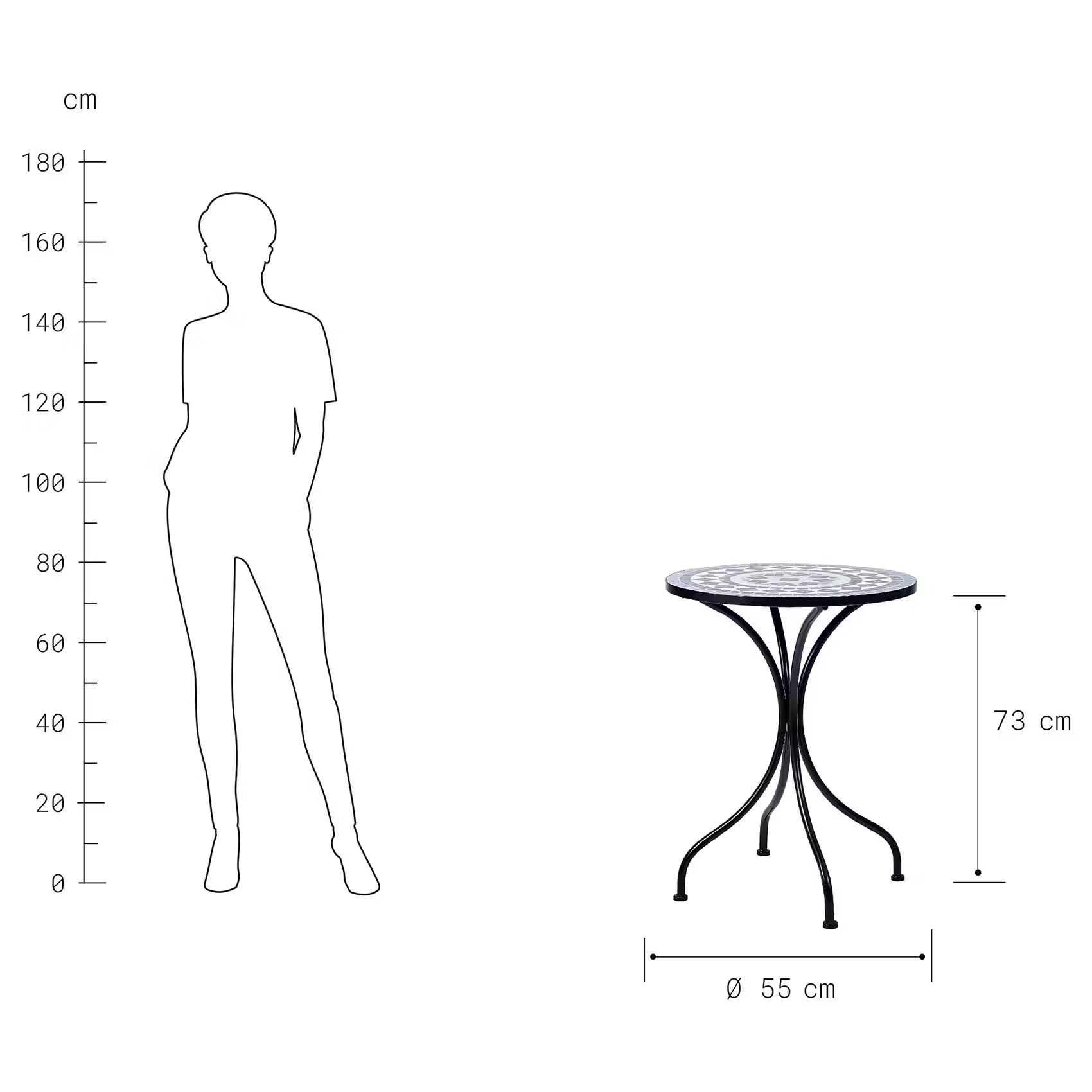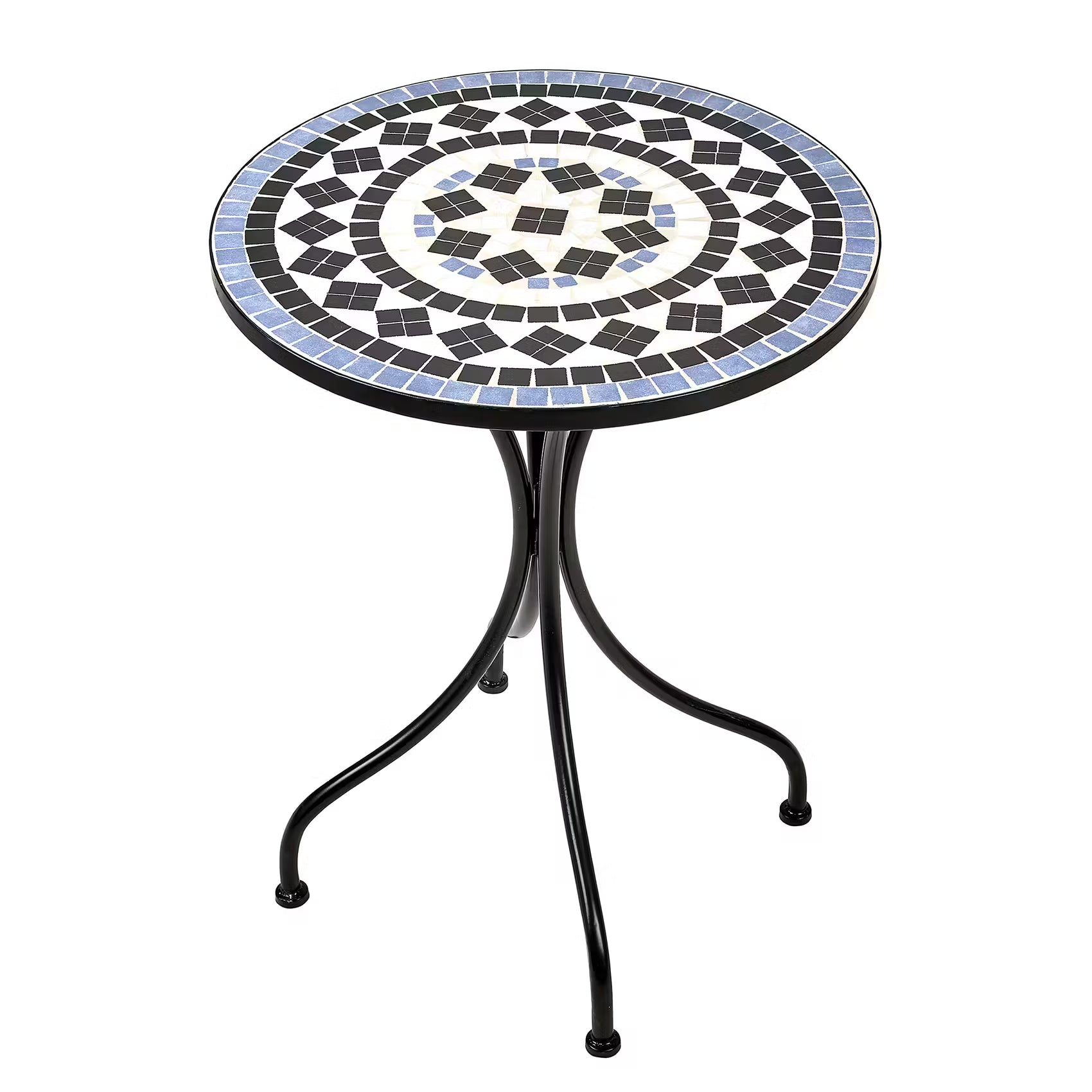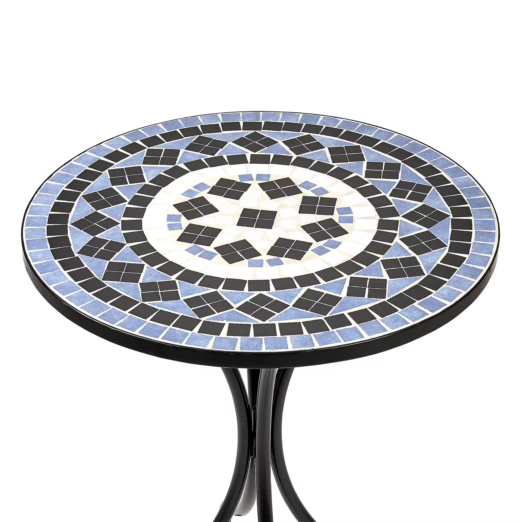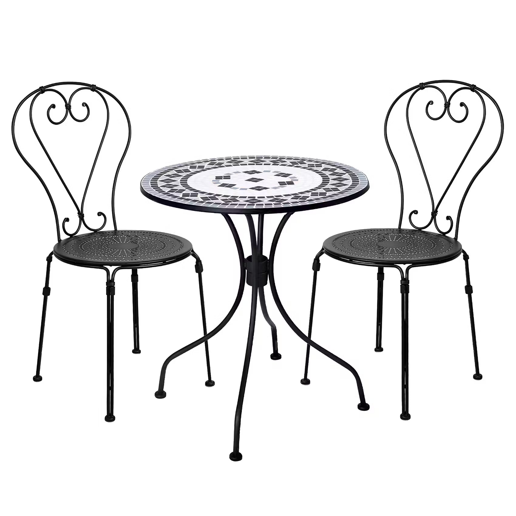 Traditionell toskanisch: Ihr 3-teiliges Palazzo Gartenmöbel-Set bestehend aus zwei Stühlen und einem Mosaikstein-besetzten Tisch lädt im Wintergarten, auf Terrasse oder Freisitz zum Cappuccino am Vormittag oder zum Espresso nach dem Essen ein. Tisch und Stühle sind aus matt-pulverbeschichtetem Eisen.