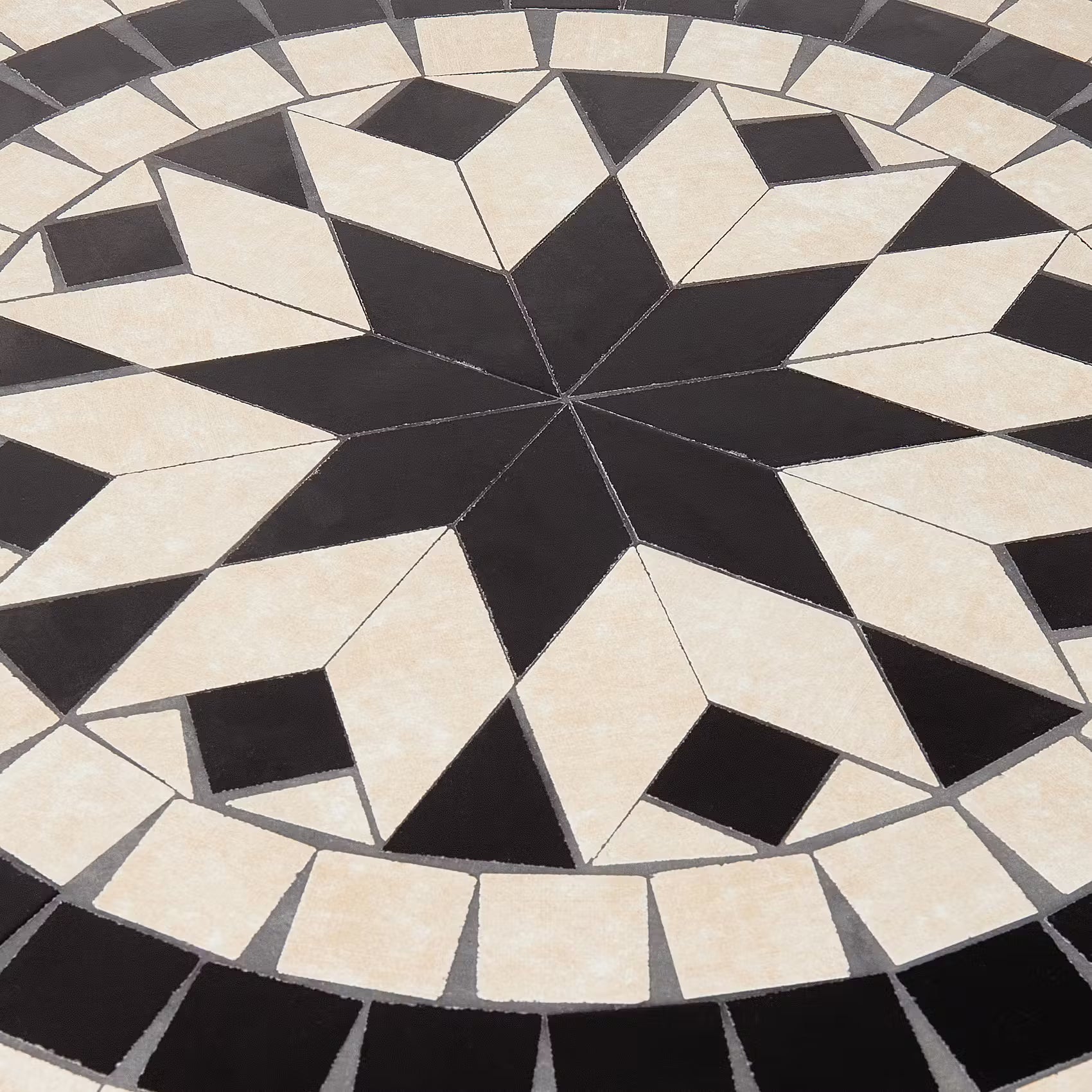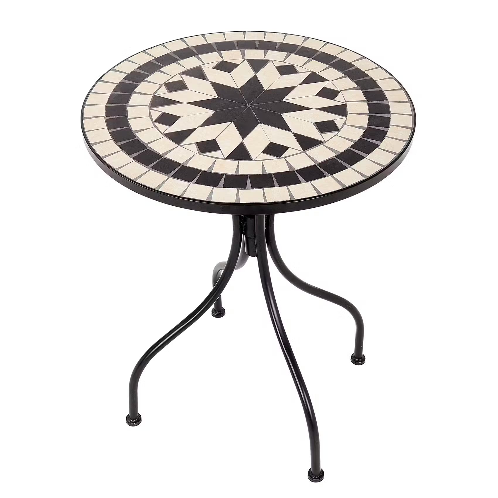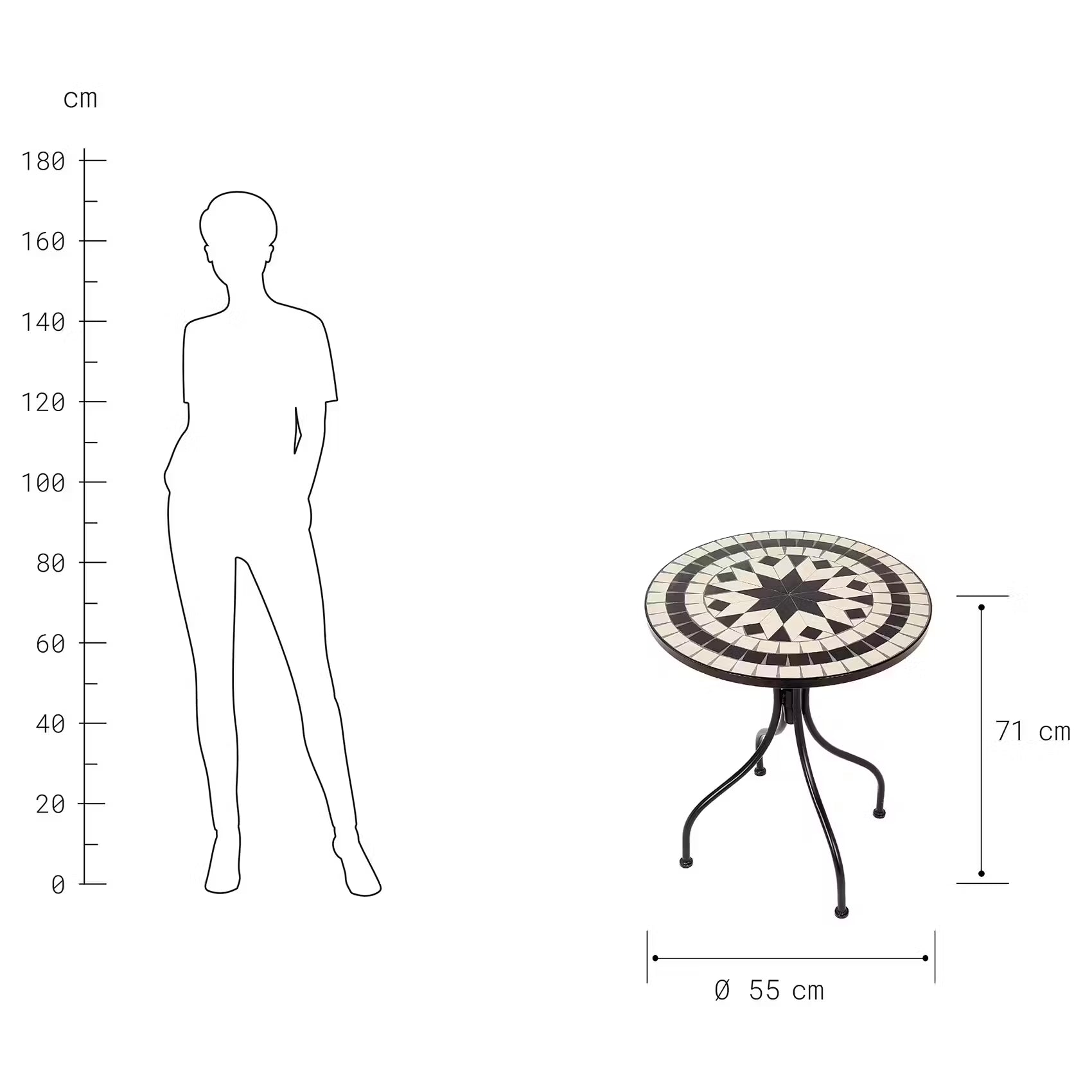 Moment mal: Ihr 3-teiliges Palazzo Gartenmöbel-Set bestehend aus zwei Stühlen und einem Mosaikstein-besetzten Tisch und lädt im Wintergarten, auf Terrasse oder Freisitz zum Cappuccino am Vormittag oder zum Espresso nach dem Essen ein. Tisch und Stühle sind aus matt-pulverbeschichtetem Eisen.