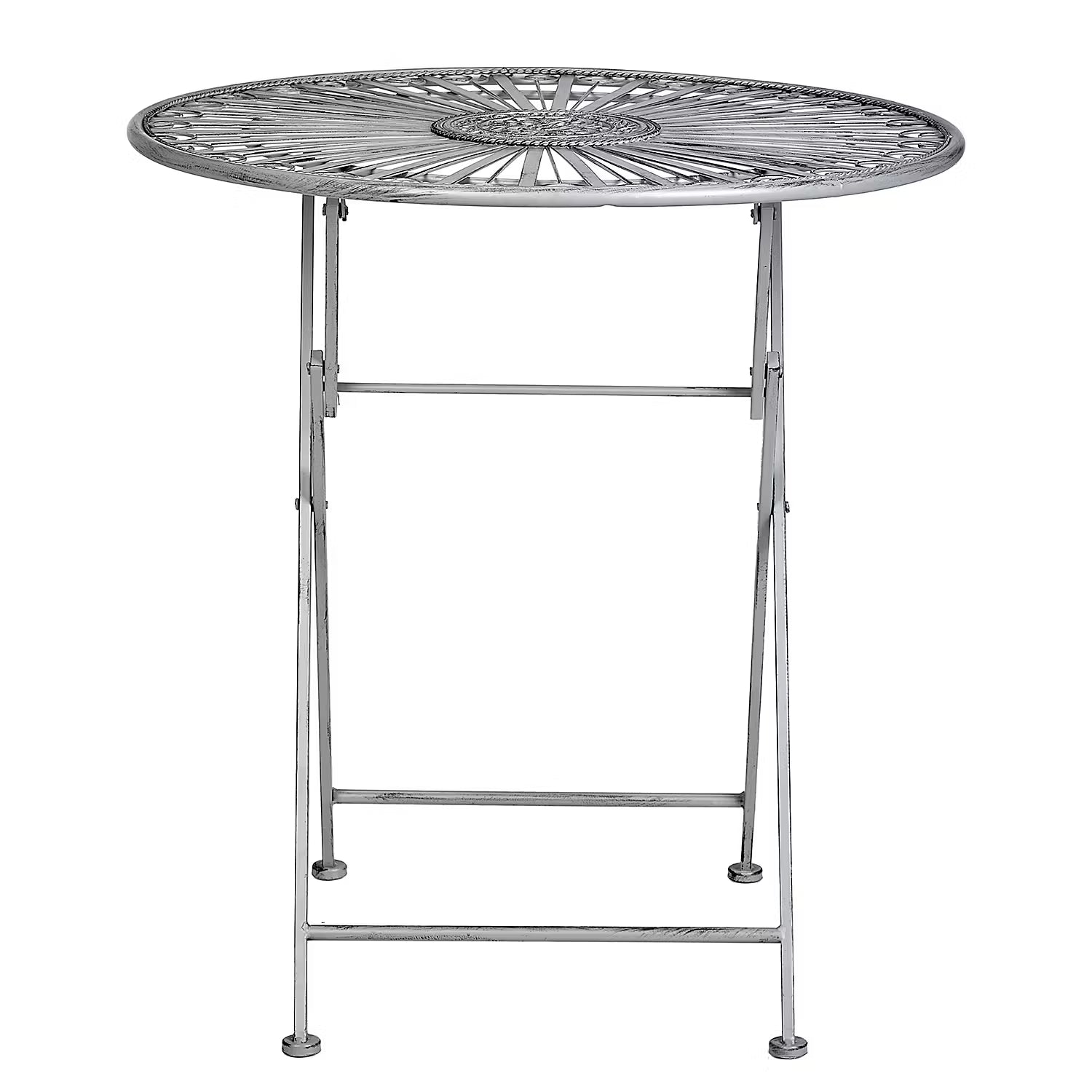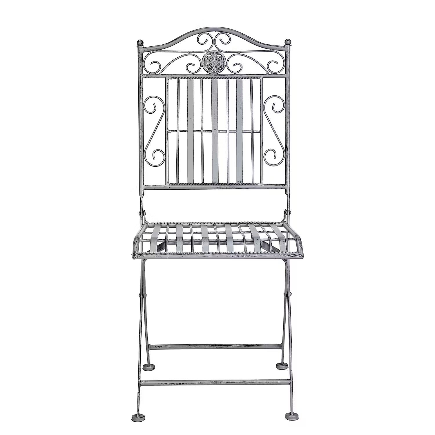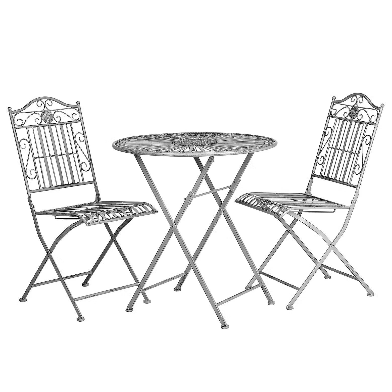 Wie in den Gärten von Versailles genießt du die Sonne und das Vogelgezwitscher mit dem hübschen Terrace Hill Gartenmöbel-Set 3-teilig. Es umfasst einen faltbaren Tisch und zwei faltbare Stühle aus Eisen in Grau, aufwändig im romantischen Stil verziert. Die faltbaren Gartenmöbel lassen sich leicht transportieren und platzsparend verstauen, weshalb sich das Set auch gut für kleinere Balkons eignet. Oder du wanderst mit diesem Gartenmöbel-Set der Sonne hinterher und kostest so die Outdoorsaison voll aus.