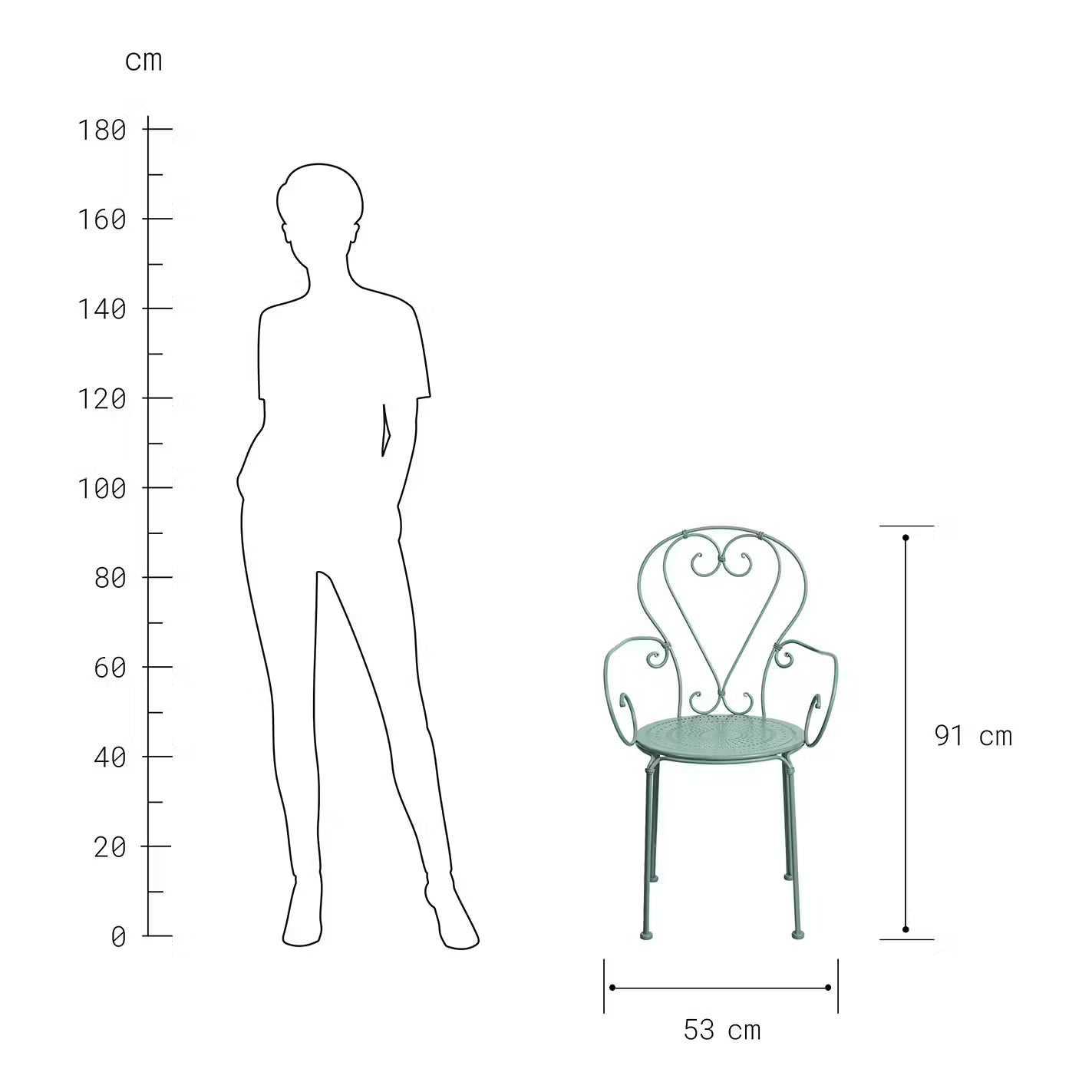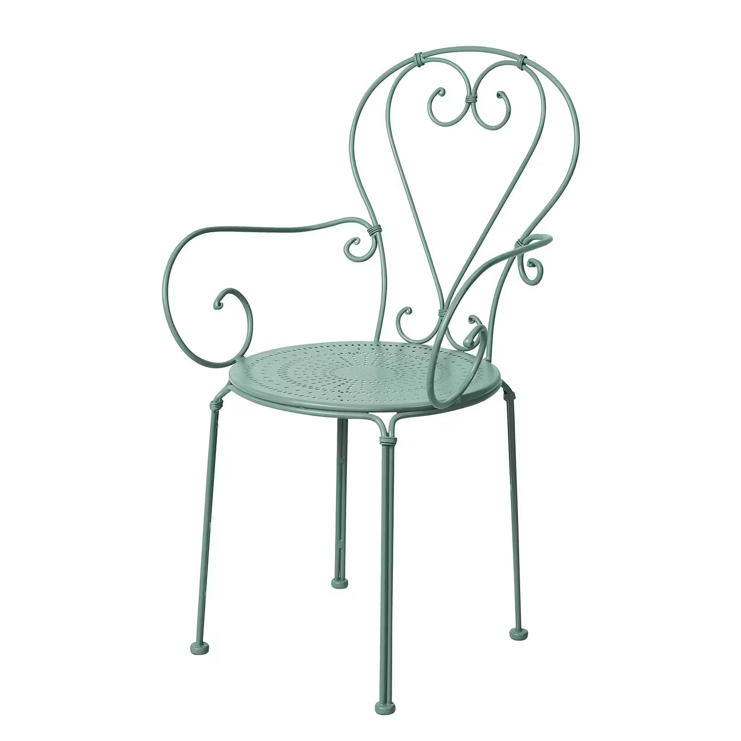 Sie nehmen Platz auf dem romantischen Century Gartenstuhl mit Armlehne aus Eisen und genießen den Tag. So ruhig und entspannt wie in den Jahrhunderten vor Handystress und Alltagshektik. Weitere Gartenmöbel - auch in anderen modernen Farben - erhältlich.