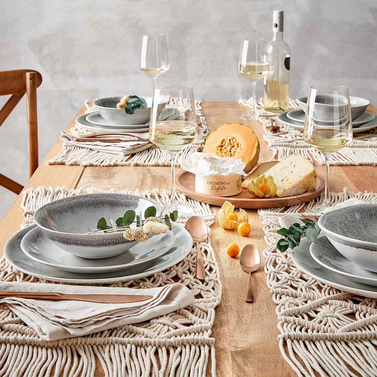 Mit unserer Geschirrserie Atlantis im angesagten Boho-Stil und organischen Formen kommt Extravaganz auf den gedeckten Tisch! Das 12-teilige Geschirr-Set aus Steinzeug ist handgefertigt in Portugal. Durch die reaktive Glasur entstehen unregelmäßige Farbverläufe, die jedes Teil der Serie zu einem echten Unikat werden lassen. Atlantis ist in verschiedenen Farben erhältlich, die Sie miteinander kombinieren können und so für Abwechslung auf Ihrem Tisch sorgen. Durch eine Iris-ähnliche Farbzentrierung passen alle Teile perfekt zusammen. Jedes Teil der Serie ist spülmaschinen- und mikrowellengeeignet.