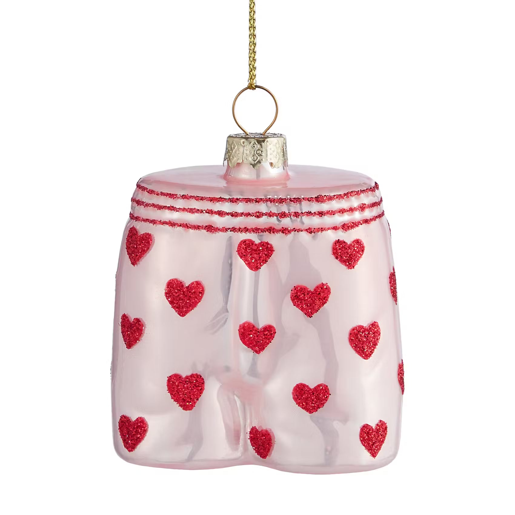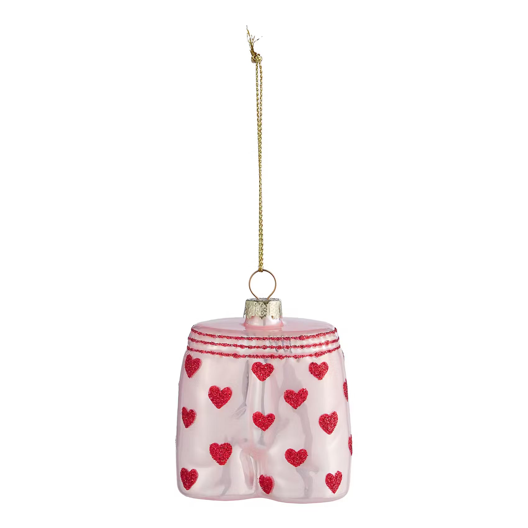 Weil originelle Deko ja auf Ihrem Wunschzettel stand, kommt von BUTLERS hier der Hang On Anhänger Shorts Herzchen aus Glas. Alle Jahre wieder präsentiert BUTLERS den schönsten Weihnachtsschmuck. Von klassisch bis modern, von besinnlich bis beschwingt. Zum Verschenken und sich selbst Verwöhnen. Für echte und künstliche Christbäume, für Tannenzweige und Ihre ganz persönlichen Dekoideen. Das wird ein Fest!