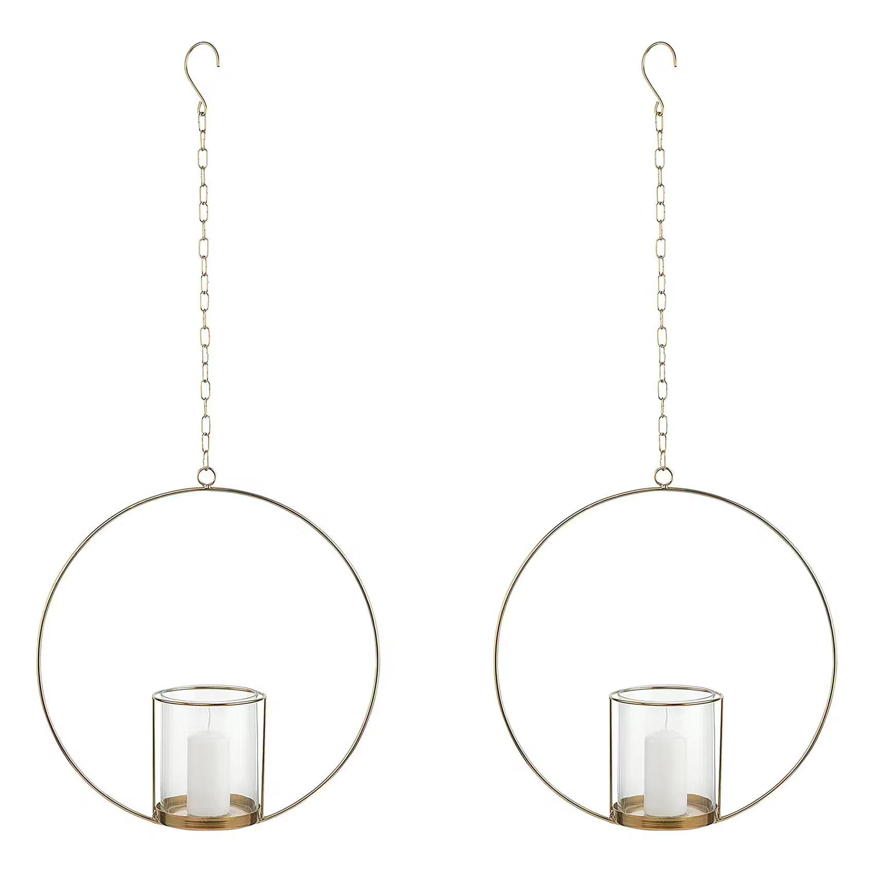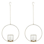 Viel Platz für Ihre kreativen Ideen bietet der Luna Hängedeko Ring mit Glaseinsatz in Gold. Sie verzieren ihn z. B. mit Ranken und anderem Grün, mit Blumengirlanden oder mit Bändern und hängen ihn dann an der Tür, an der Wand oder mitten im Raum an der Decke auf. Ein Teelicht noch dazu und fertig ist Ihre individuelle Dekoration, die als Unikat Ihr Zuhause oder auch Ihr Hochzeitsfest schmückt.