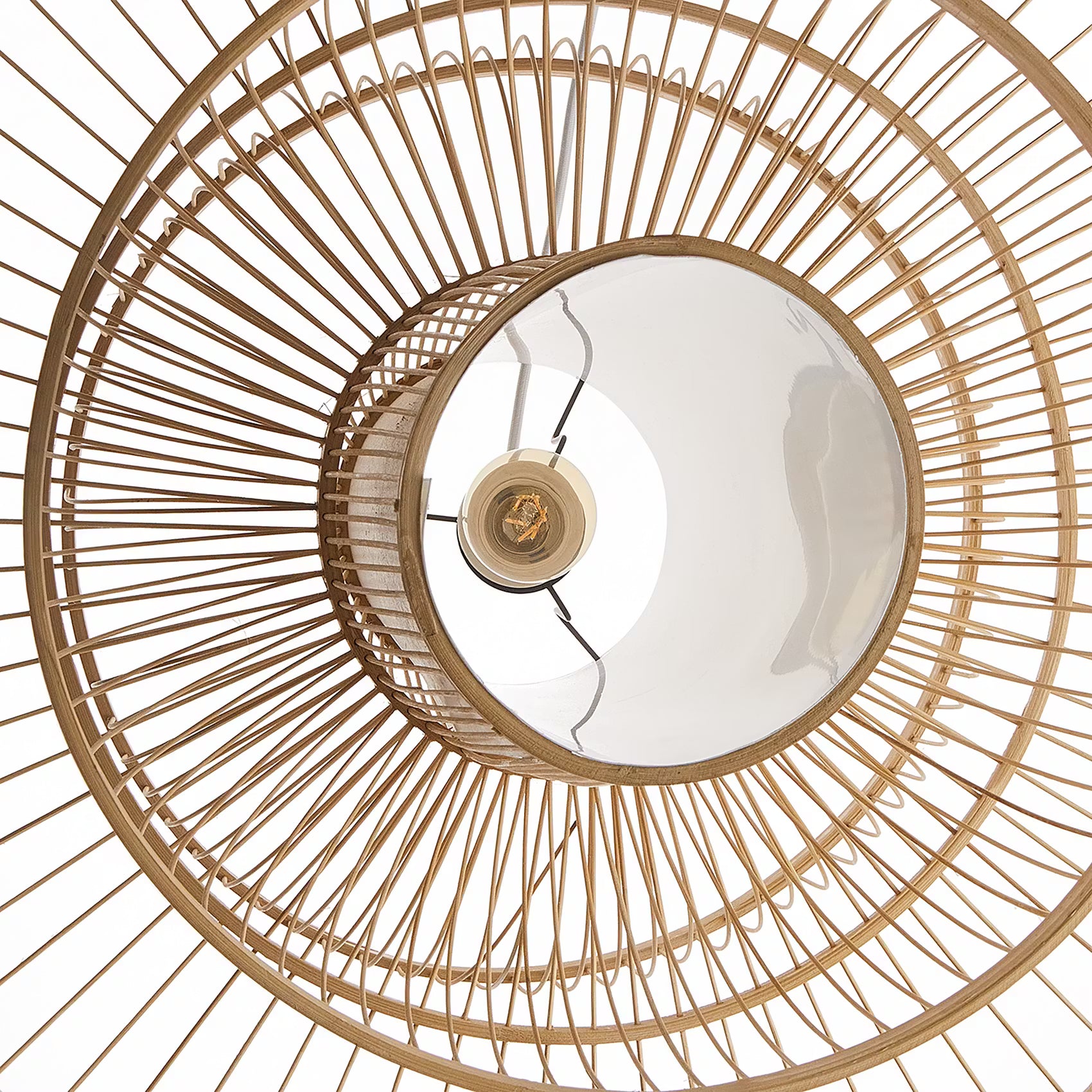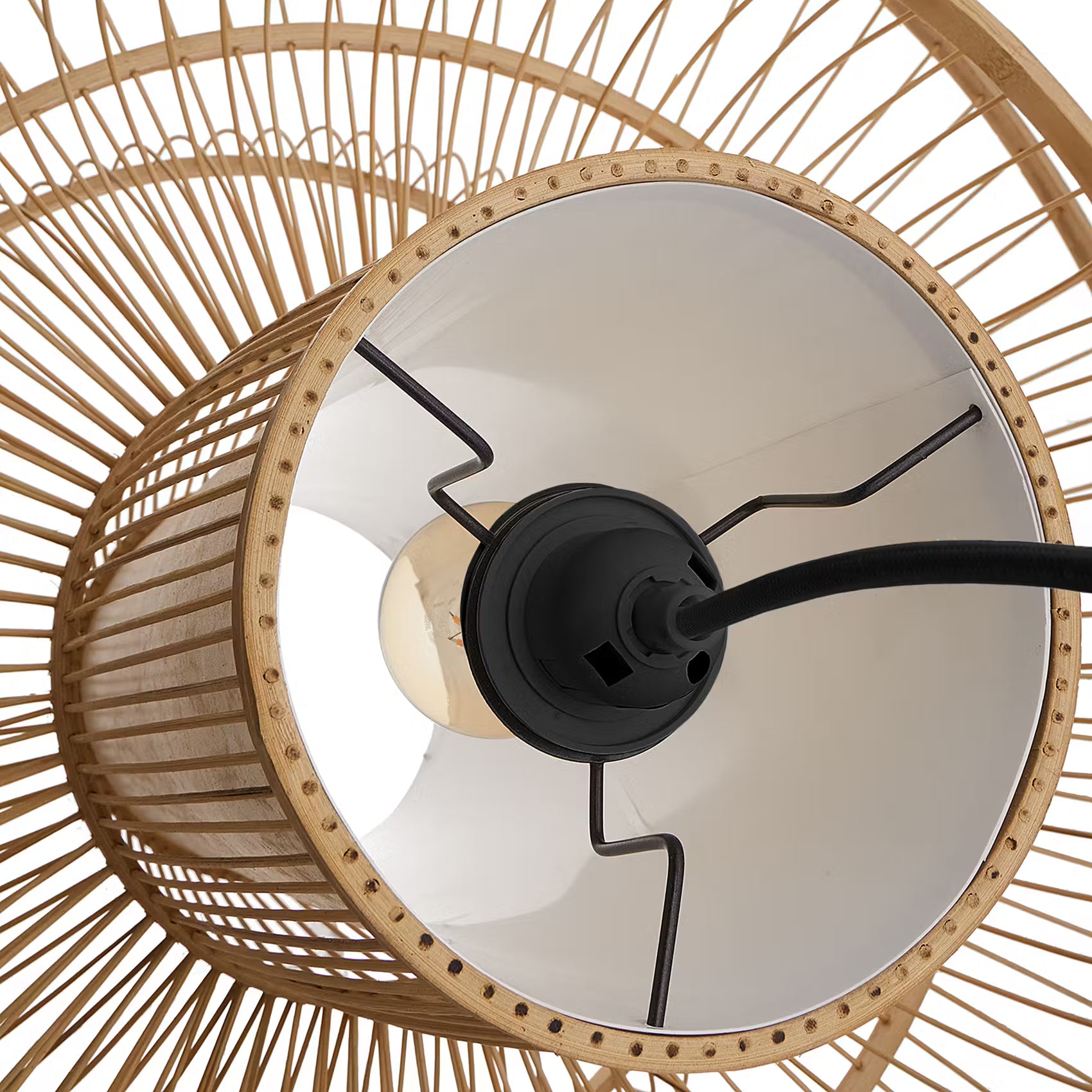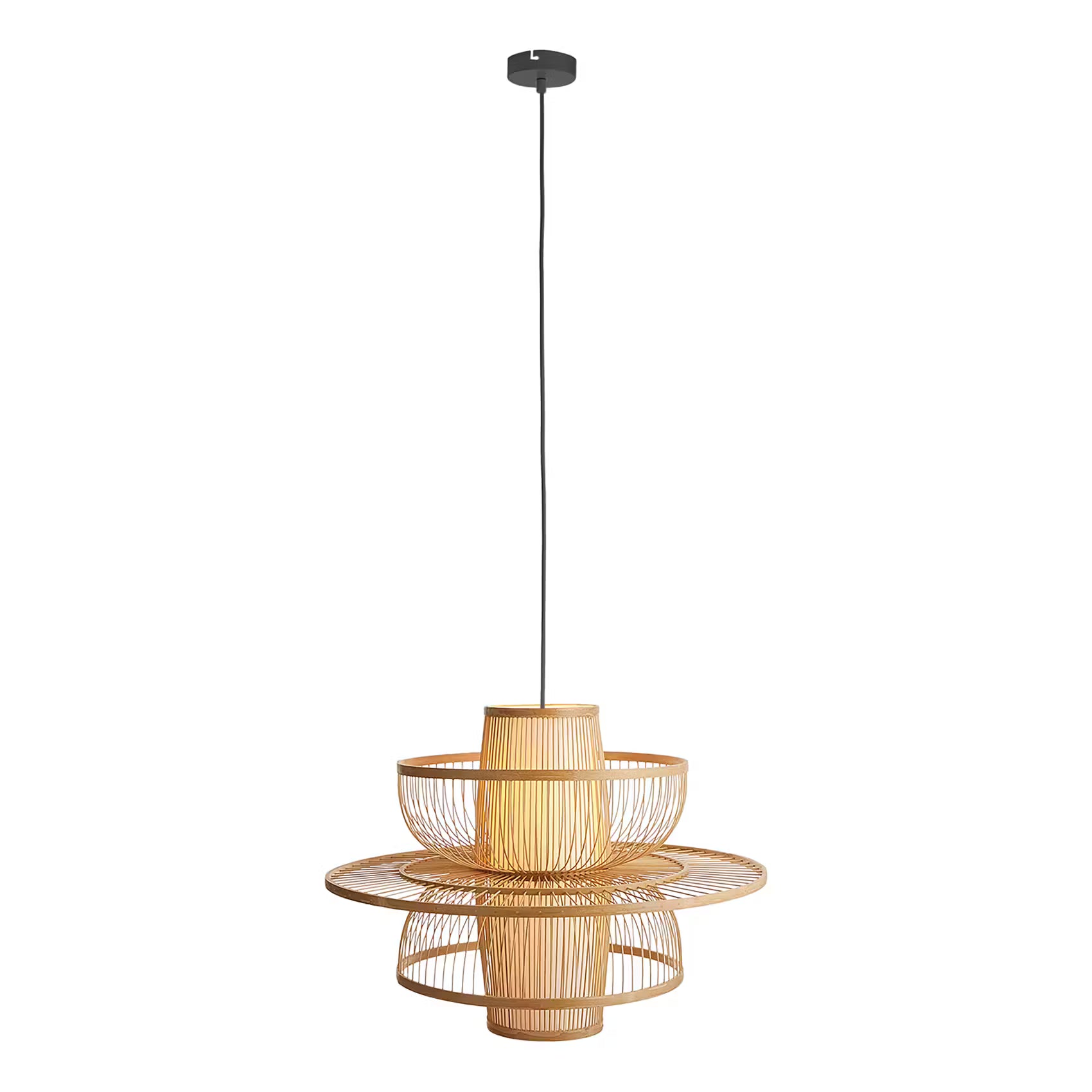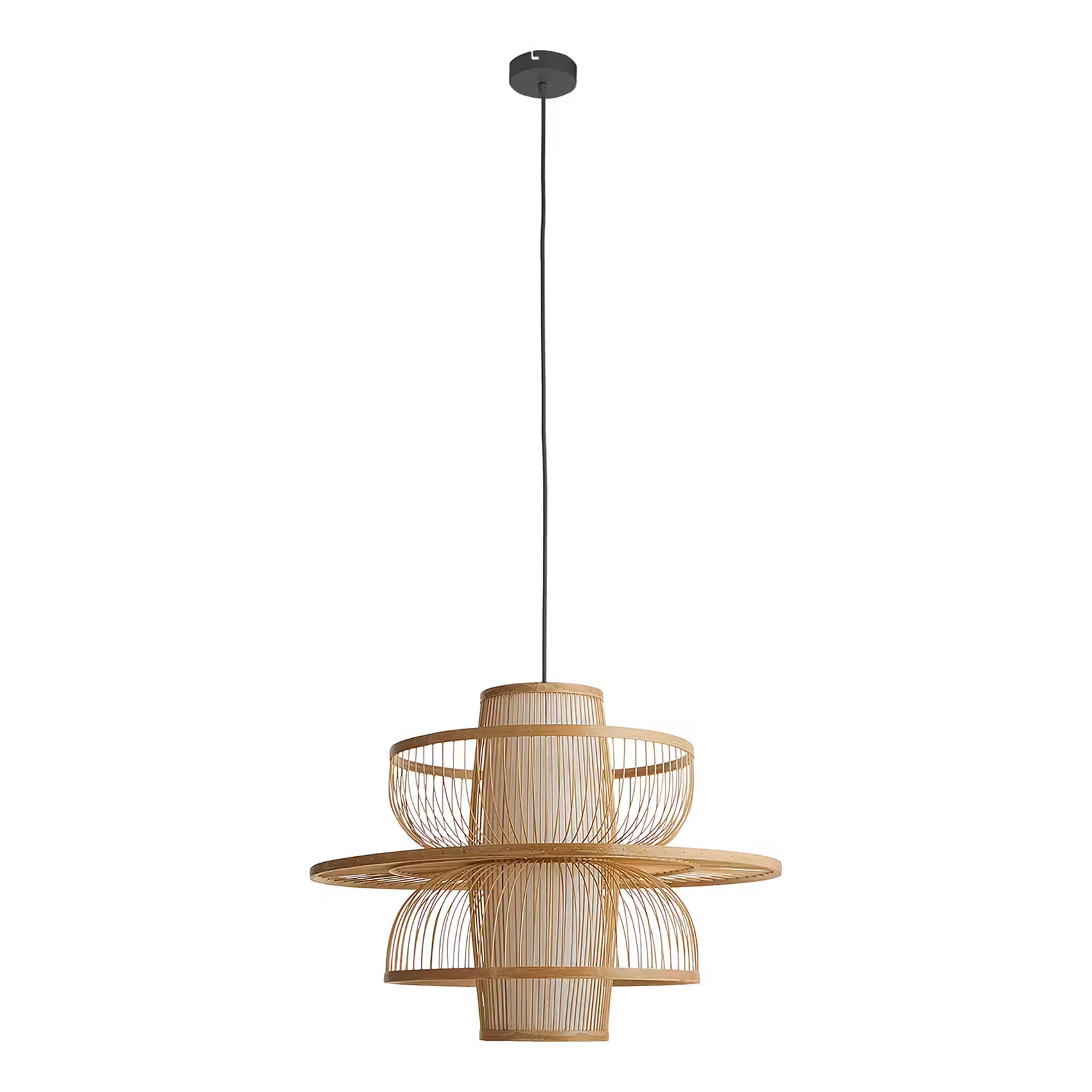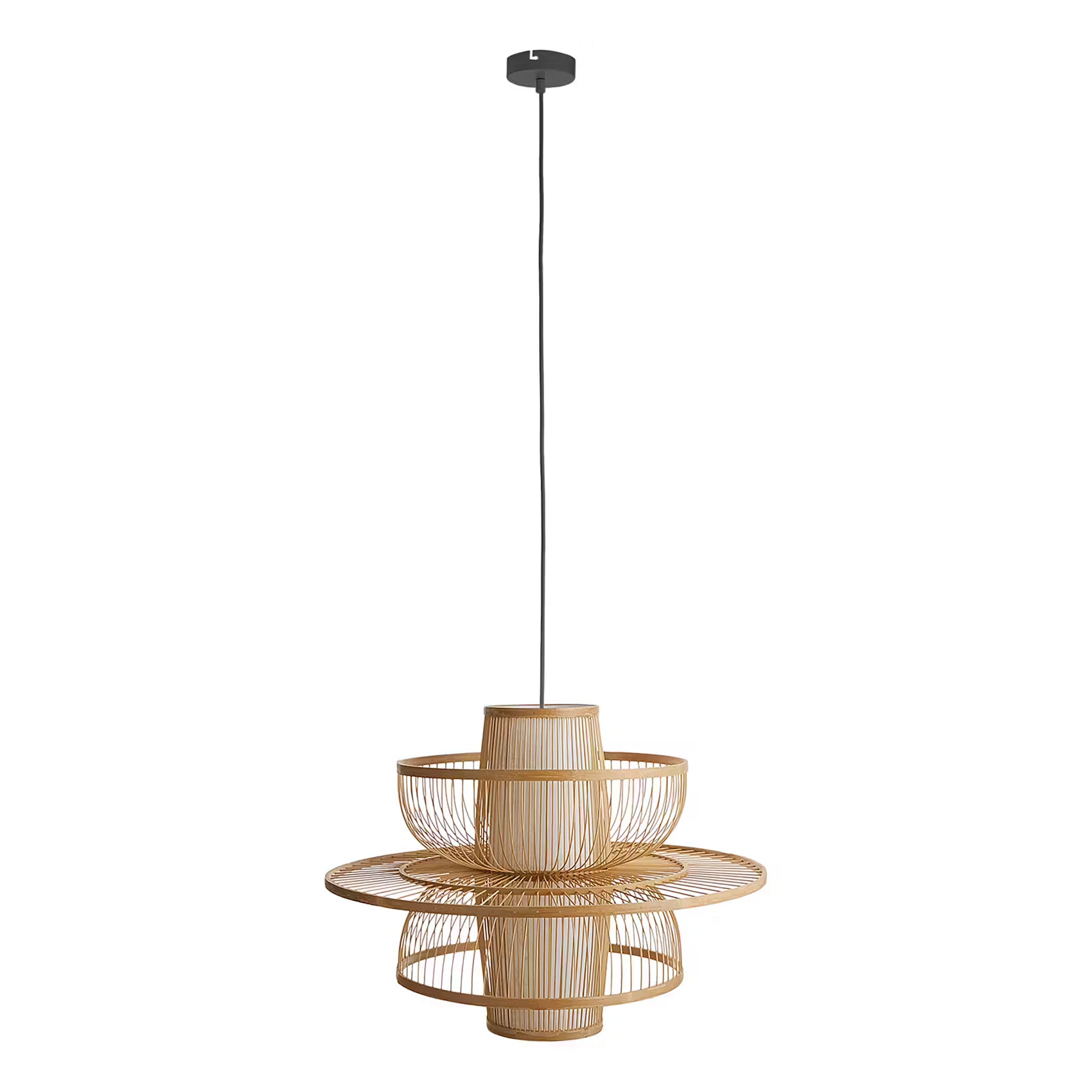 Ganz schön kunstvoll: Die Arya Hängeleuchte, gefertigt aus dem Naturmaterial Bambus, begeistert mit ihrer außergewöhnlichen Form. Hier verbinden sich modernes Design und wohnliche Natürlichkeit zu einer Hängelampe, die sich als Eyecatcher und dank ihrer Größe auch für größere Raume oder bei höheren Decken eignet.