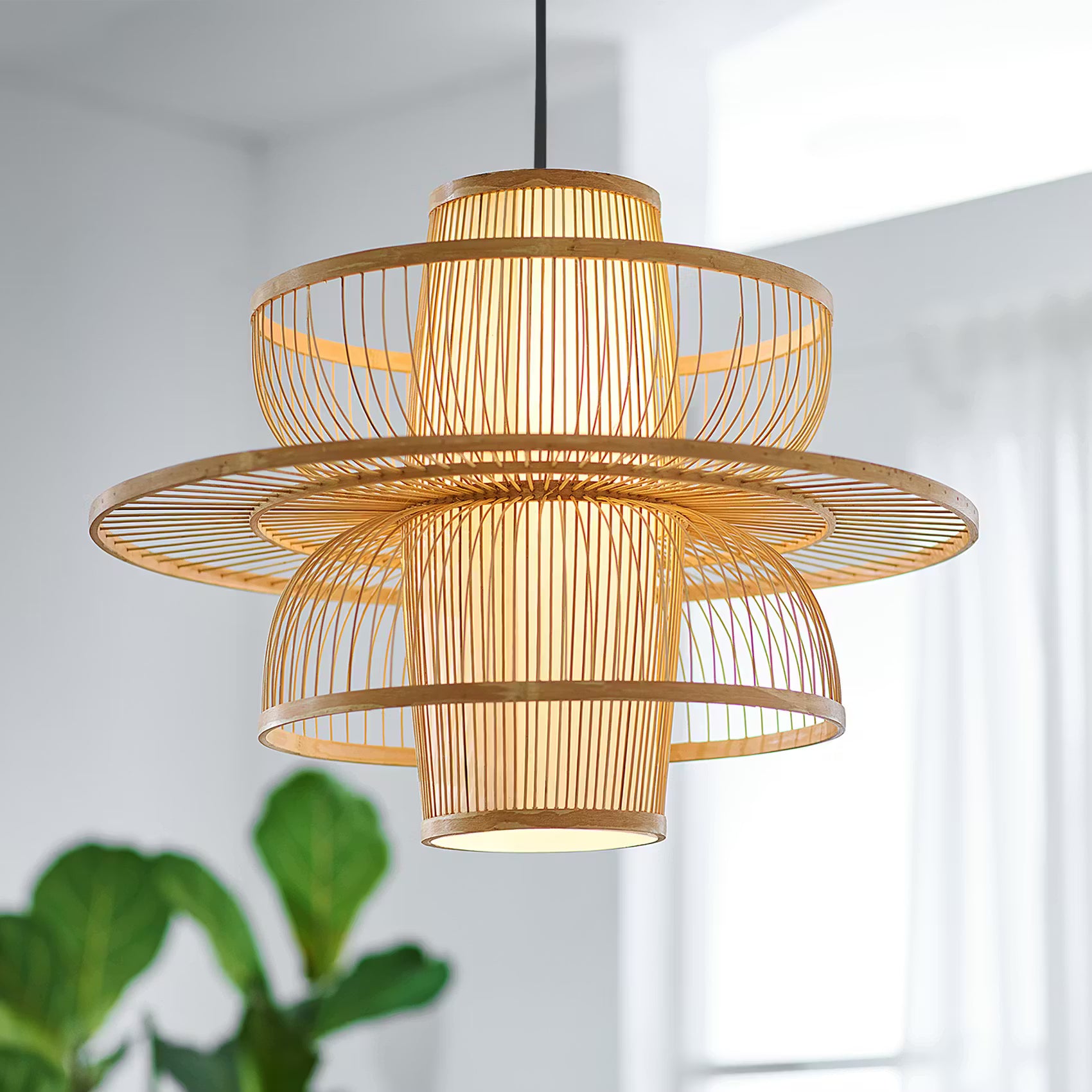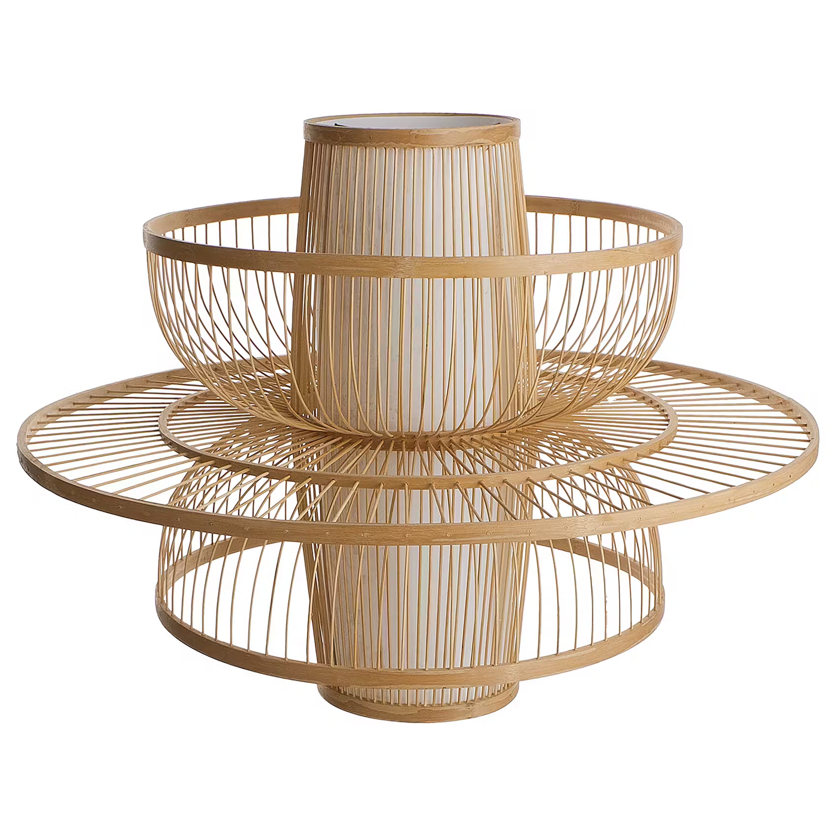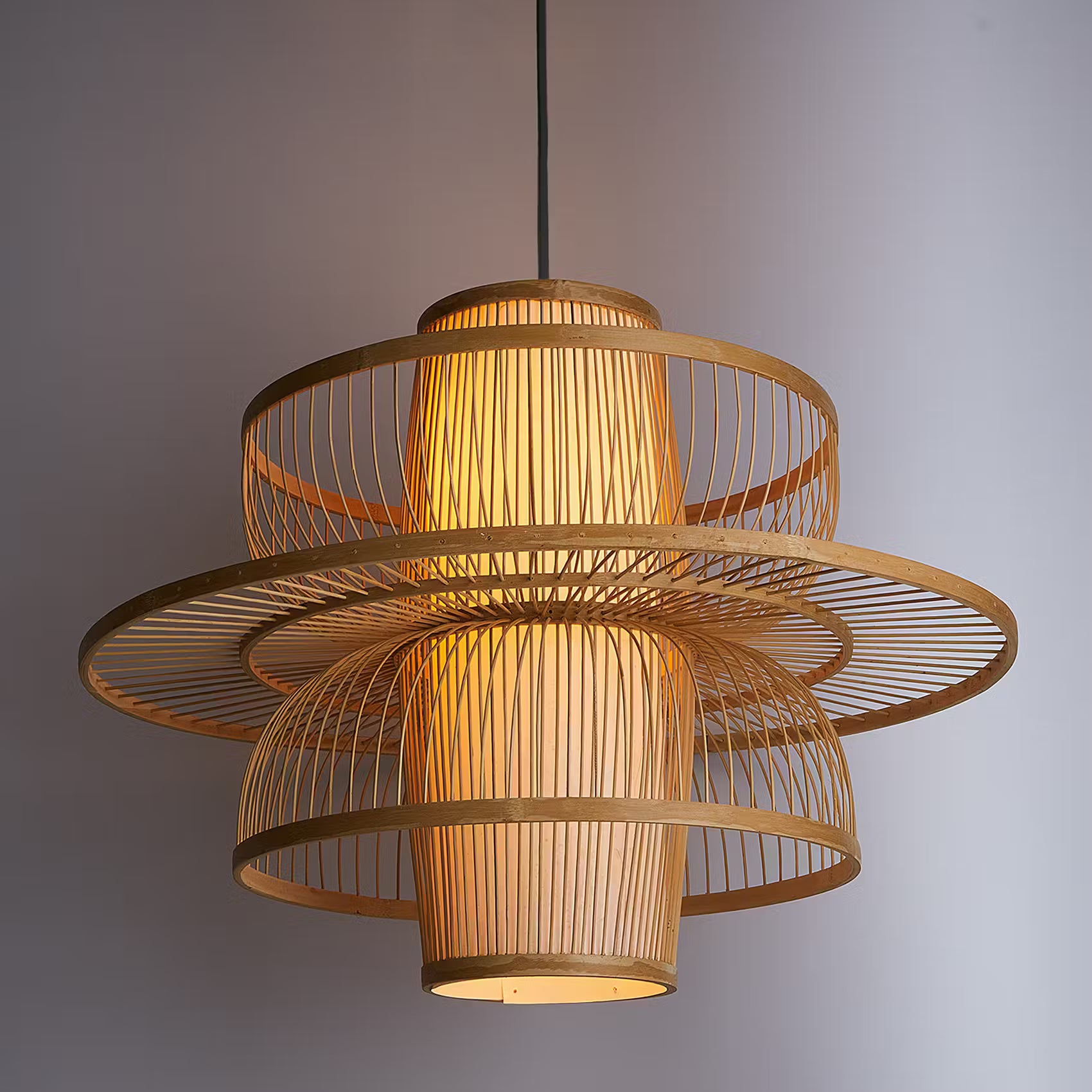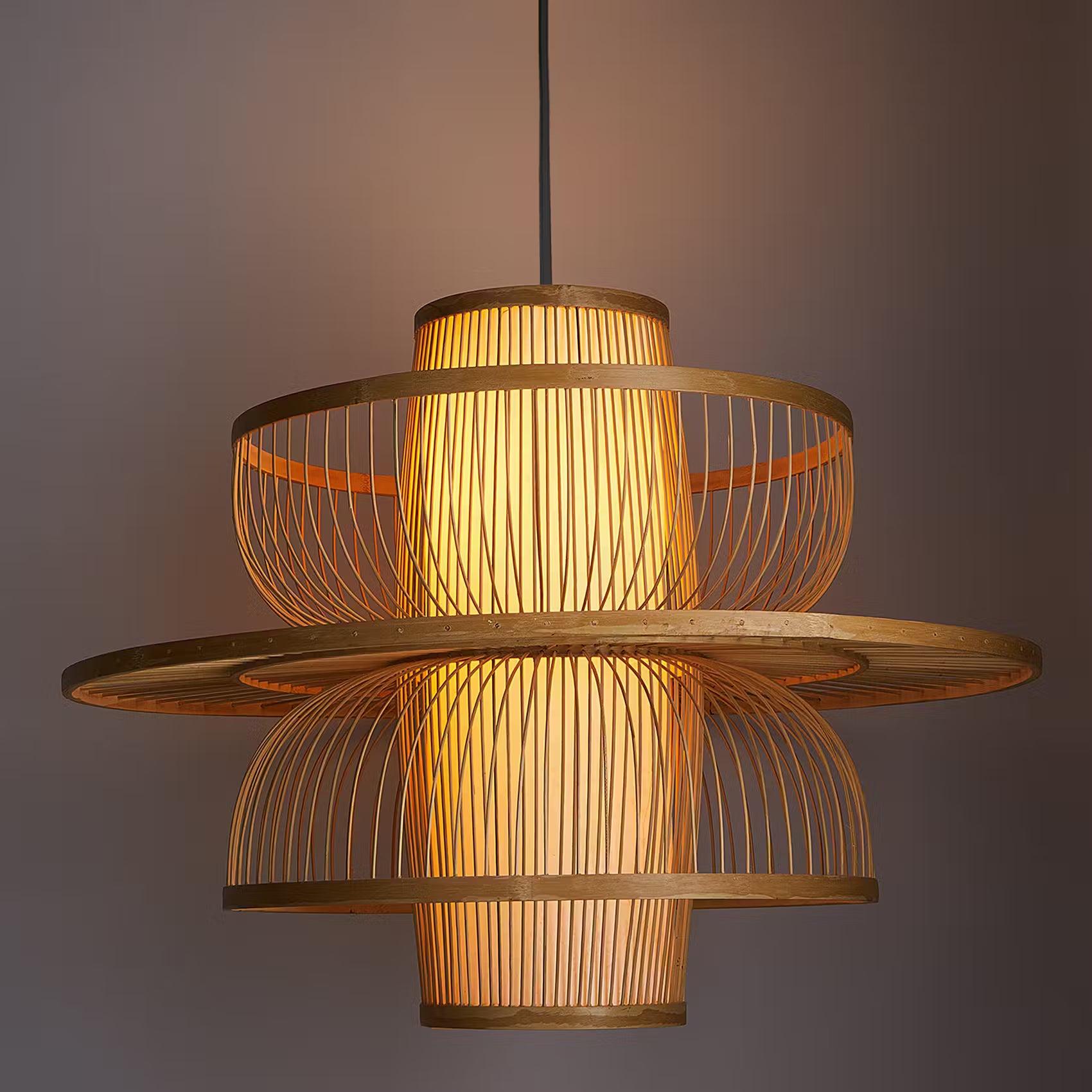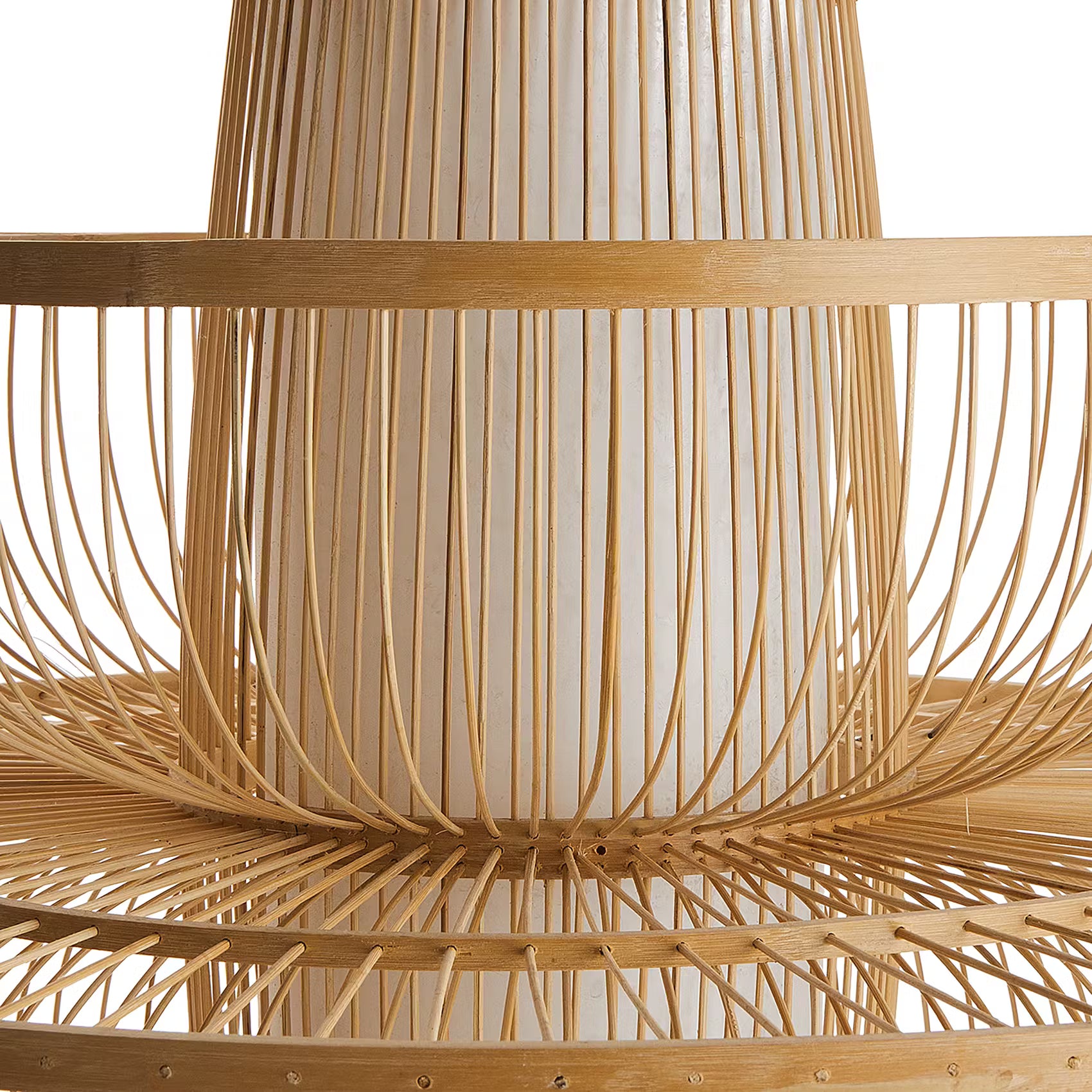 Ganz schön kunstvoll: Die Arya Hängeleuchte, gefertigt aus dem Naturmaterial Bambus, begeistert mit ihrer außergewöhnlichen Form. Hier verbinden sich modernes Design und wohnliche Natürlichkeit zu einer Hängelampe, die sich als Eyecatcher und dank ihrer Größe auch für größere Raume oder bei höheren Decken eignet.