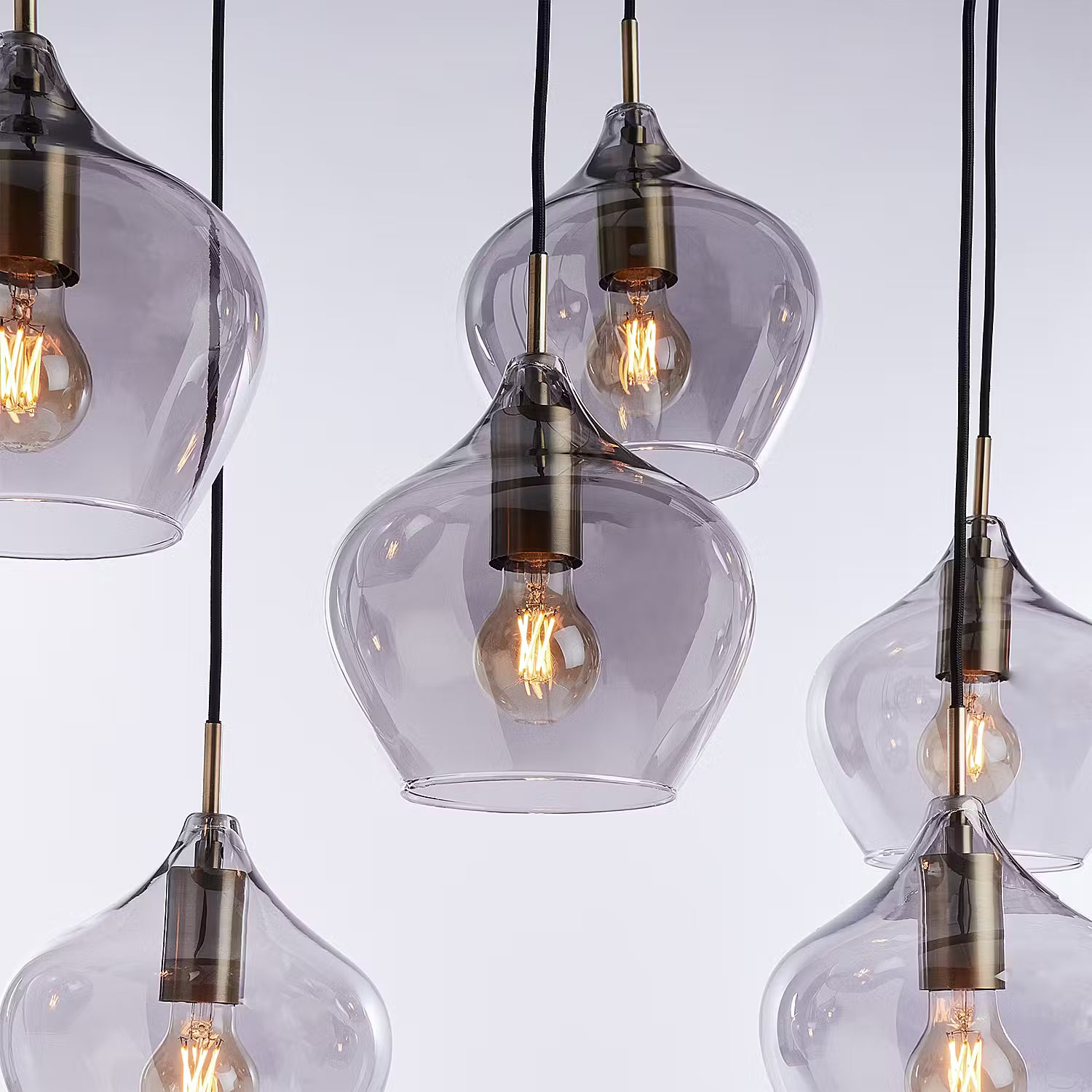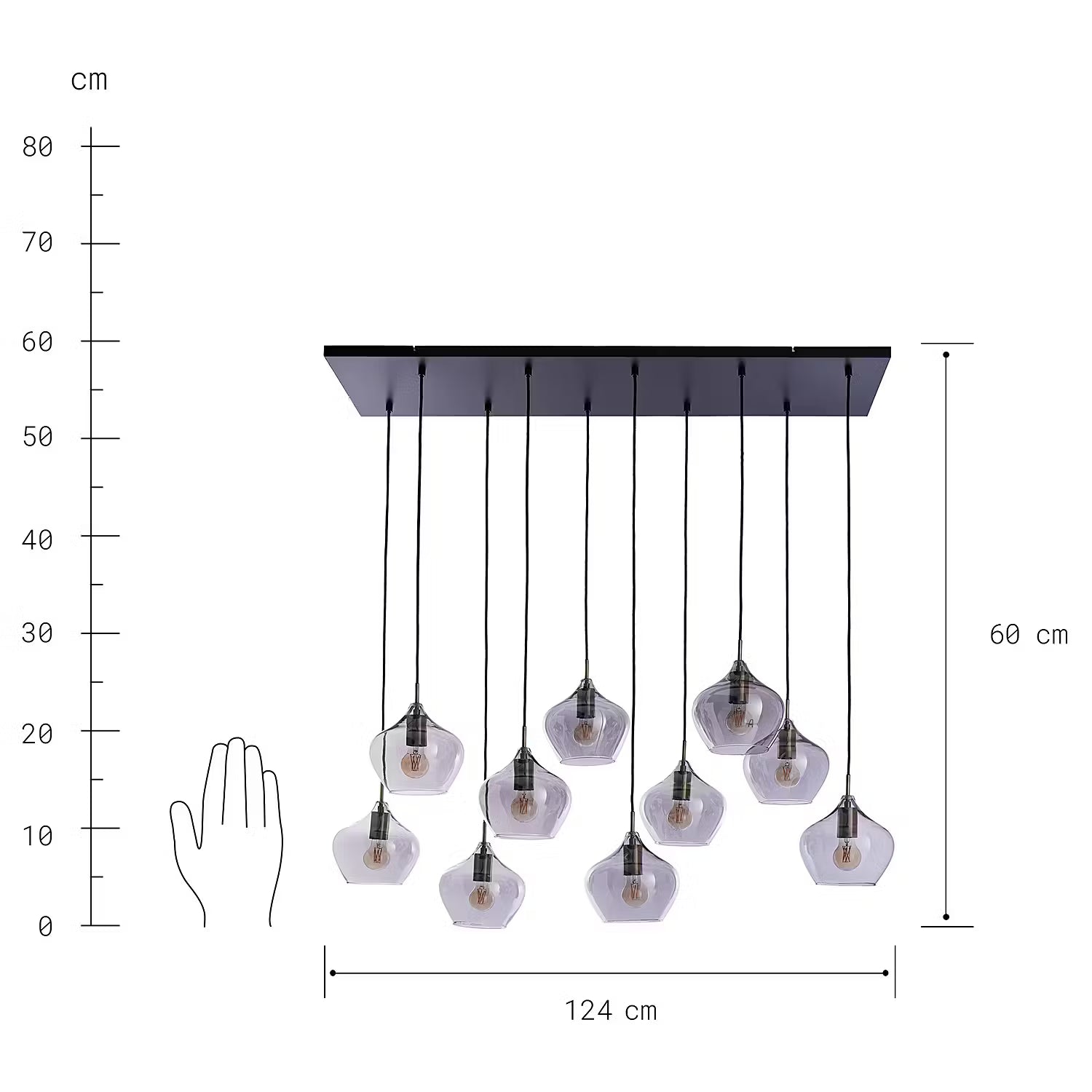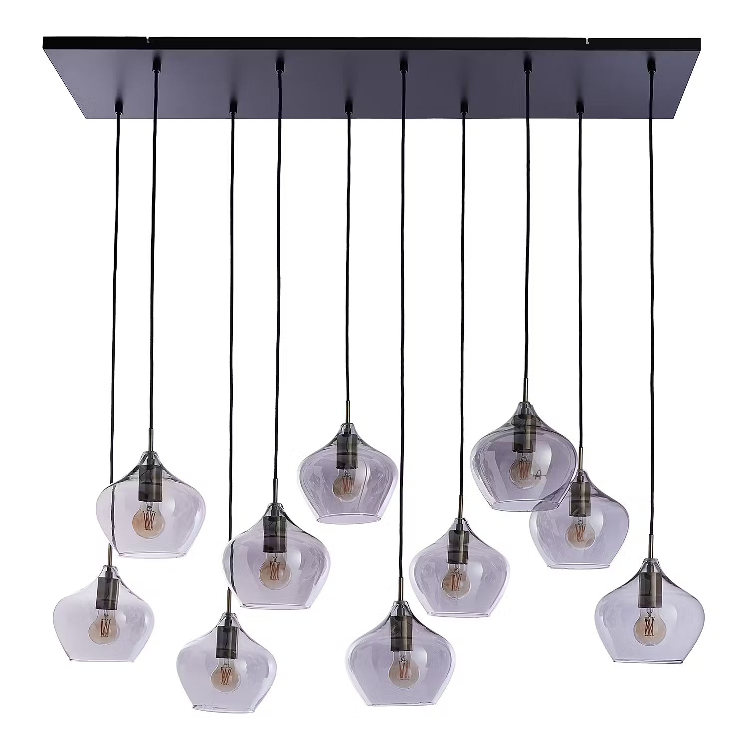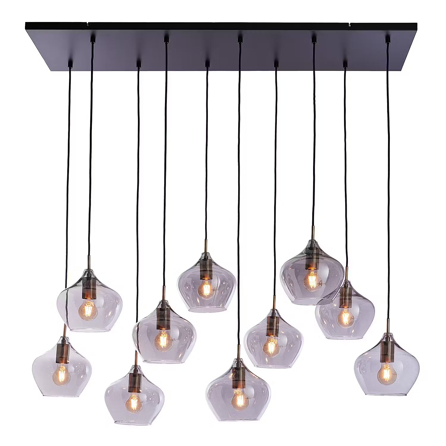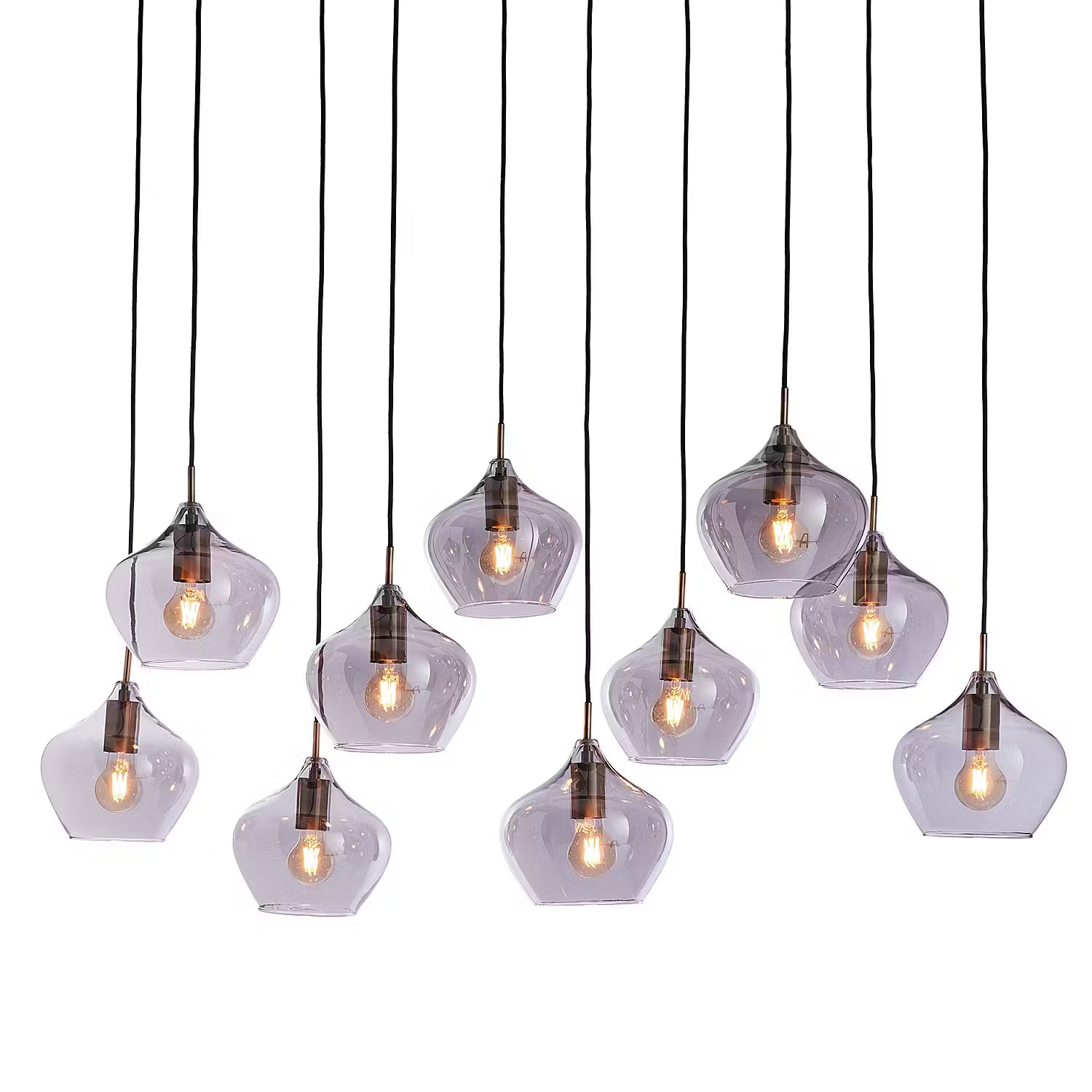 Mit einer hochwertigen Statement-Leuchte den Raum gestalten: Die moderne Sofie Hängeleuchte setzt Ihren exklusiven Geschmack formvollendet in Szene. 10 Leuchten aus kunstvoll geschwungenem Glas geben den Blick auf warm getönte Leuchtmittel frei. Dabei variiert die Höhe der einzelnen Leuchten, wodurch eine optische Leichtigkeit entsteht. Klares, zeitgemäßes Design, das mit perfekter Ästhetik fasziniert. In einer weiteren Variante erhältlich.