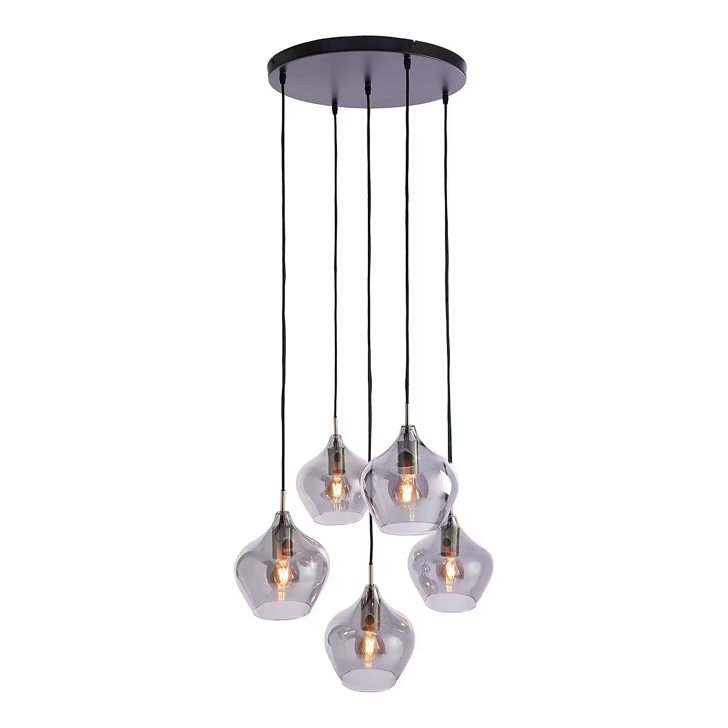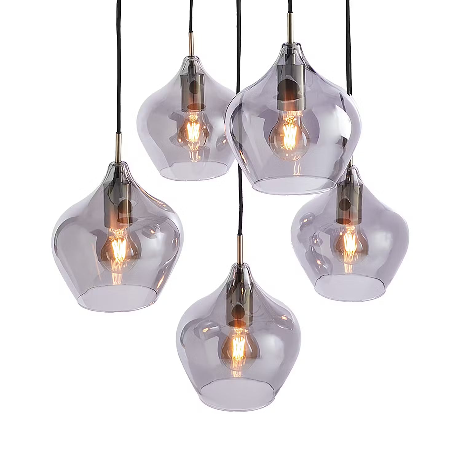 Mit einer hochwertigen Statement-Leuchte den Raum gestalten: Die moderne Sofie Hängeleuchte setzt Ihren exklusiven Geschmack formvollendet in Szene. 5 Leuchten aus kunstvoll geschwungenem Glas geben den Blick auf warm getönte Leuchtmittel frei. Dabei variiert die Höhe der einzelnen Leuchten, wodurch eine optische Leichtigkeit entsteht. Klares, zeitgemäßes Design, das mit perfekter Ästhetik fasziniert. In einer weiteren Variante erhältlich.