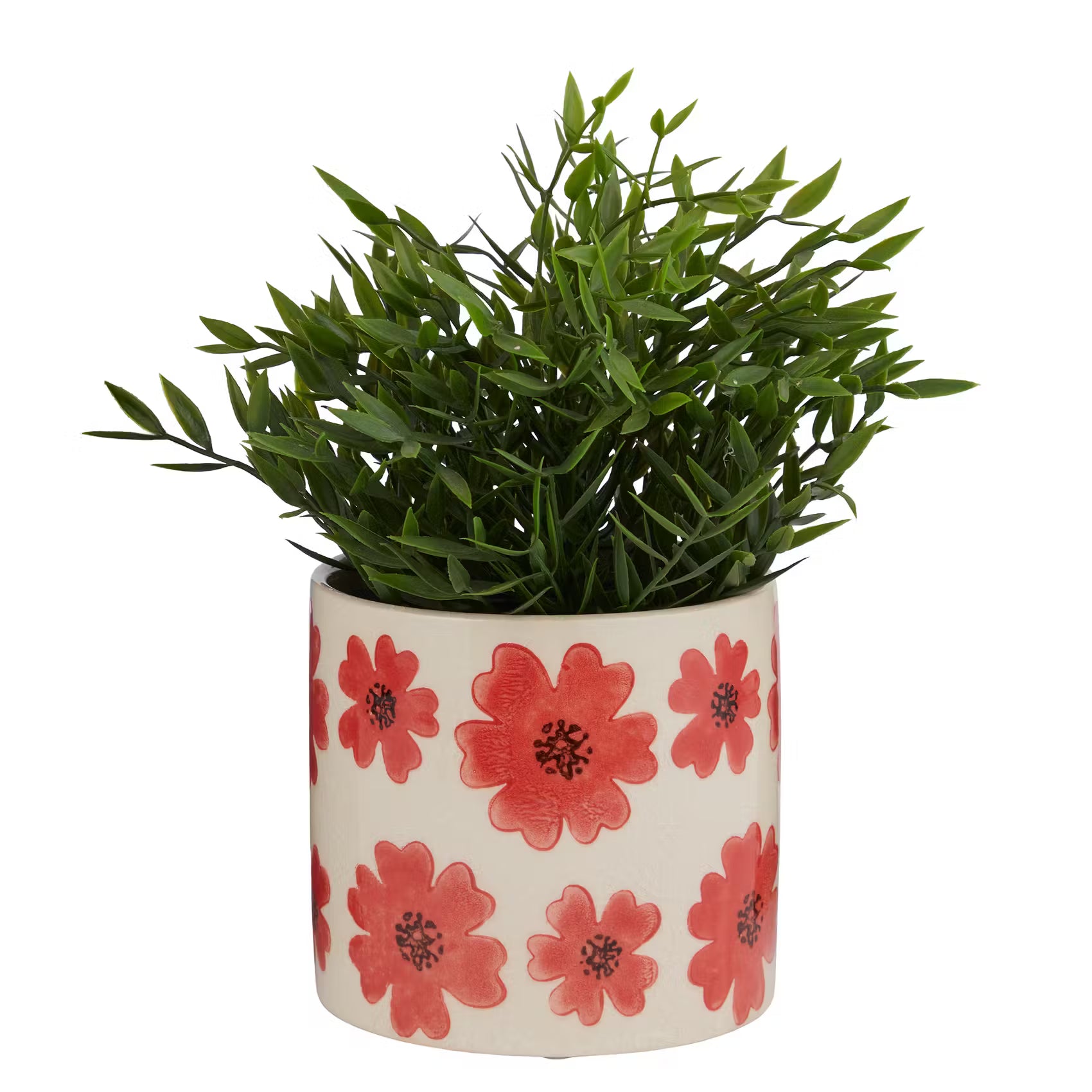Rote Blumen auf cremefarbenem Grund: In dem hübschen Hearts & Flower Blumenübertop auf Steingut werden deine Topfpflanzen bestimmt aufblühen. Und dir als Dekofan zaubert der Blumentopf doch auch ein Lächeln ins Gesicht.