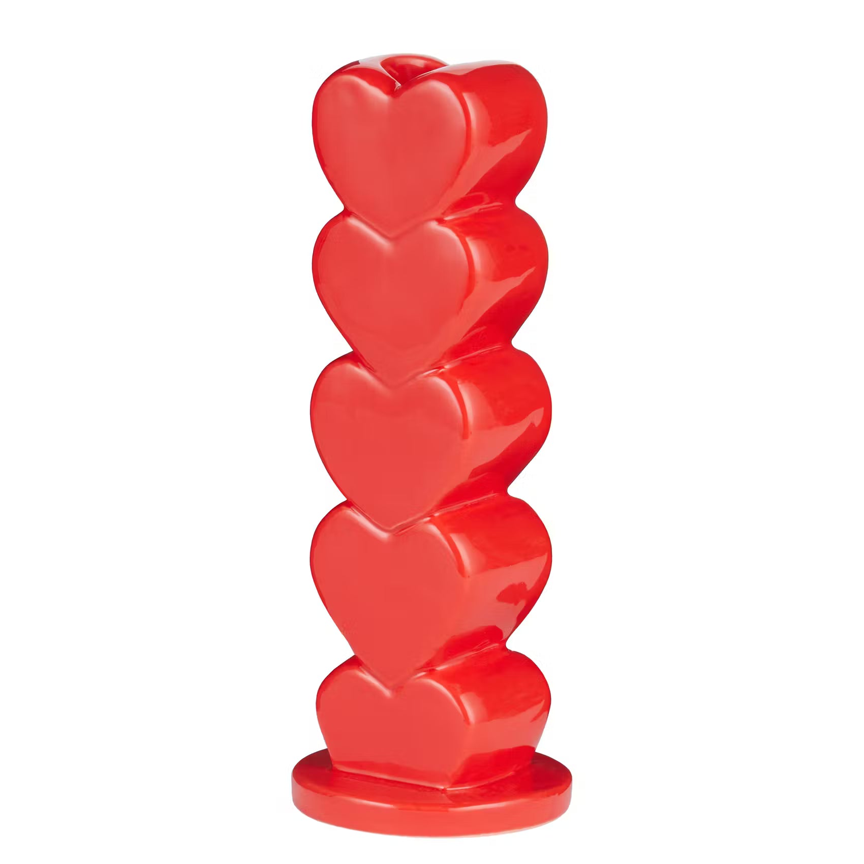 Herz auf Herz: Bei romantischen Anlässen und Abenden zu Zweit lässt der Hearts Kerzenhalter aus Dolomit die Herzen höher schlagen. Sein Farbe ist Rot wie die Liebe, und gerade in Verbindung mit funkelndem Kerzenschein sorgt dieser Kerzenhalter mit Herzen für eine richtig verliebte Stimmung.