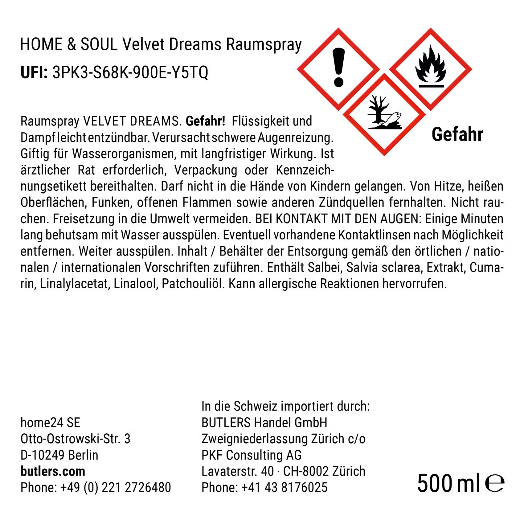 Zum Aufatmen: Der Home & Soul Raumduft Velvet Dreams verbindet die beruhigende Wirkung von Lavendel mit erfrischenden Noten grüner Minze und würzigen Komponenten. Das schenkt Klarheit und Harmonie für die Sinne. In einer weiteren Größe erhältlich. Verschiedene Dufterlebnisse hat Butlers für Sie in Raumdüften der Home & Soul Serie eingefangen. In der französischen Parfümstadt Grasse aufwändig komponiert und in Deutschland sorgfältig hergestellt, erfüllen die Flakons Ihr Zuhause mit einem sinnlichen Hauch - von aromatisch frisch bis blumig, von belebend-würzig bis betörend.