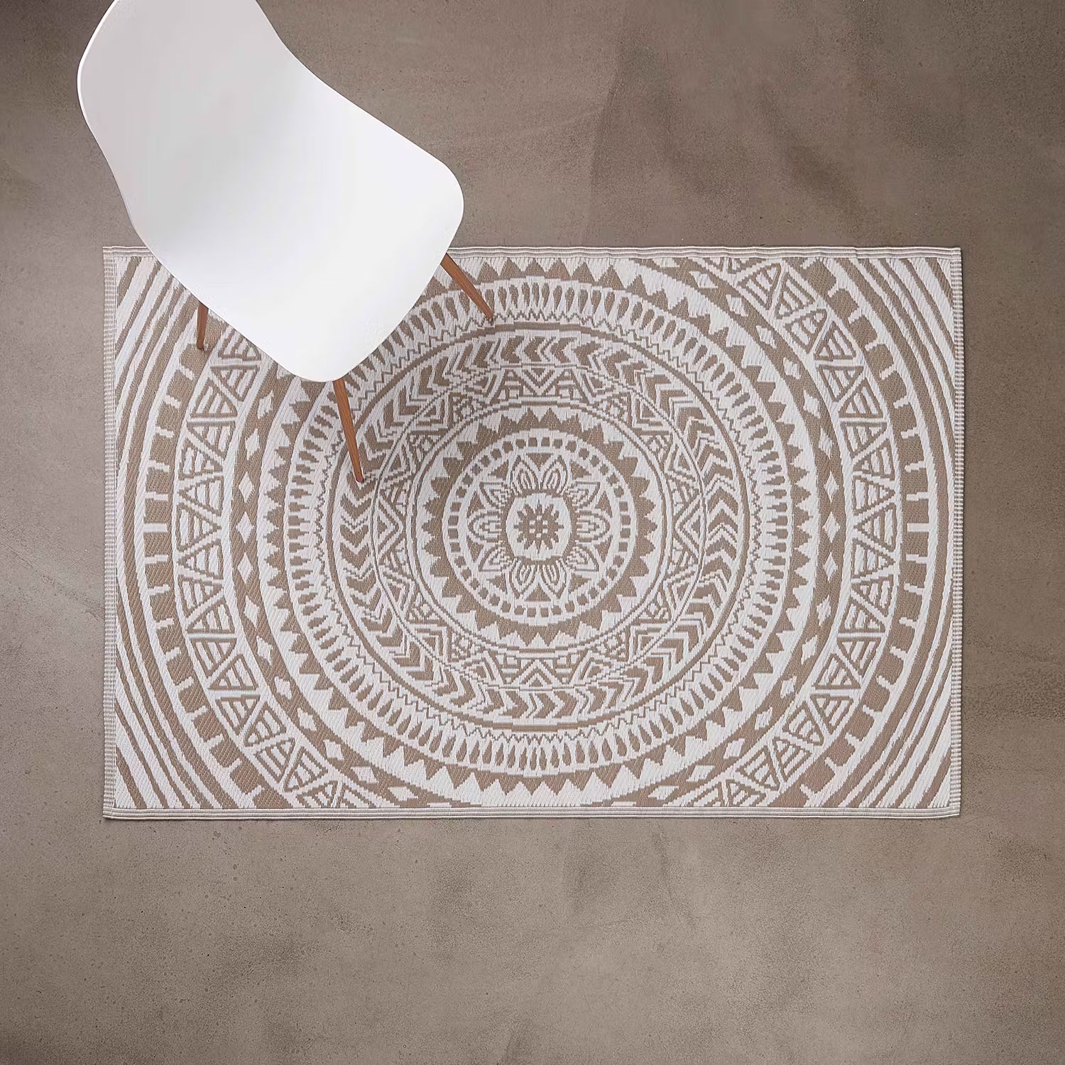 Weil Sie auf wohnlich und zugleich pflegeleicht stehen, legen Sie sich den modernen Colour Clash Outdoorteppich mit beige-weißem Circle-Muster und Bastteppich-Struktur zu Füßen. Und das nicht nur auf Ihrem Balkon oder Ihrer Terrasse, sondern gerne auch indoor im Wohnbereich. So läuft es sich drinnen wie draußen spürbar angenehm. Aus robustem Kunststoffgewebe, UV-beständig.