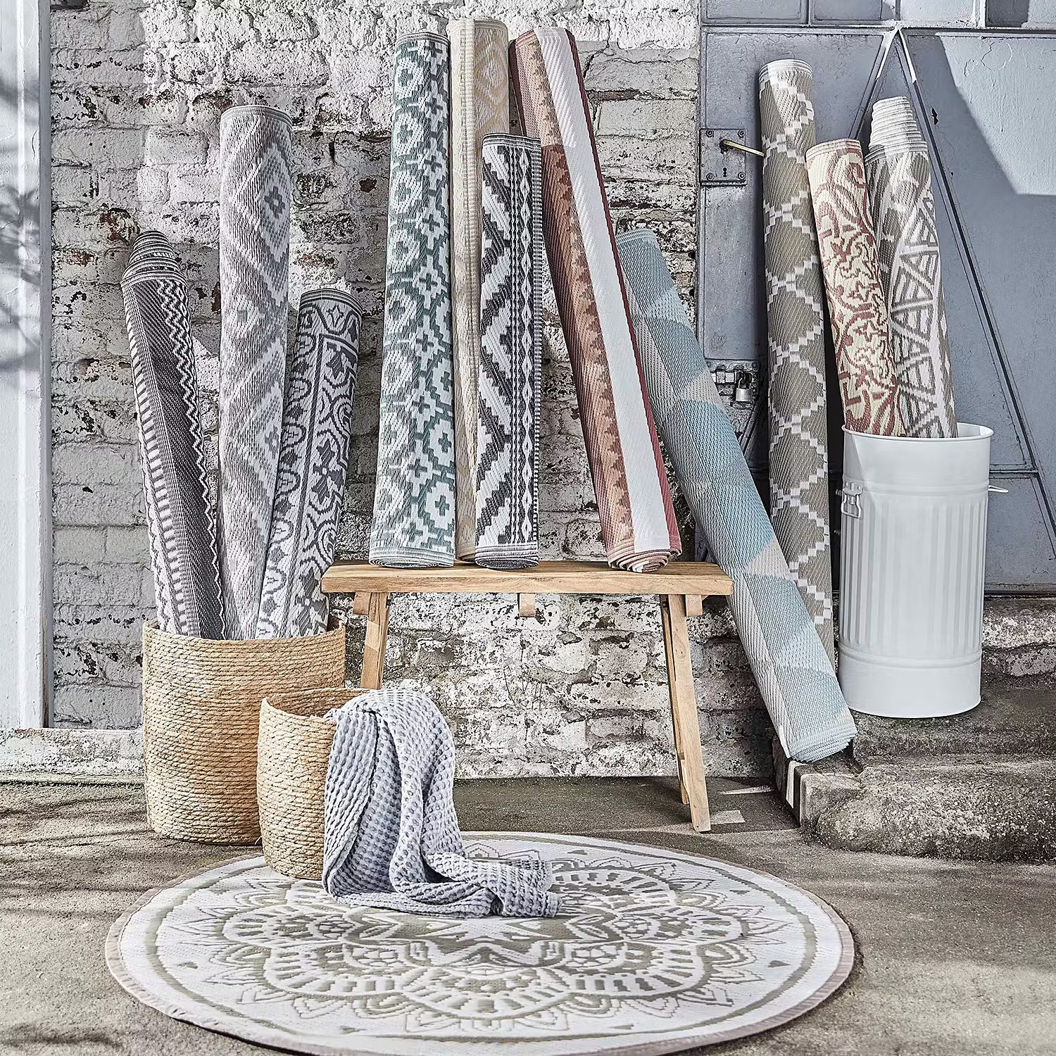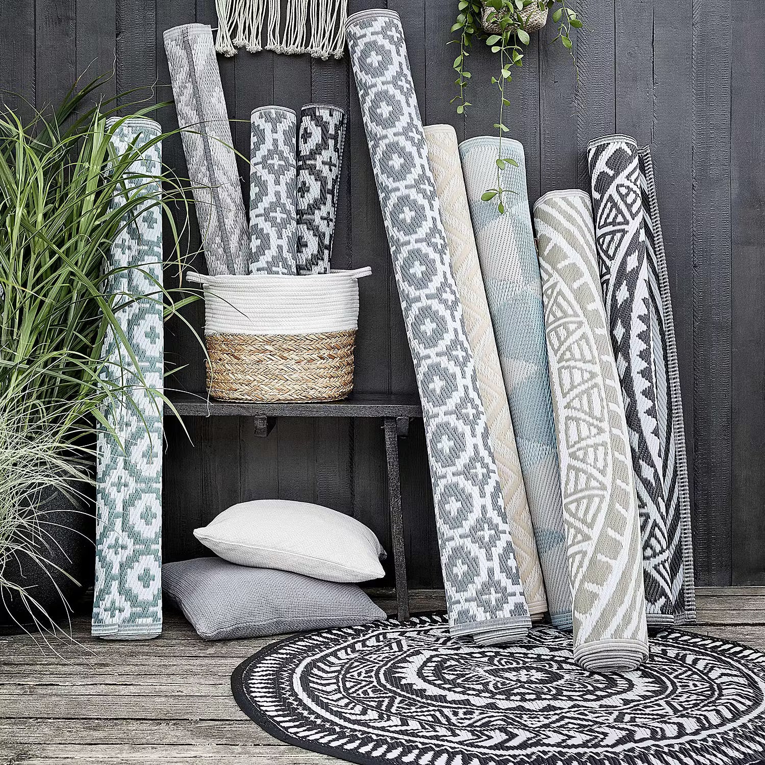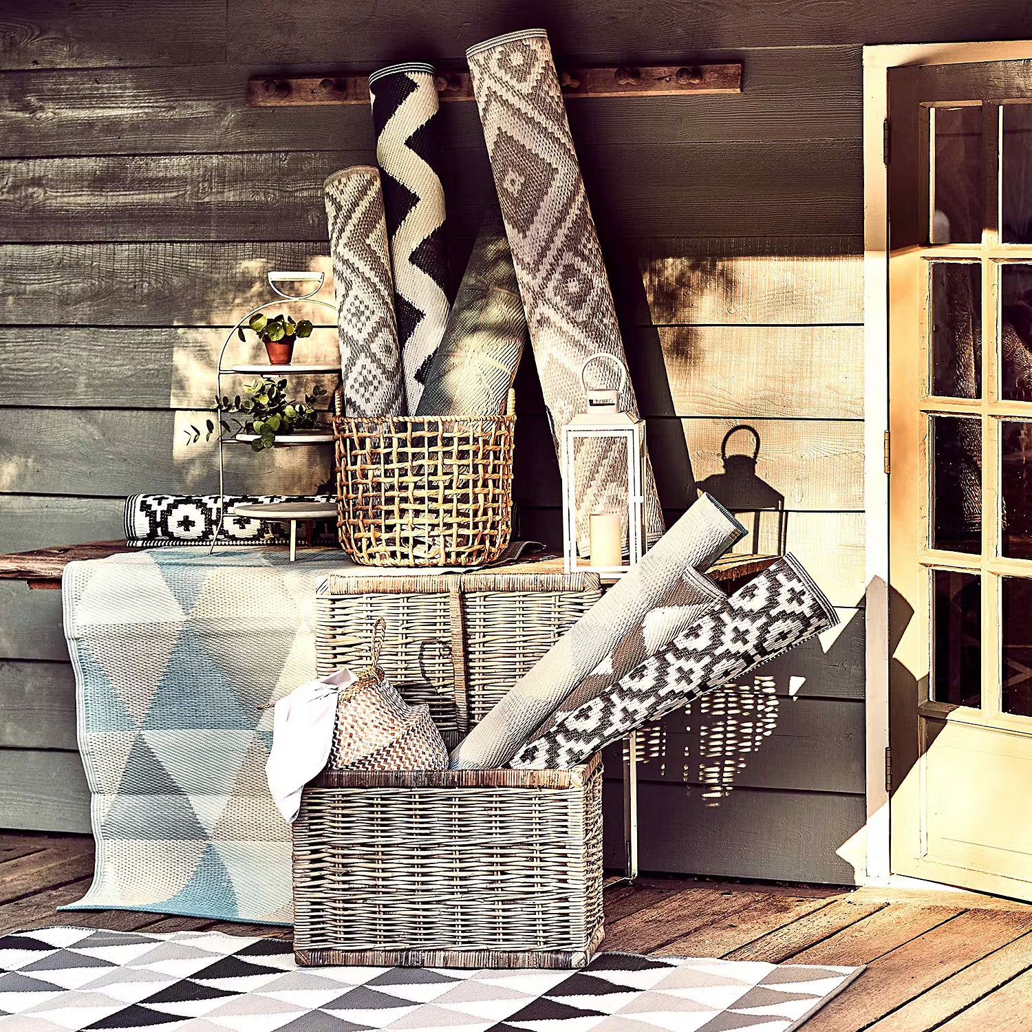 Weil Sie auf wohnlich und zugleich pflegeleicht stehen, legen Sie sich den modernen Colour Clash Outdoorteppich mit grauem Ethno-Muster und Bastteppich-Struktur zu Füßen. Und das nicht nur auf Ihrem Balkon oder Ihrer Terrasse, sondern gerne auch indoor im Wohnbereich. So läuft es sich drinnen wie draußen spürbar angenehm. Aus robustem Kunststoffgewebe, UV-beständig.