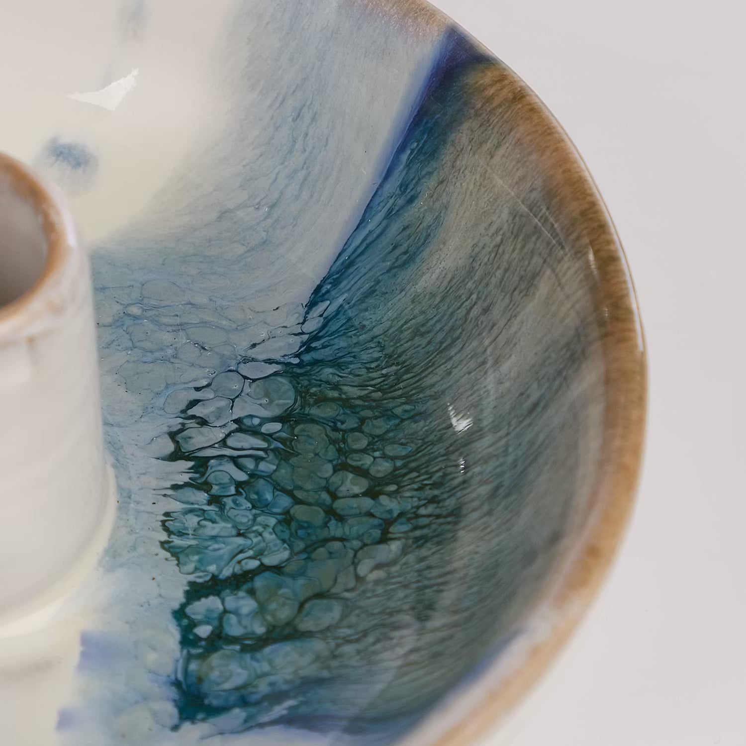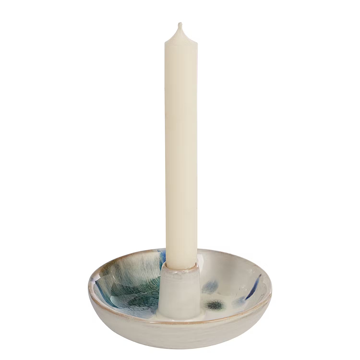 Wie Wasserfarben laufen die Glasuren beim Aquarelle Keramik Kerzenhalter ineinander und verbinden sich zu faszinierenden Effekten. Die Form des schicken Kerzenhalters aus Steingut hingegen ist klassisch und einfach gehalten, damit nichts vom Farbspiel ablenkt. Ein ausgefallenes Wohnaccessoires, das u.a. mit Skandi-Design und moderner Natürlichkeit harmoniert.