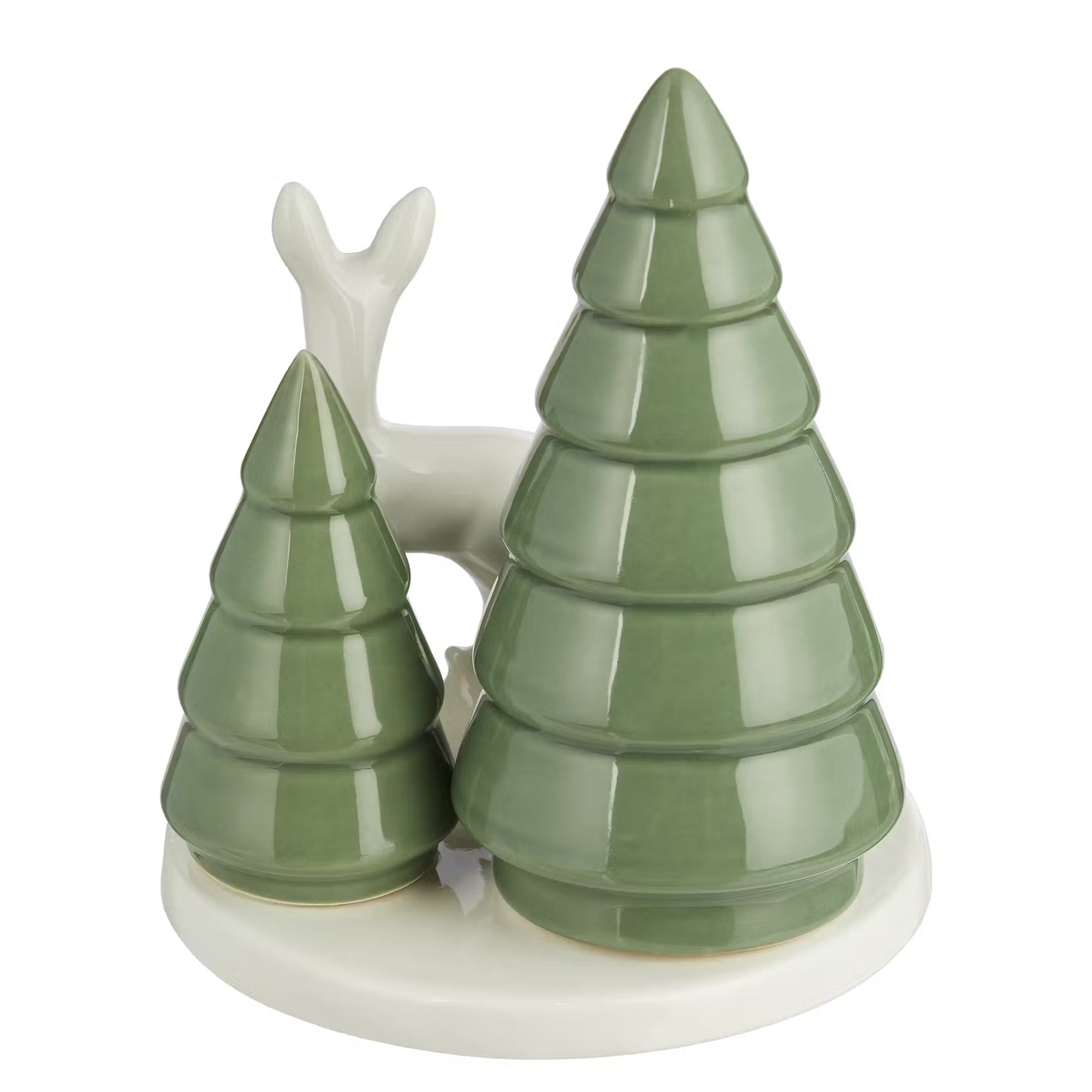 Der originelle Sylvan Spirit Kerzenhalter aus Porzellan bringt nicht nur ein dekoratives Reh und zwei stilisierte Bäume mit, sondern bietet auch Platz für eine Kerze. So entsteht eine kleine, moderne Figurengruppe mit stimmungsvollem Lichtakzent – ideal für eine dezente Winter- oder Naturdeko.