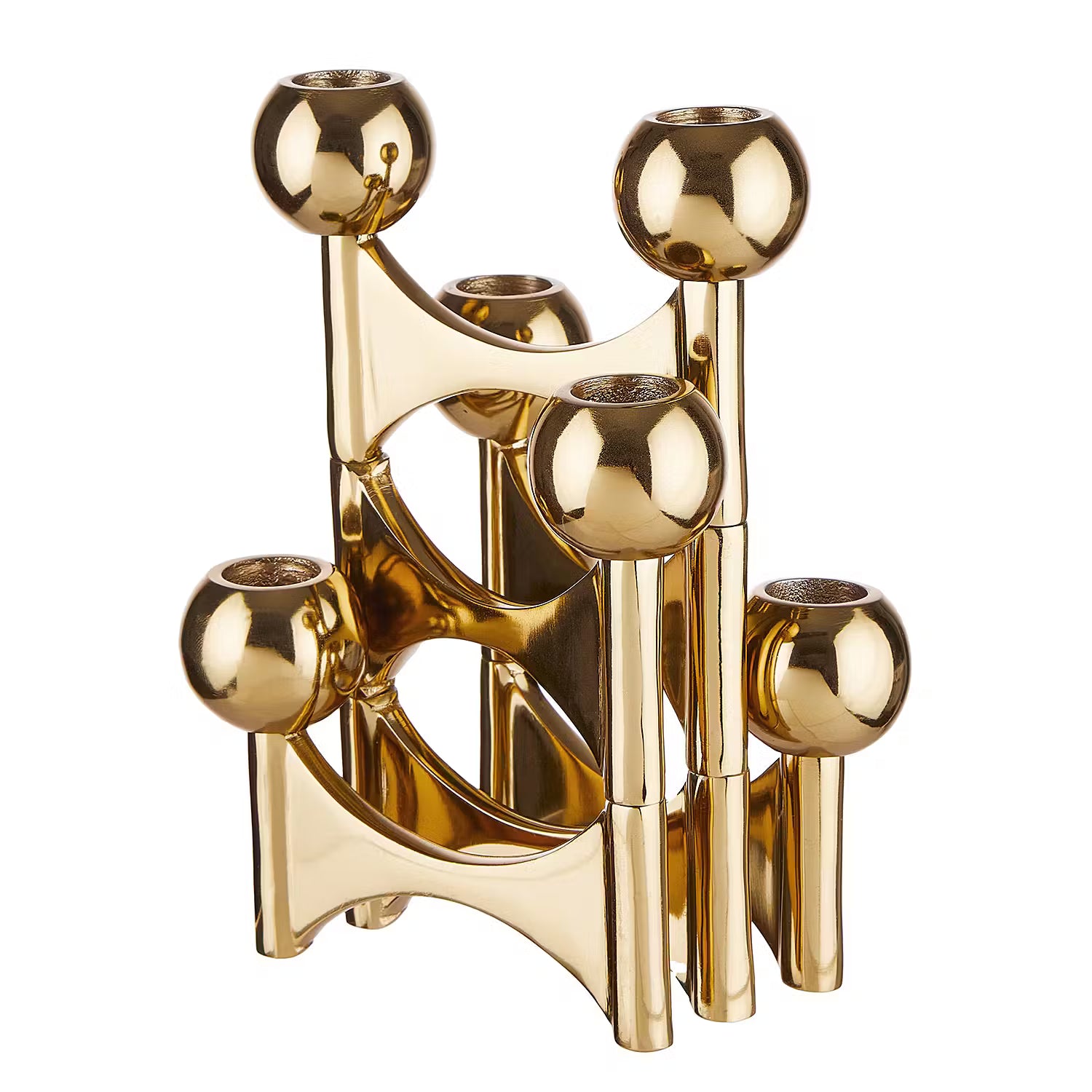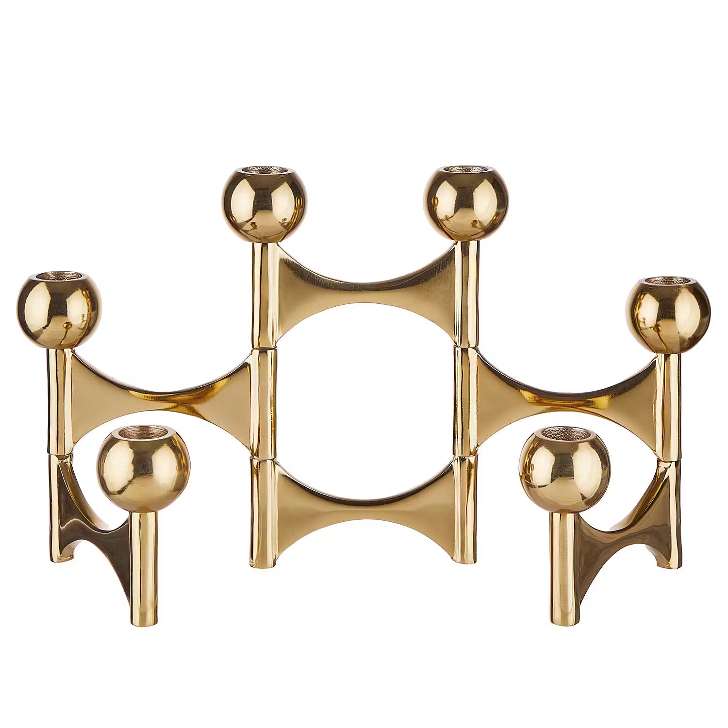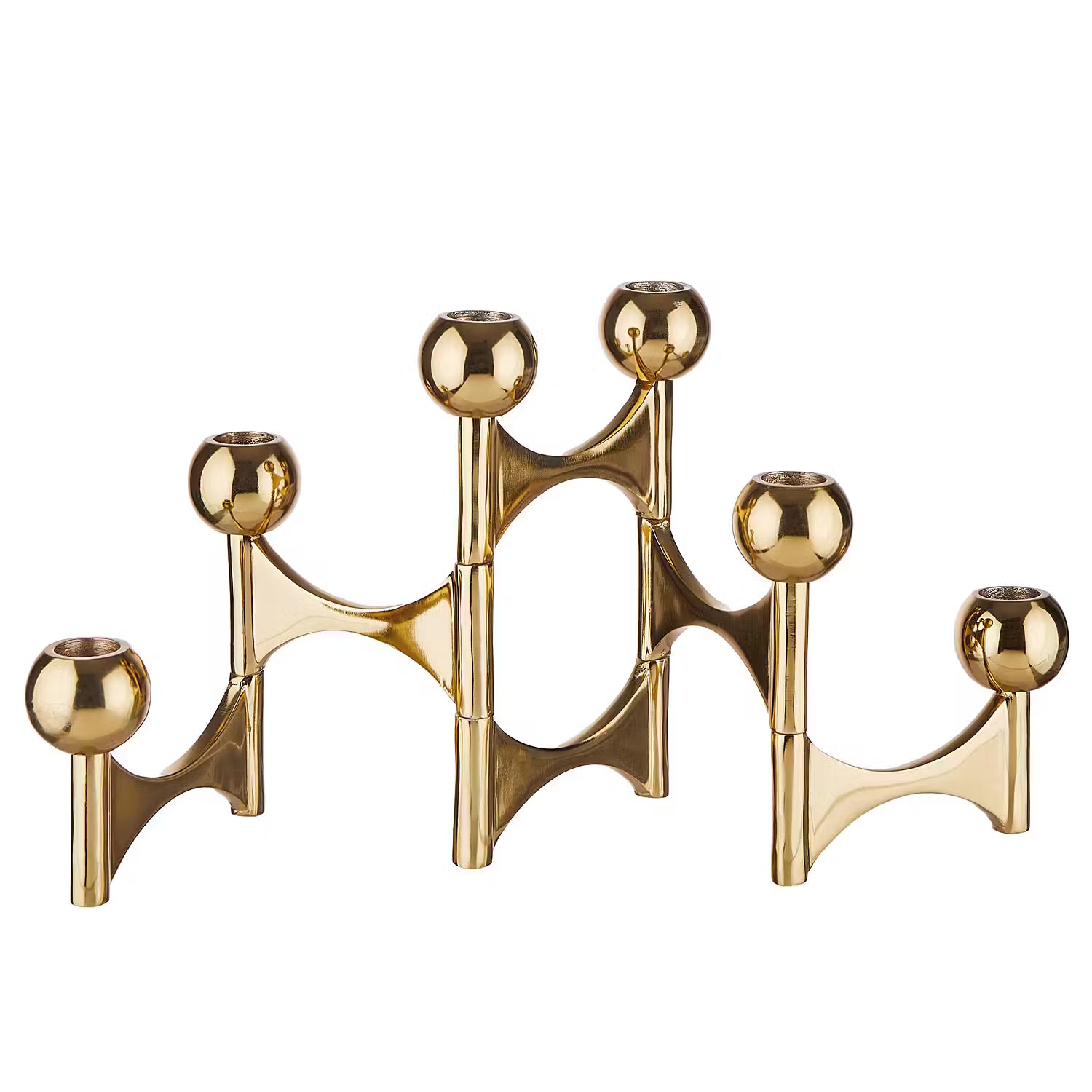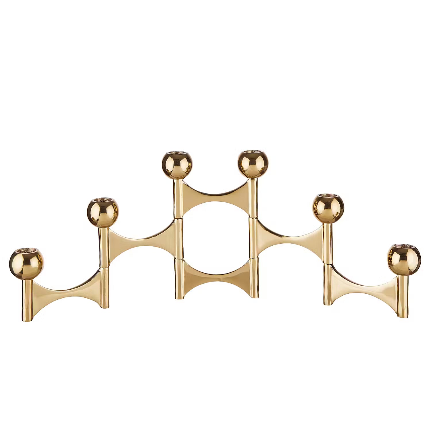 Heute so, morgen so: Der faltbare Variation Kerzenhalter aus Aluminium lässt sich vielseitig in Form bringen - und zum Verstauen platzsparend zusammenfalten. Insgesamt kann er mit 6 Stabkerzen geschmückt werden, so dass sich auch festliche Tafeln in funkelndes Licht tauchen lassen. Oder Sie nutzen den trendigen Kerzenhalter als Blickfang auf einer Kommode bzw. einem Board. Erhältlich in den Farben Gold und Silber, passend zur Ihrer Tischdekoration und Einrichtung.