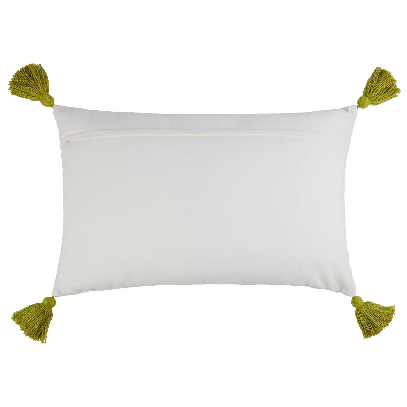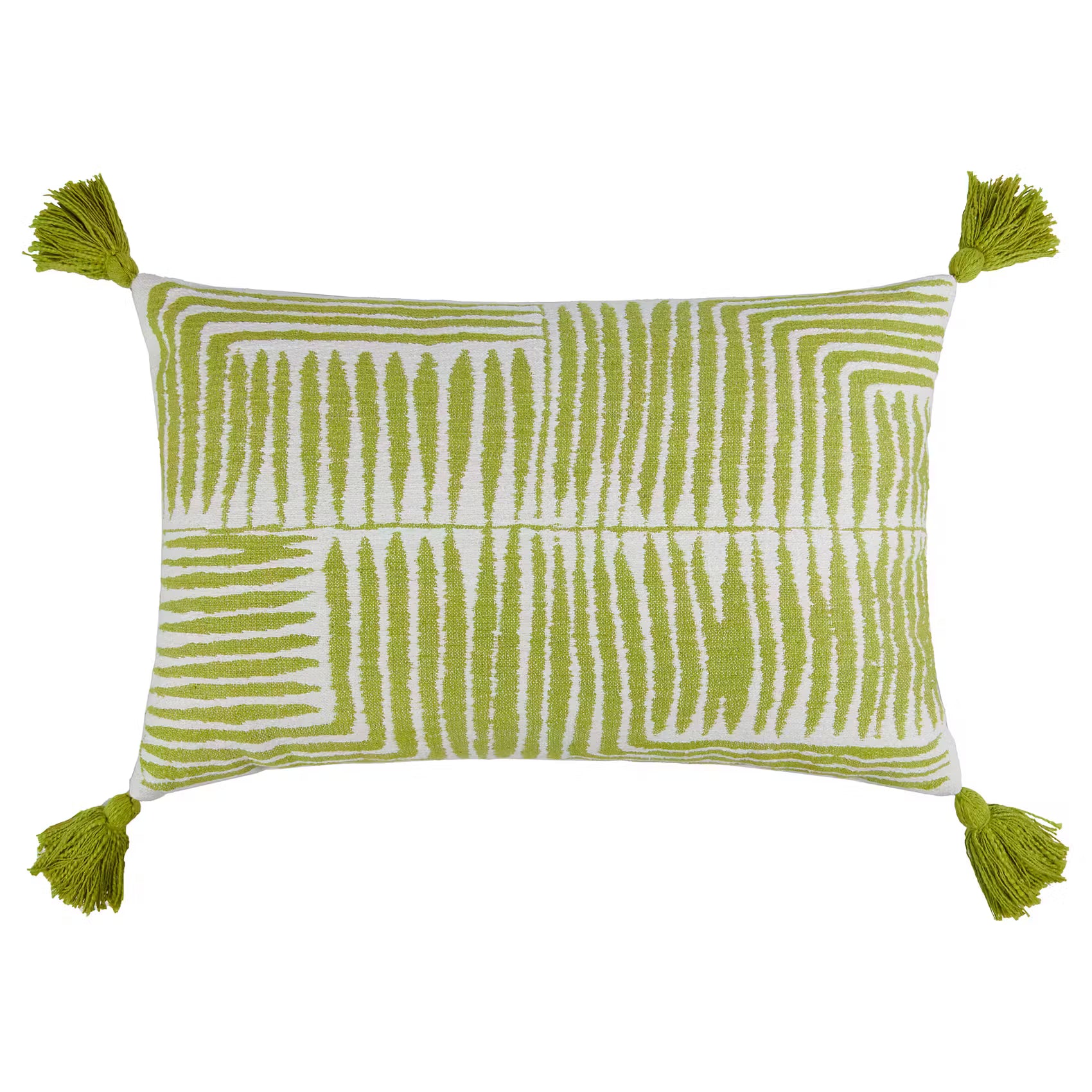 So modern und grafisch kann Ethno sein! Das Gaia Zierkissen 40 x 60 cm mit Tasseln begeistert mit zeitgemäßem Design und einem schönen Grün, das sich super kombinieren lässt. So dekorierst du das Kissen beispielsweise mit anderen Naturtönen oder sommerlichen Farben. Bezug aus 70 % Baumwolle und 30 % Polyacryl, mit Reißverschluss. Rückseite neutral. Füllung aus 100 % Polyester.