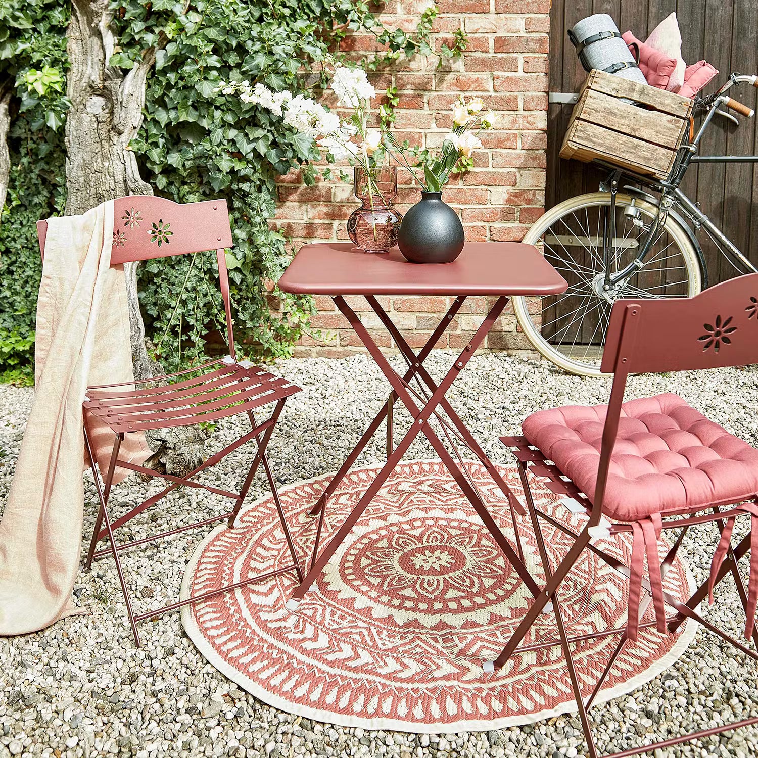 Sobald der Daisy Jane Klapptisch aus Eisen draußen steht, zwitschern die Vögel, tanzen die Sonnenstrahlen und das Gute-Laune-Barometer steht auf "besser geht´s nicht". Denn die Daisy Jane Gartenmöbel-Serie versprüht Leichtigkeit pur - erhältlich in verschiedenen Farben.