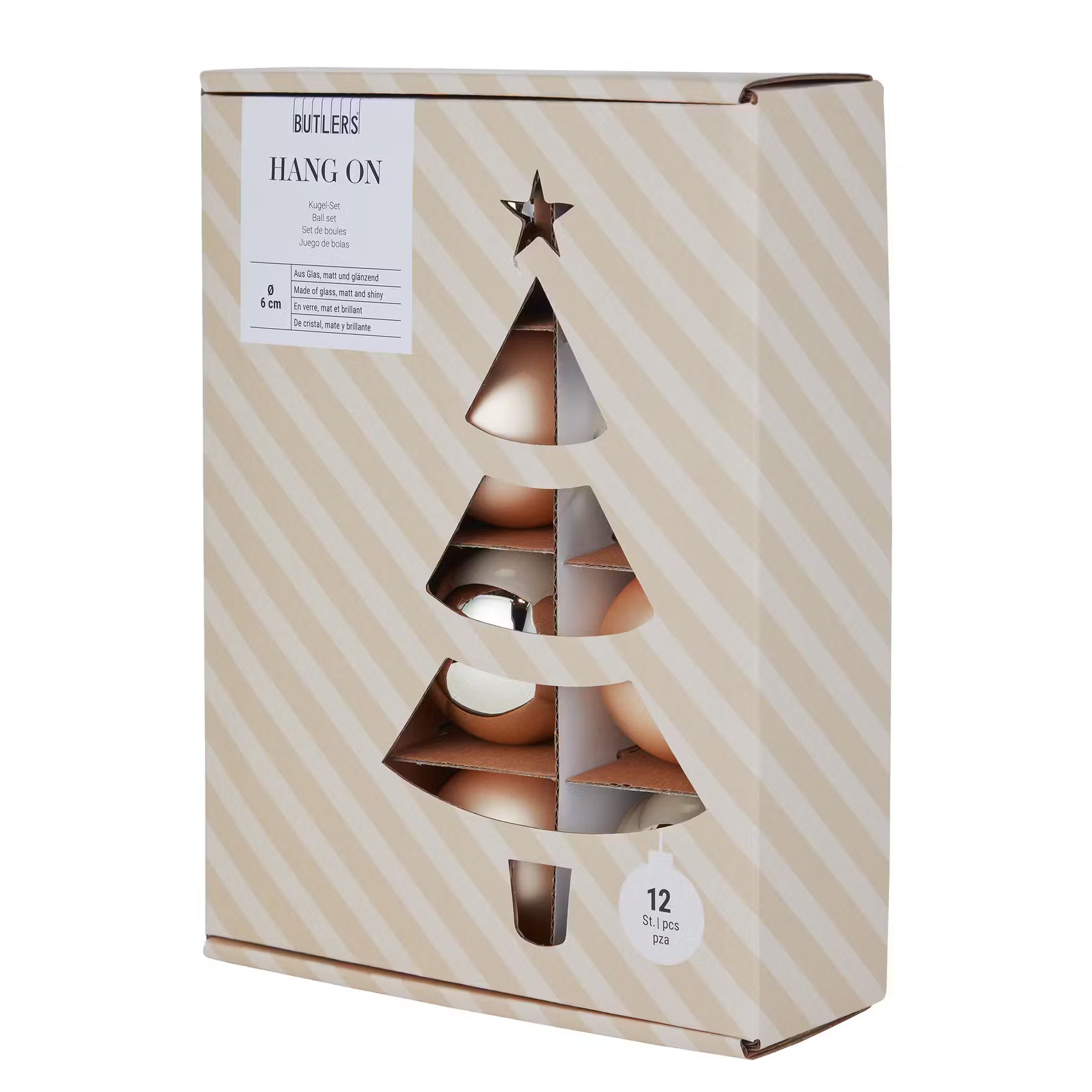 Weil klassische Glaskugeln ja auf Ihrem Wunschzettel standen, kommt von BUTLERS hier die Hang On Glaskugel im 12er-Set in Gold zum Aufhängen. Alle Jahre wieder präsentiert BUTLERS den schönsten Weihnachtsschmuck. Von klassisch bis modern, von besinnlich bis beschwingt. Zum Verschenken und sich selbst Verwöhnen. Für echte und künstliche Christbäume, für Tannenzweige und Ihre ganz persönlichen Dekoideen. Das wird ein Fest!
